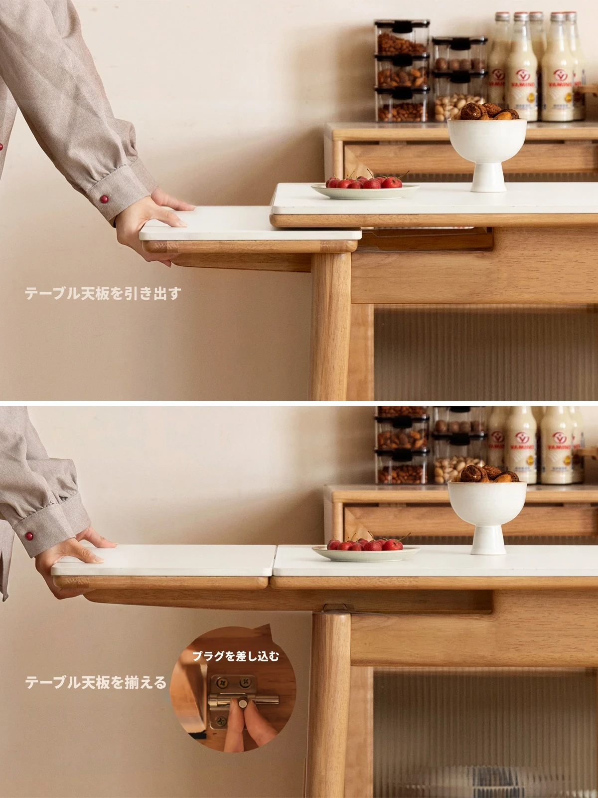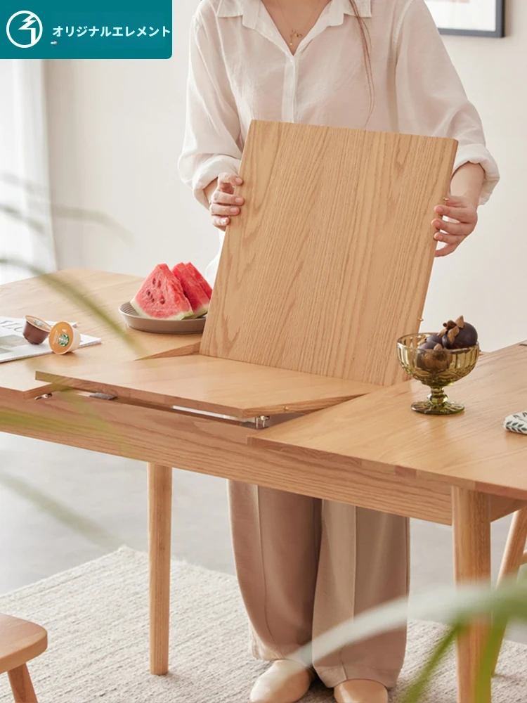 源氏木语×ヴィシャ実木伸縮ダイニングテーブル|シンプルな折りたたみデザイン|オーク材使用|おしゃれで機能的な食卓を実現!