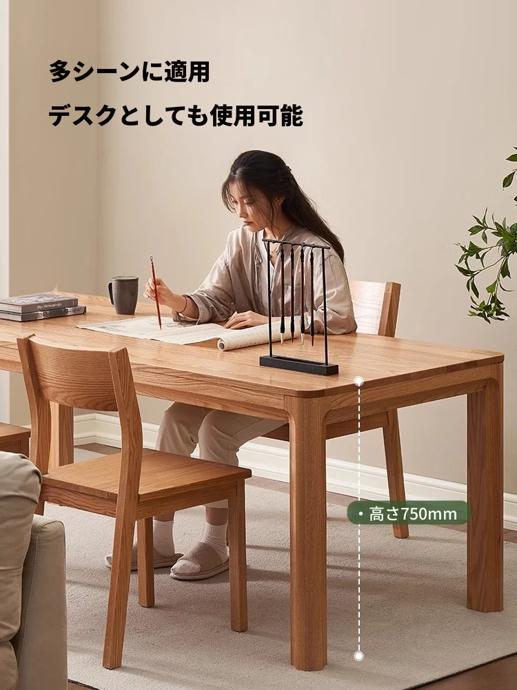 無垢材のダイニングテーブル - 和の美しさを感じる侘寂風デザイン、赤オークの大きなテーブルとシンプルでモダンな椅子のセット。家庭での食事を特別なひとときに演出します。