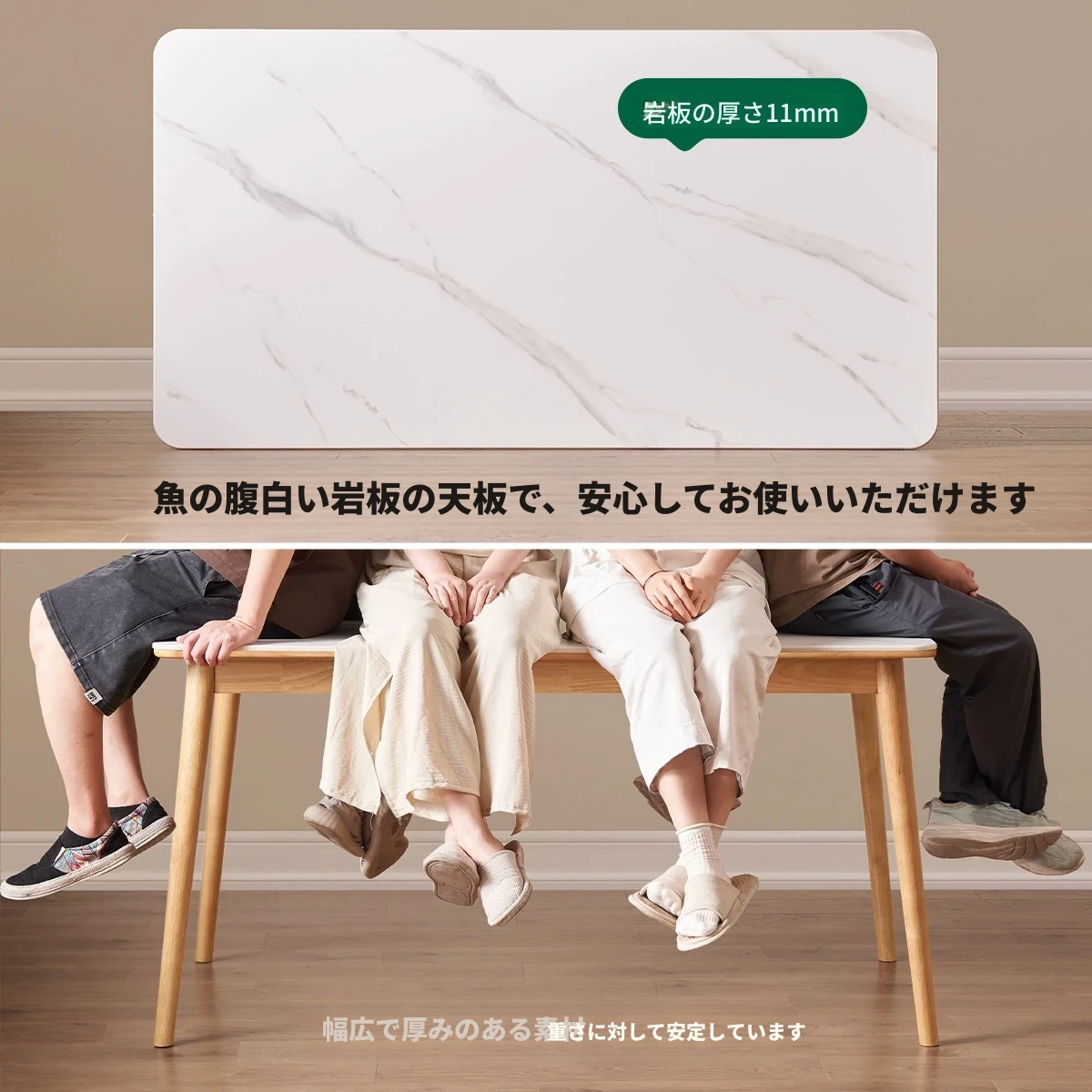 源氏木语×ヴィシャ実木岩板ダイニングテーブル|シンプルでスタイリッシュな家庭用長方形テーブル|自然素材の温もりで、食卓を華やかに演出します!