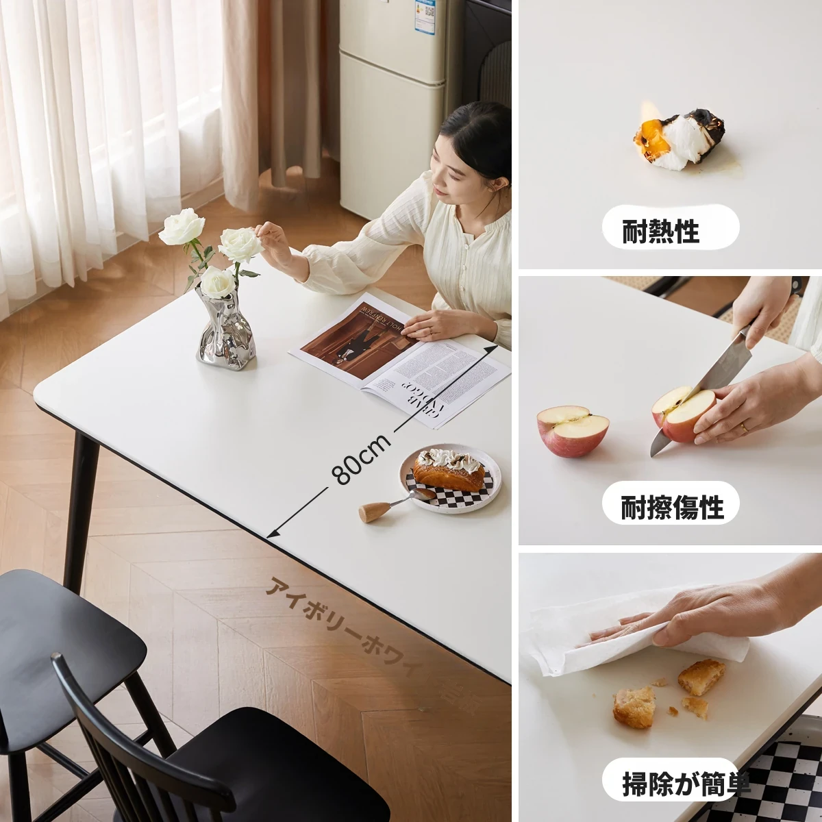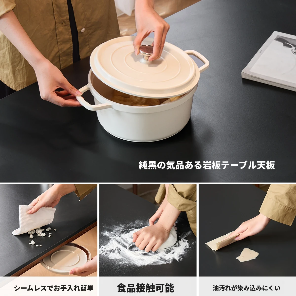 源氏木语×ヴィシャ実木ロックプレートダイニングテーブル|モダンでシンプルなデザインの食卓|家庭用や学習にも最適な多機能テーブル!