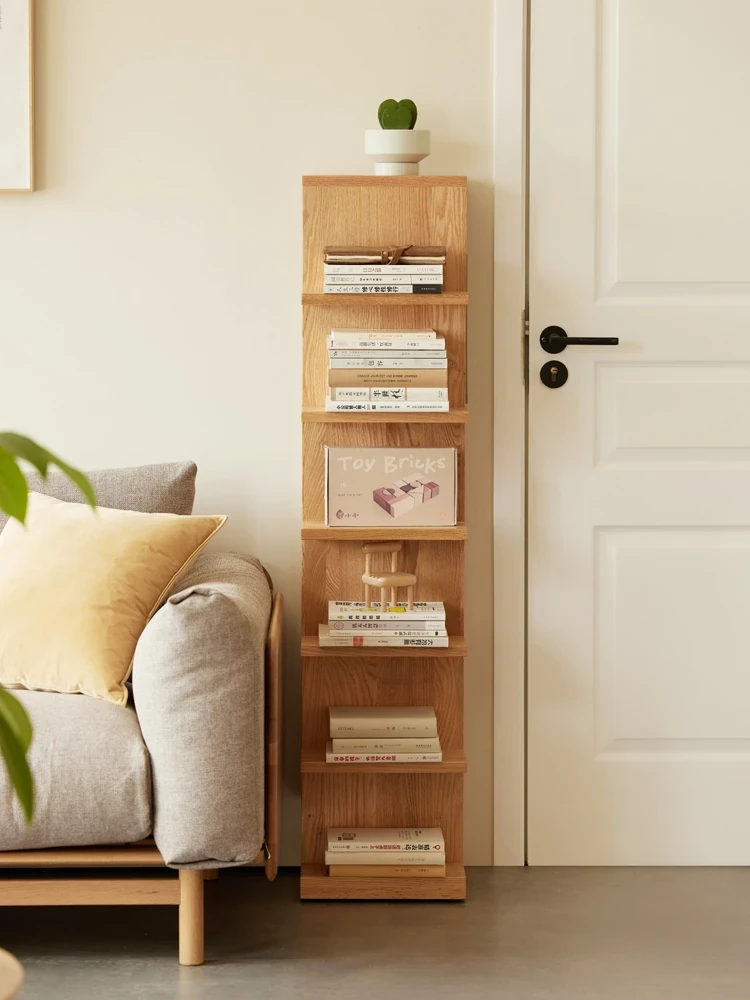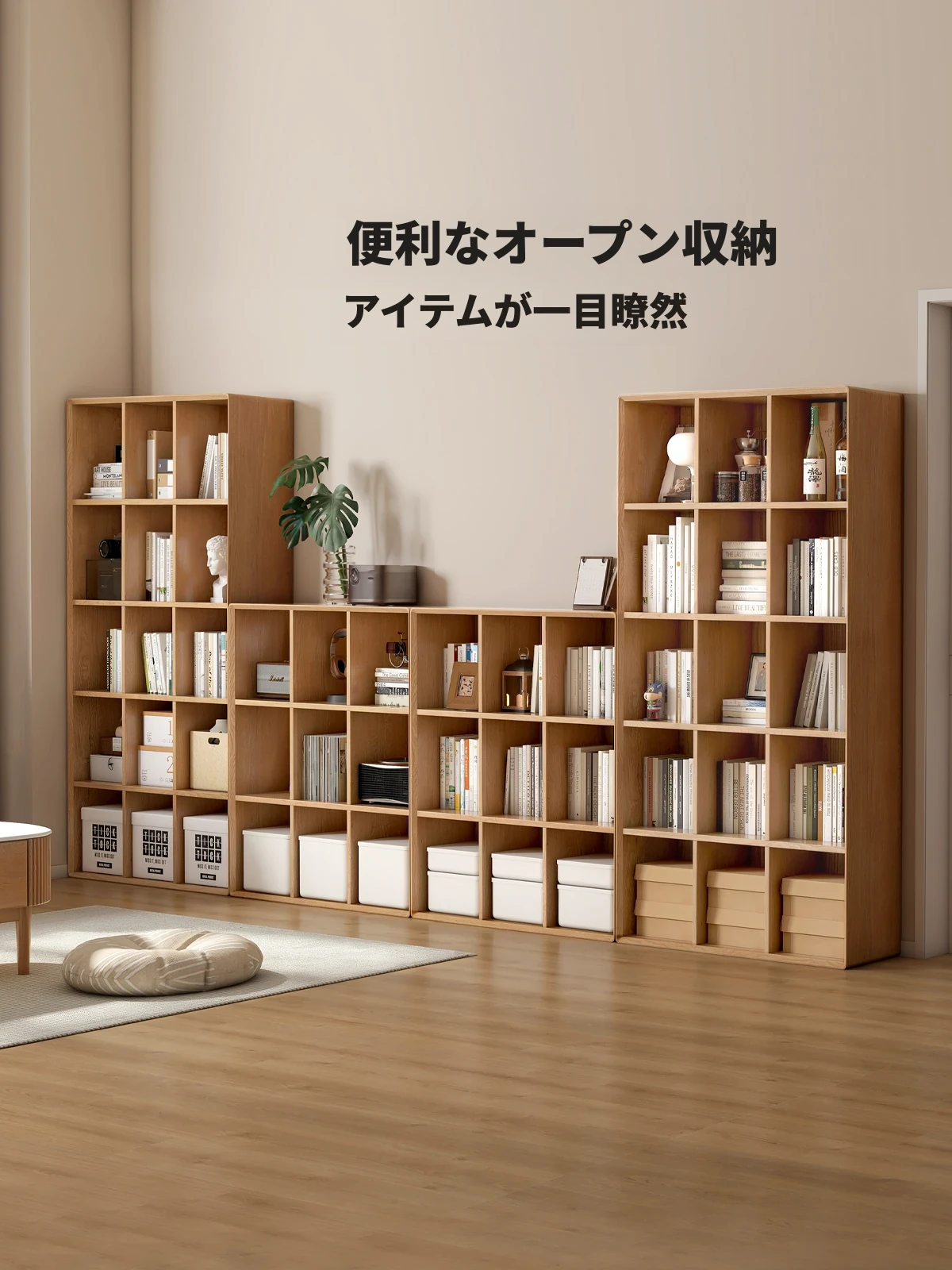 オーガニック全木製書棚 北欧スタイルのオーク材使用 家庭用フロア収納本棚 モダン&シンプルな多層収納ラックで、お部屋をスタイリッシュに整理整頓!