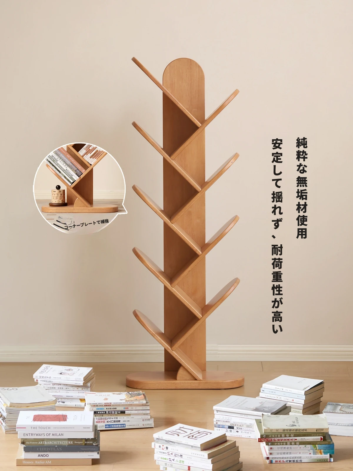 源氏木语x维莎の無垢材ブックシェルフ - シンプルでおしゃれなツリー型ウォールラック、空間を活かす多層収納ソリューション!