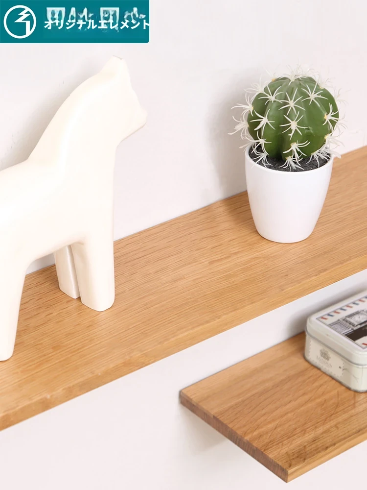 オーガニック全木製モダンシンプル壁掛け収納ラック - 自宅の玄関に最適なオーク製の一字型シェルフで、スタイリッシュに整理整頓!