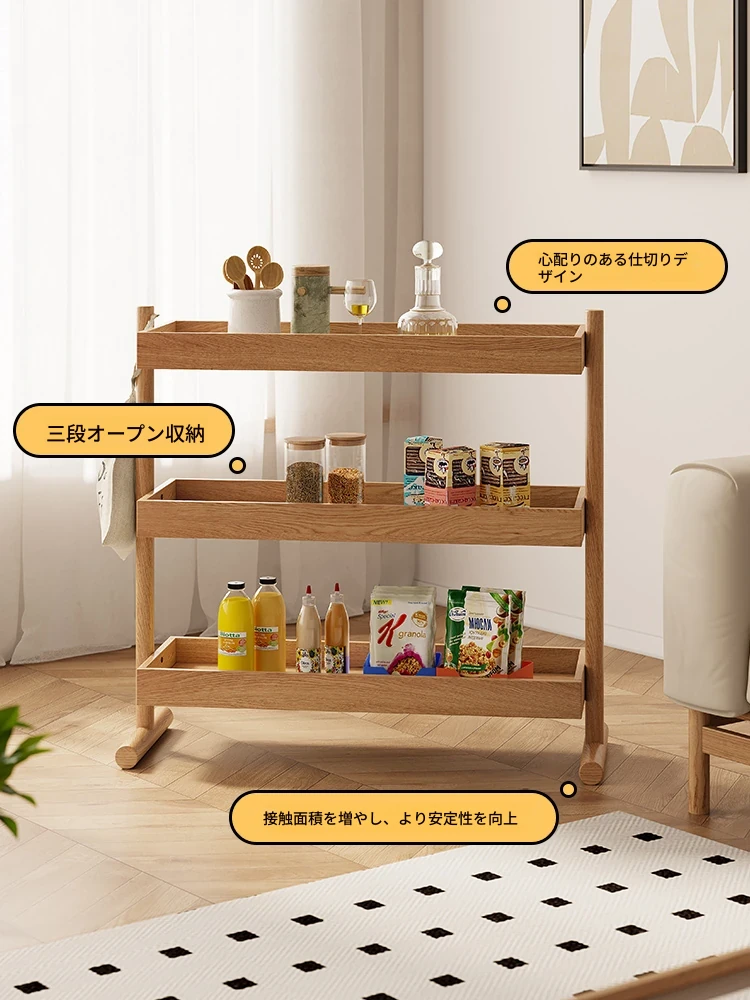北欧スタイルの全木製収納ラック - オーク材使用、リビングやキッチンにぴったりの多層収納テーブル!おしゃれで機能的、あなたの空間を美しく整理します。