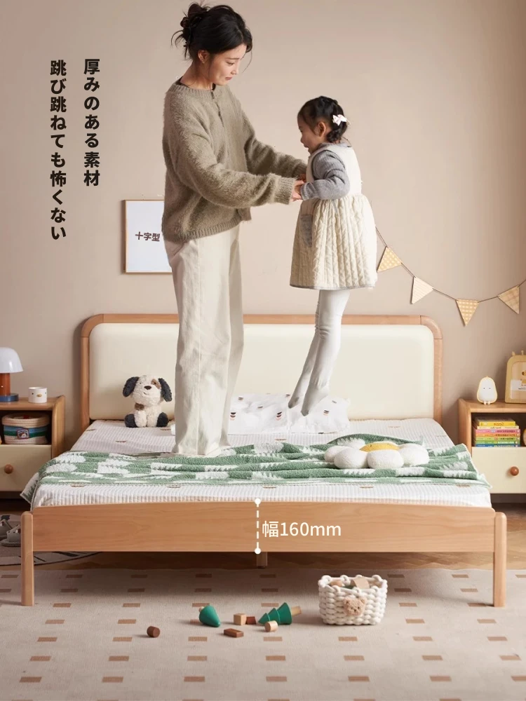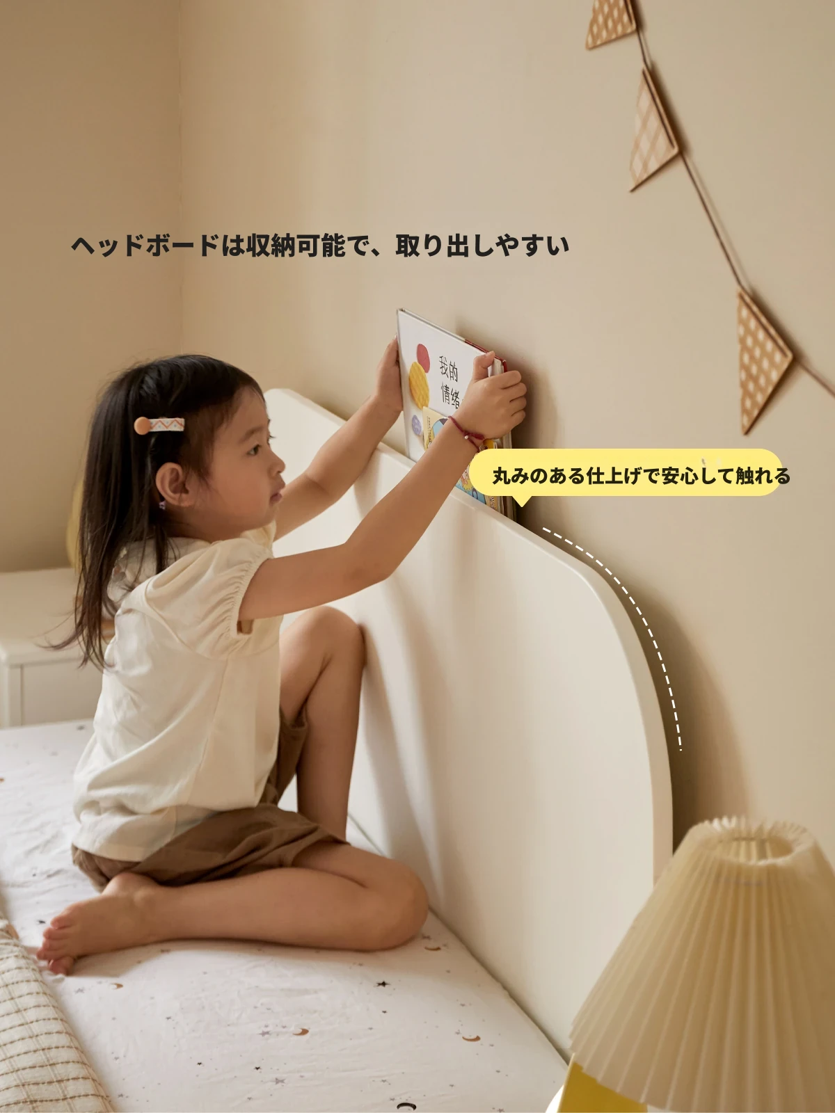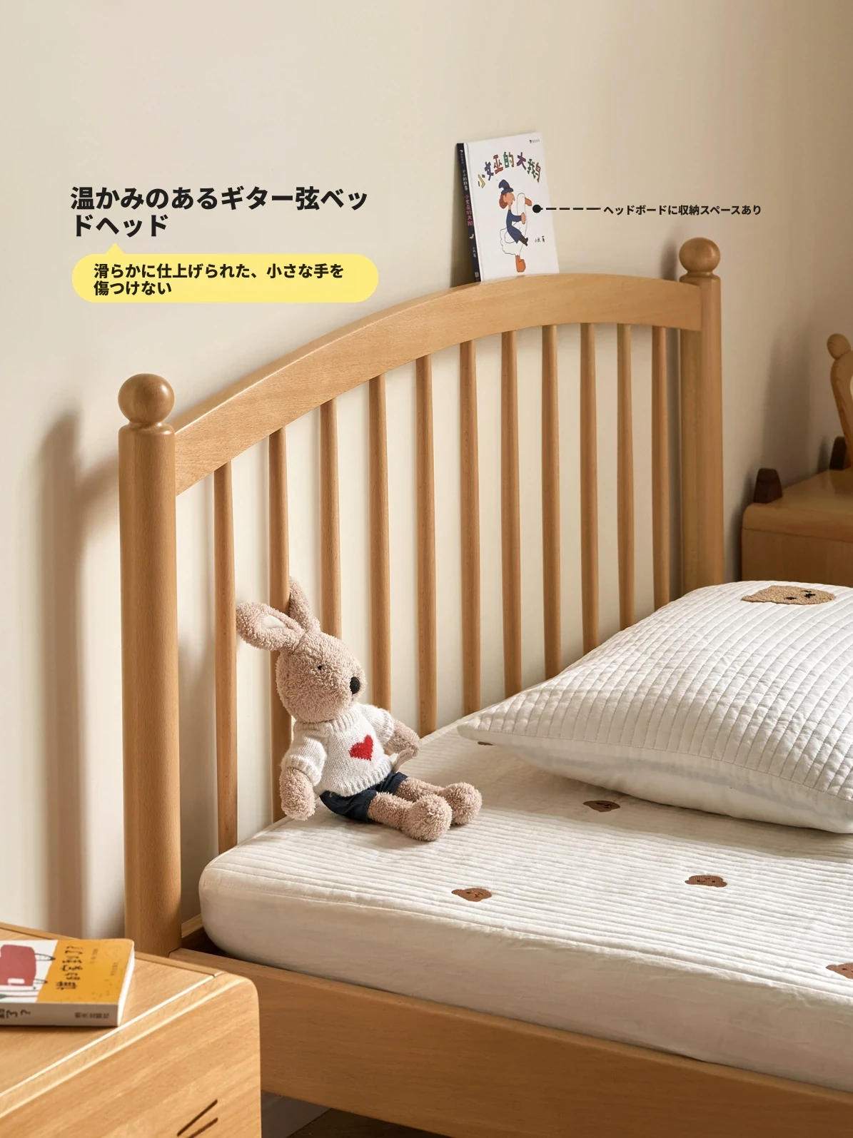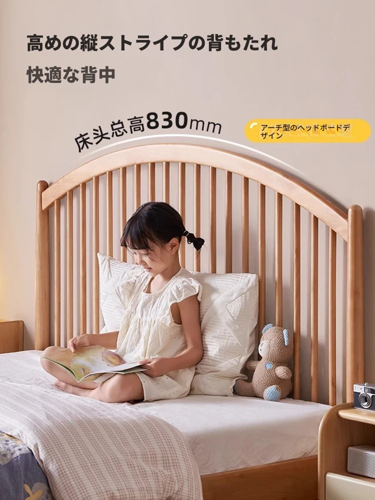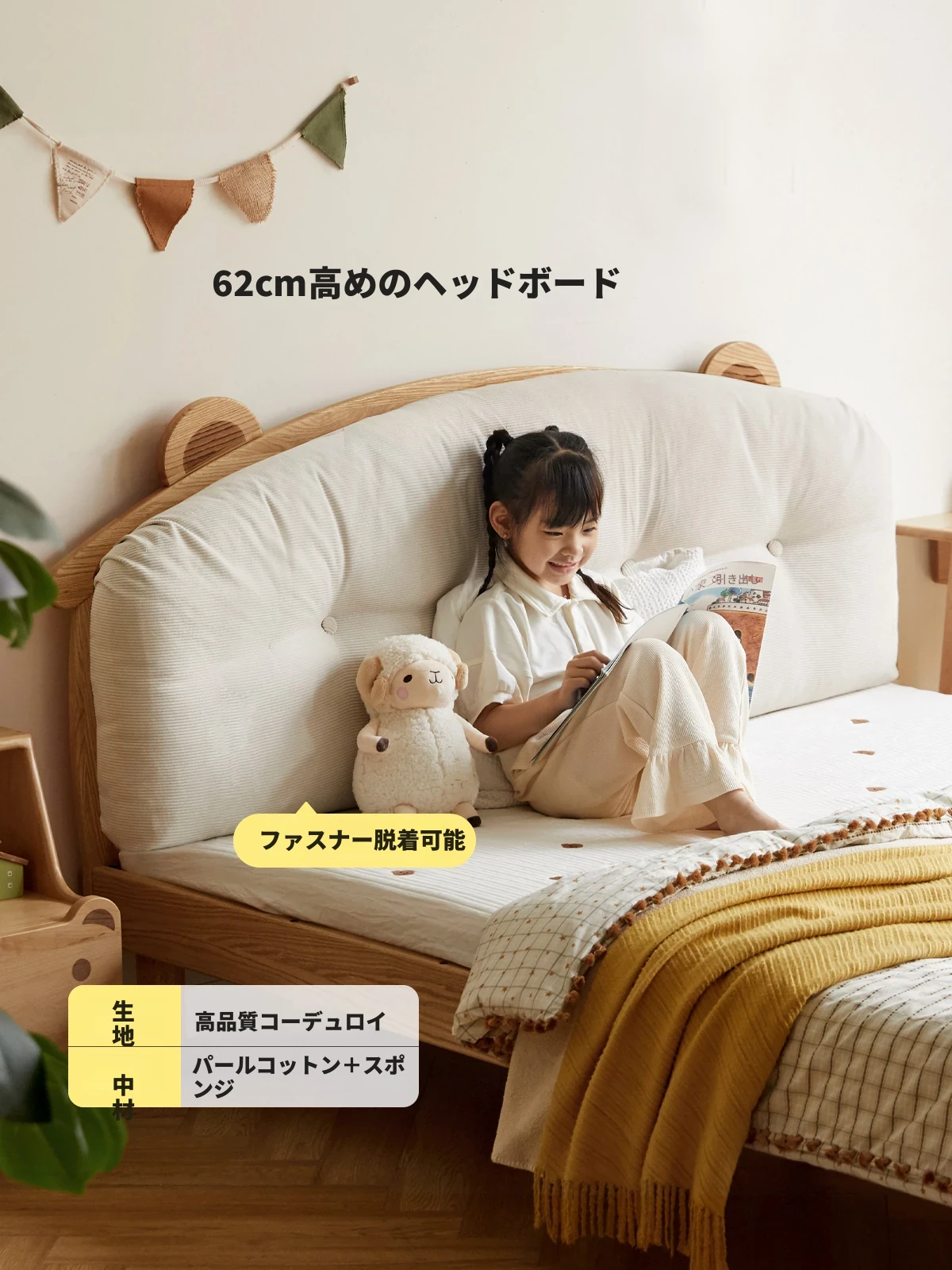 原始原素キッズベッド|シンプルな無垢材使用|男の子・女の子に最適|柔らかいヘッドボード付き|コンパクトデザインで小さなお部屋にもぴったり|快適な眠りをサポートするシングルベッド