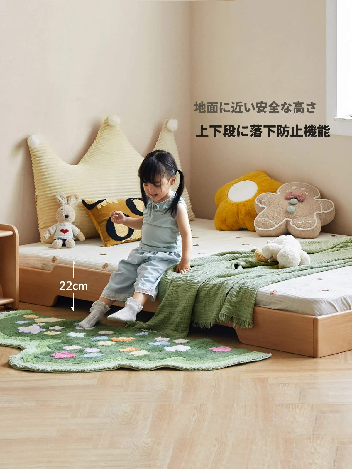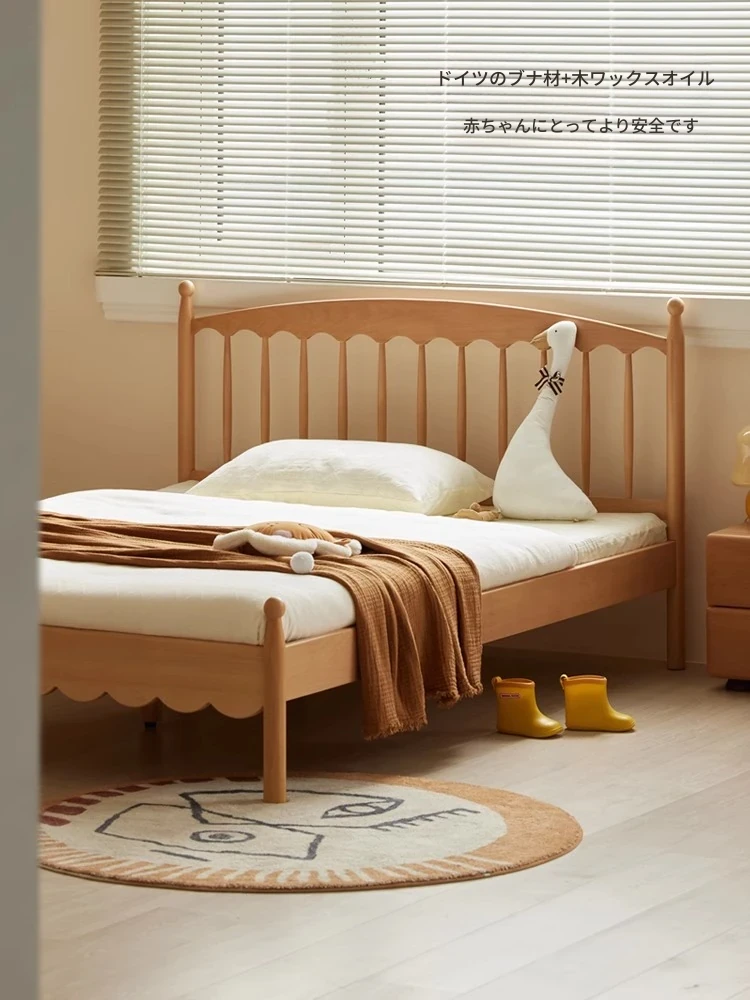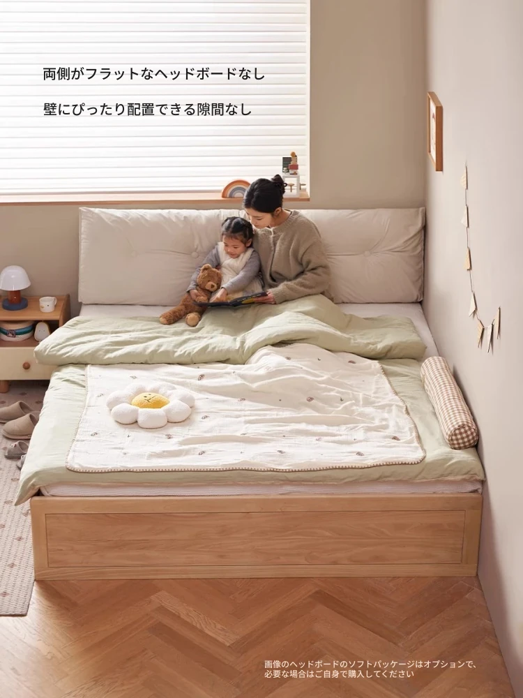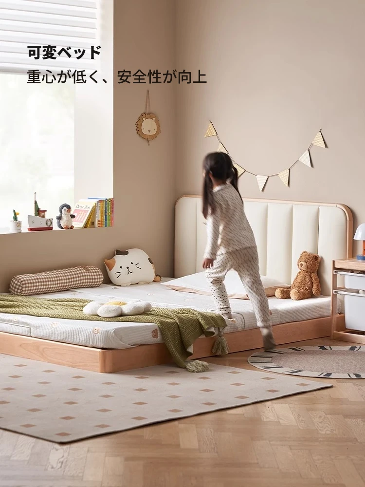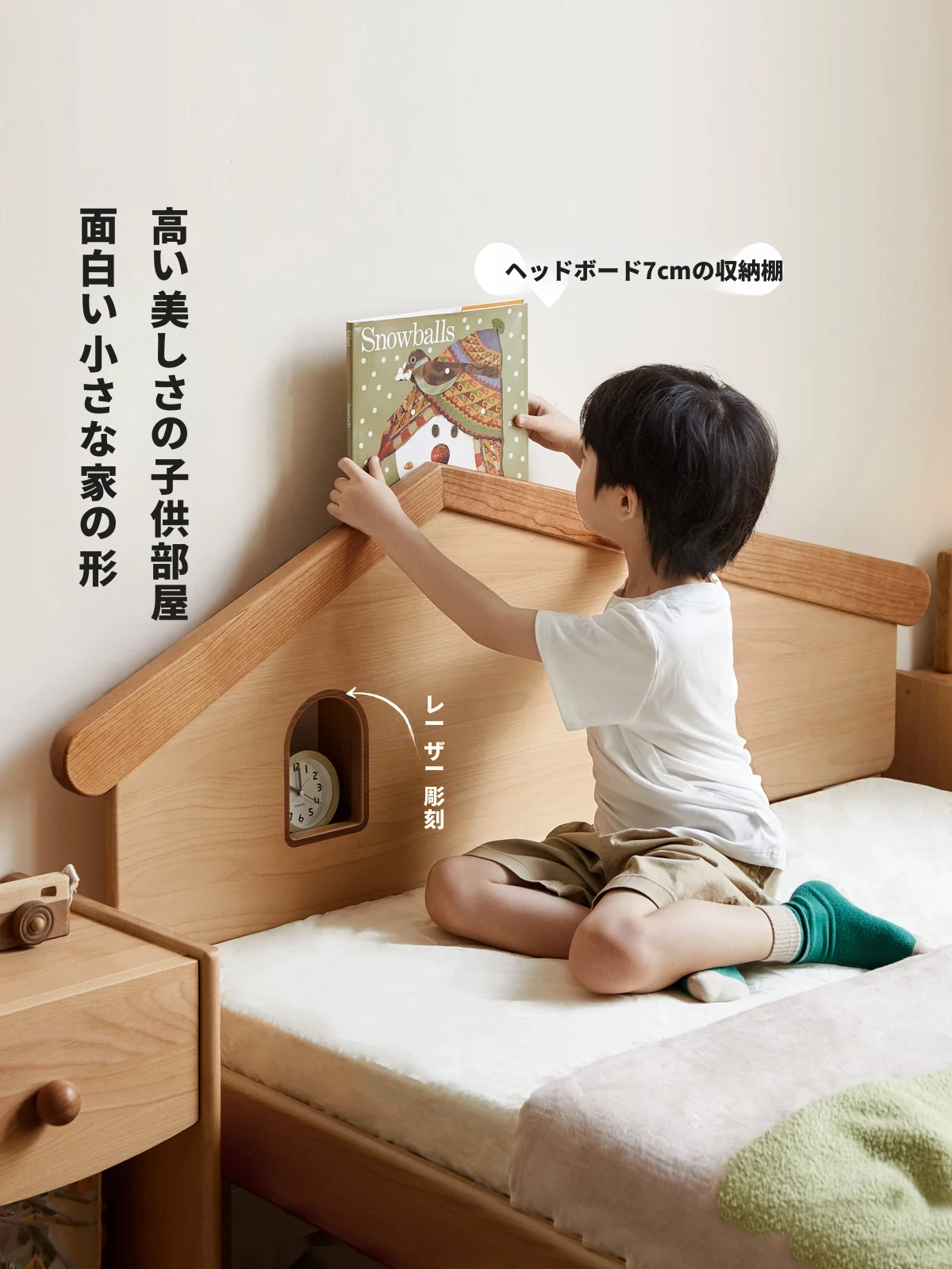 原始原素キッズベッド|シンプルな無垢材使用|男の子・女の子に最適|柔らかいヘッドボード付き|コンパクトデザインで小さなお部屋にもぴったり|快適な眠りをサポートするシングルベッド