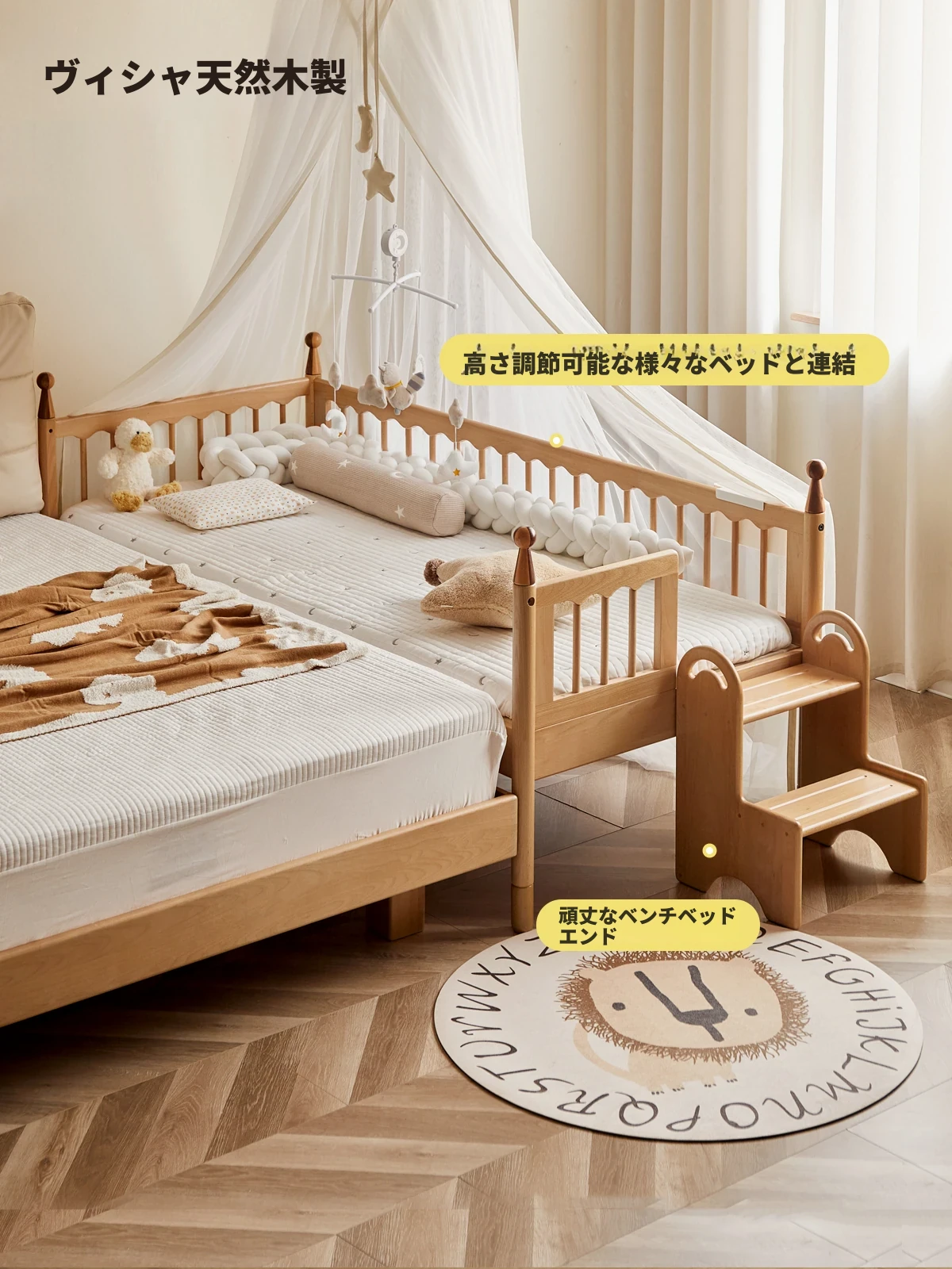【安心・実木使用】ヴィサー広々囲い付きキッズベッド