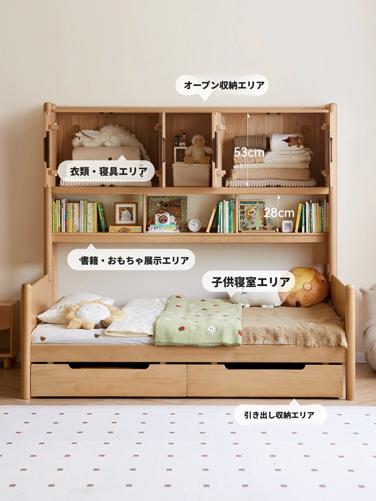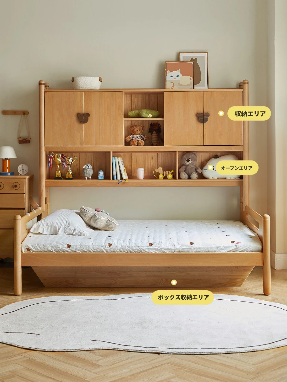 【ヴィサ実木子供用ベッド】北欧スタイルのシンプルでモダンなデザイン!男の子と女の子にぴったりのシングルベッド。ヨーロッパ産ビーチ材採用、書棚と一体化した収納機能付きでお部屋をすっきりオーガナイズ!