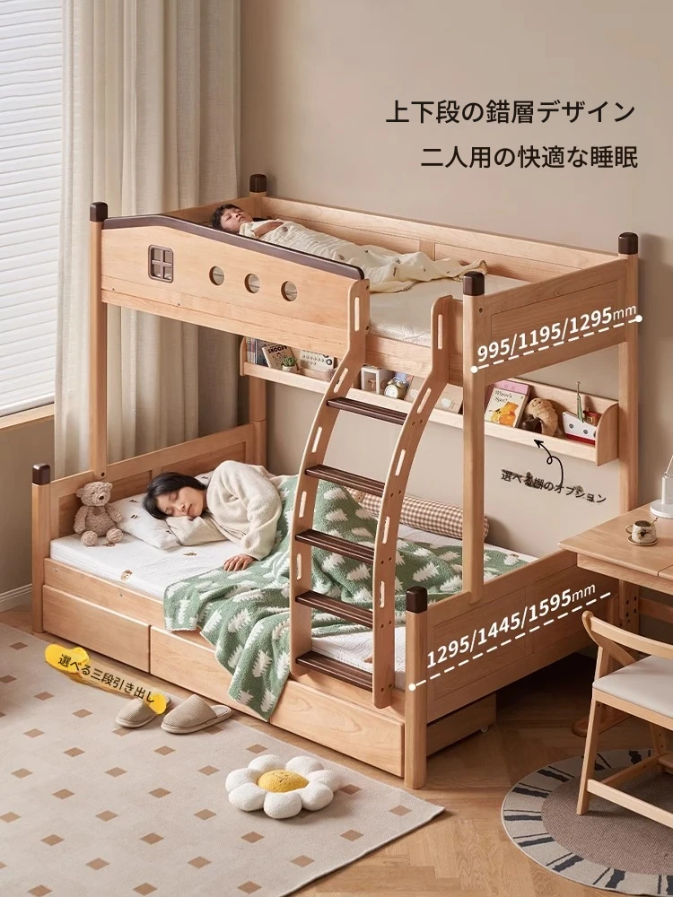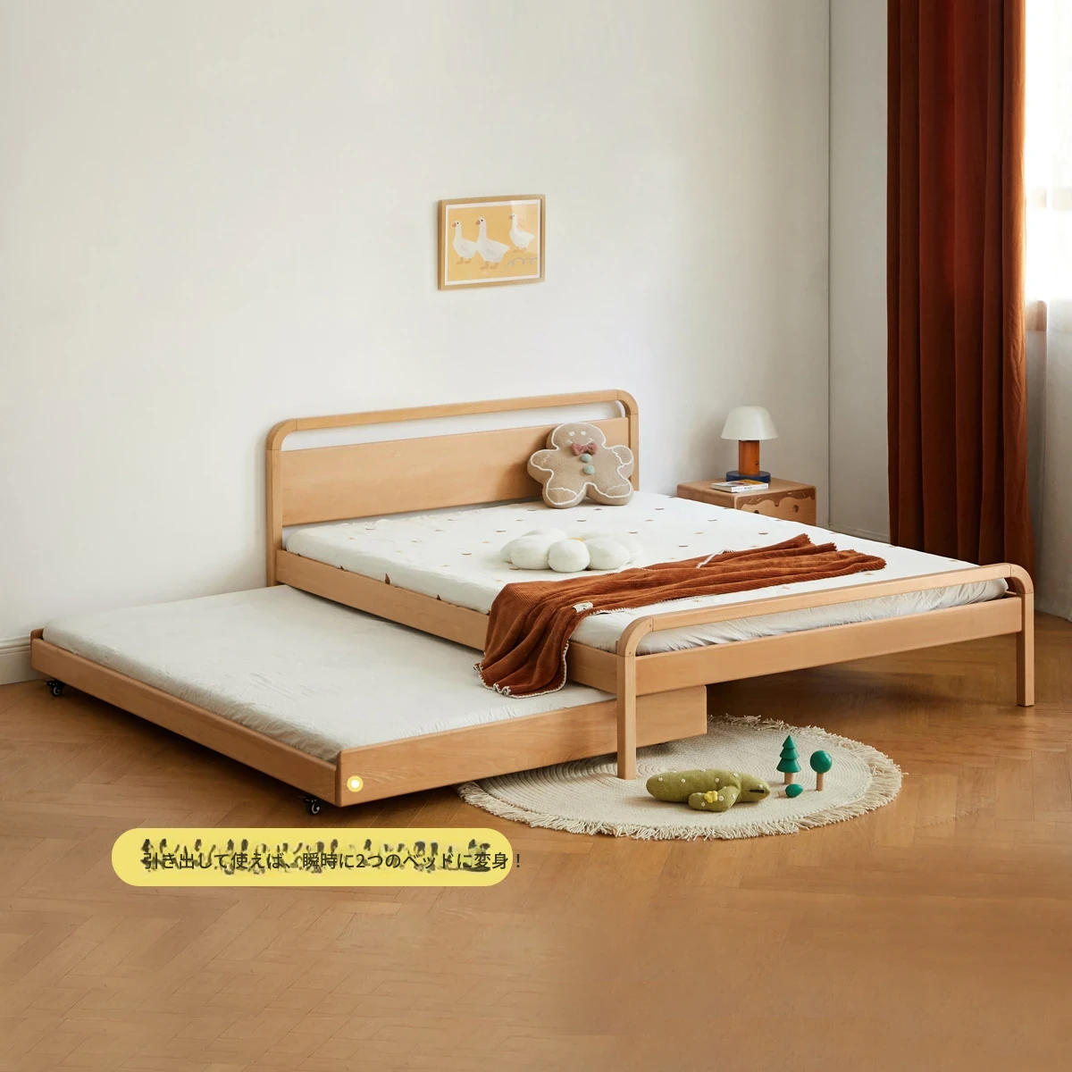ウィッシャー天然木製子供ベッド - モダンでシンプルな引き出し付き!ヨーロッパ産ブナ材使用、キャスター付きで便利さUP!男の子・女の子両方に最適な組み合わせベッド。安心・快適な眠りを提供します!