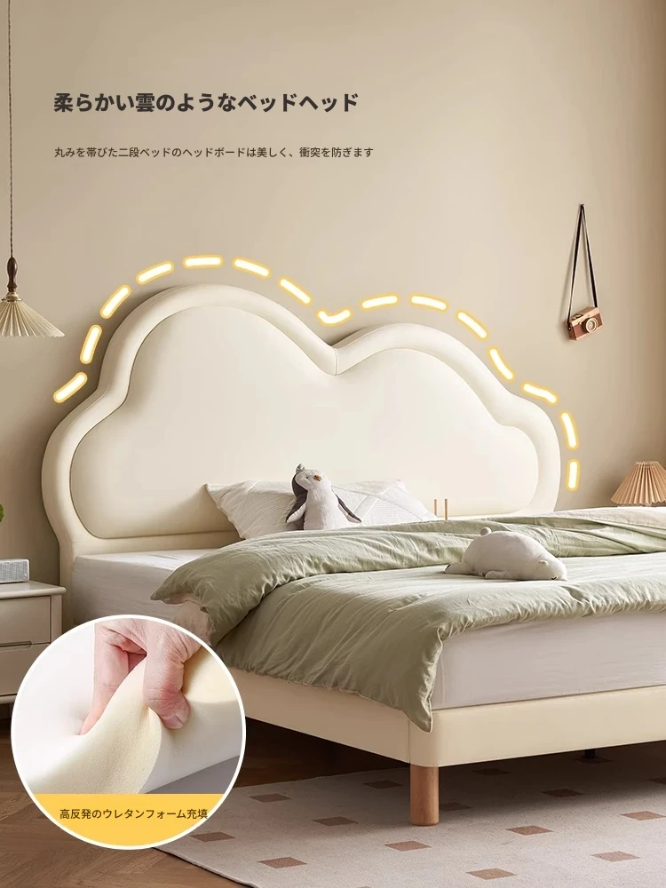 オリジナルエレメント子供用ベッド 猫の爪から守る頑丈な木製ソフトパッド 1.5m ベッド 女の子向け ホワイトフレンチクリームスタイル 雲のようなデザインで、夢見る空間を演出します!