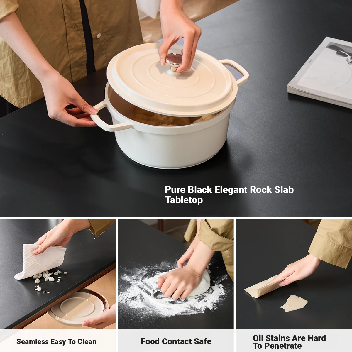 Modern Minimalist Solid Wood Dining Table - Rectangular Natural Wood Table with Rock Panel for Home and Restaurant Use