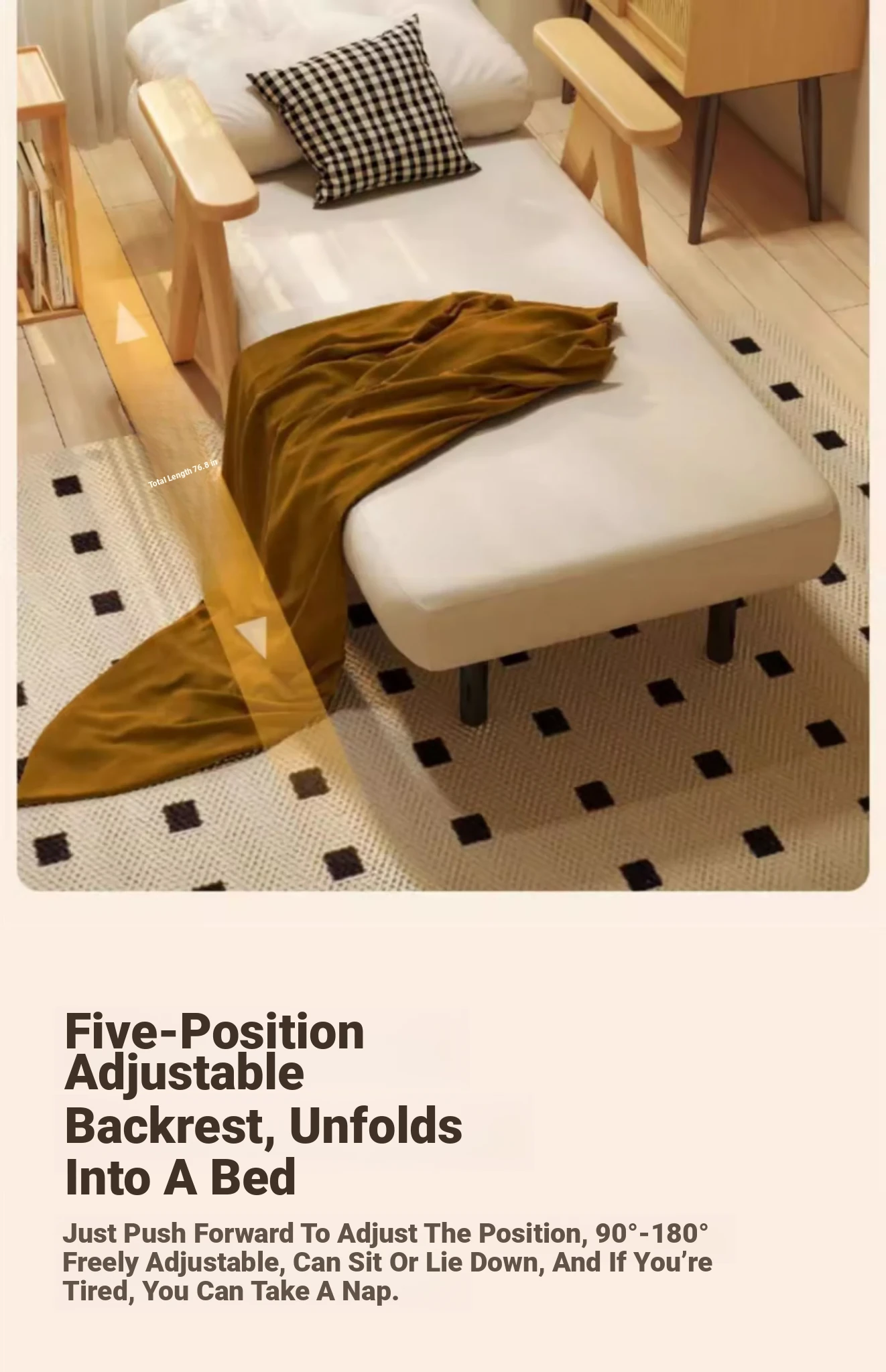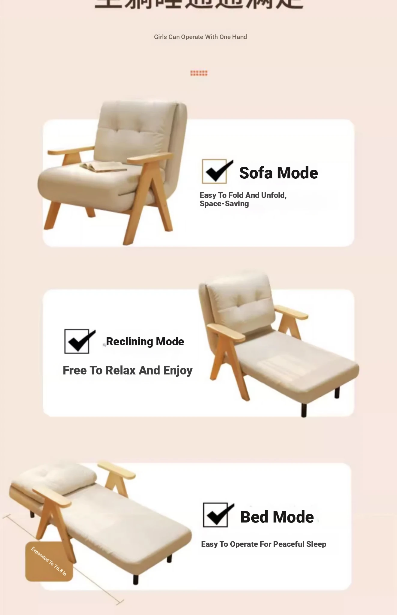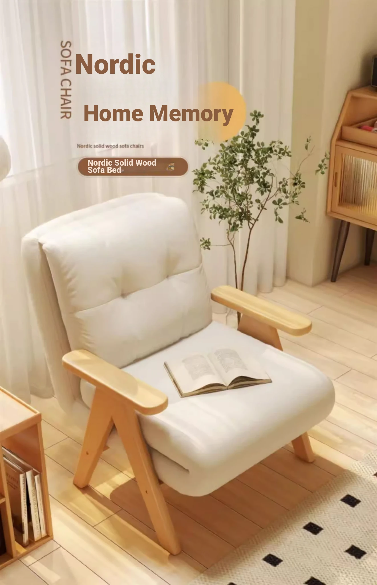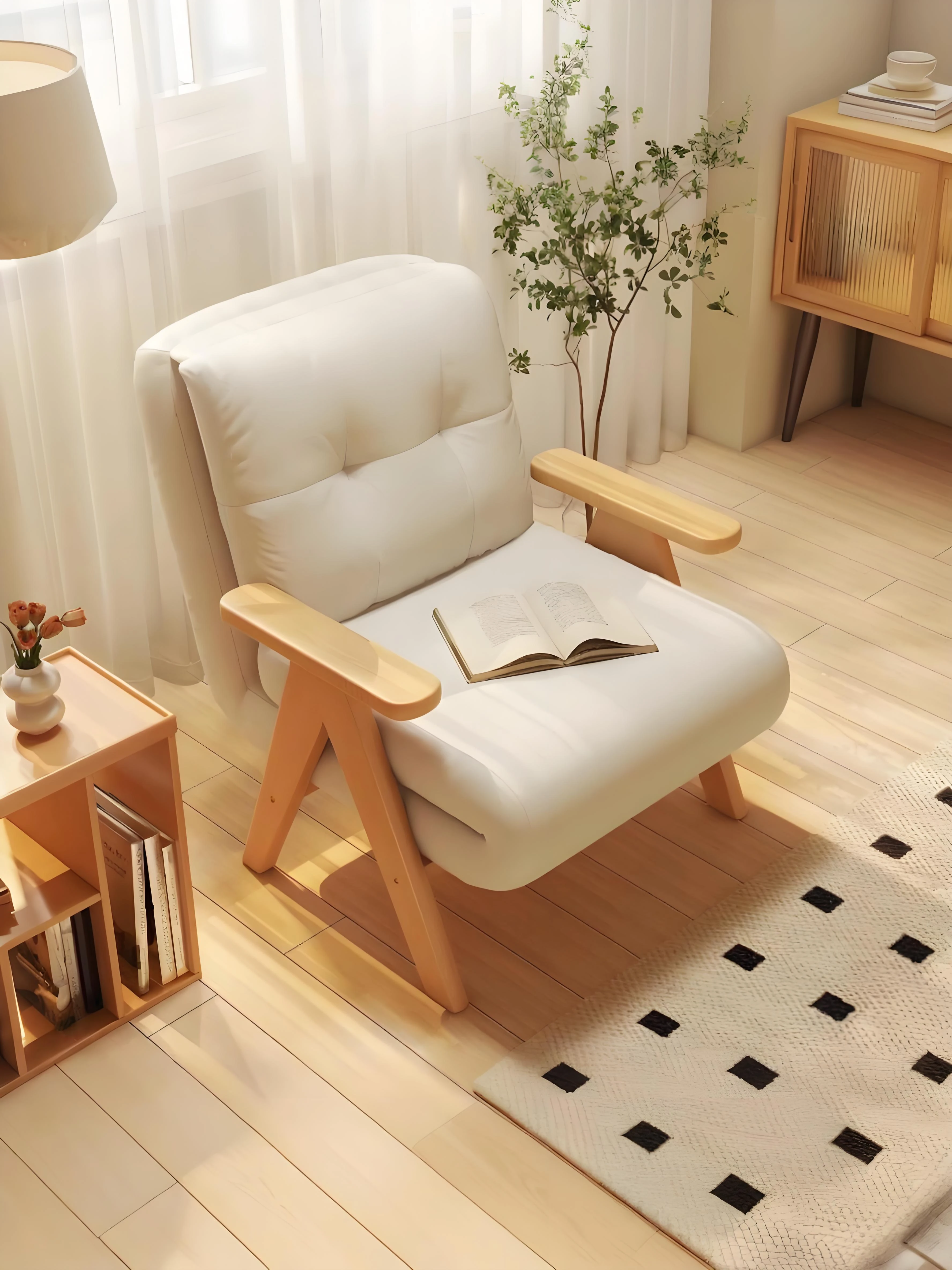2025 New Multi-Functional Folding Sofa Bed - Stylish Single Sofa for Living Room & Balcony, Space-Saving Design with Solid Wood Frame, Perfect for Small Spaces and Modern Homes