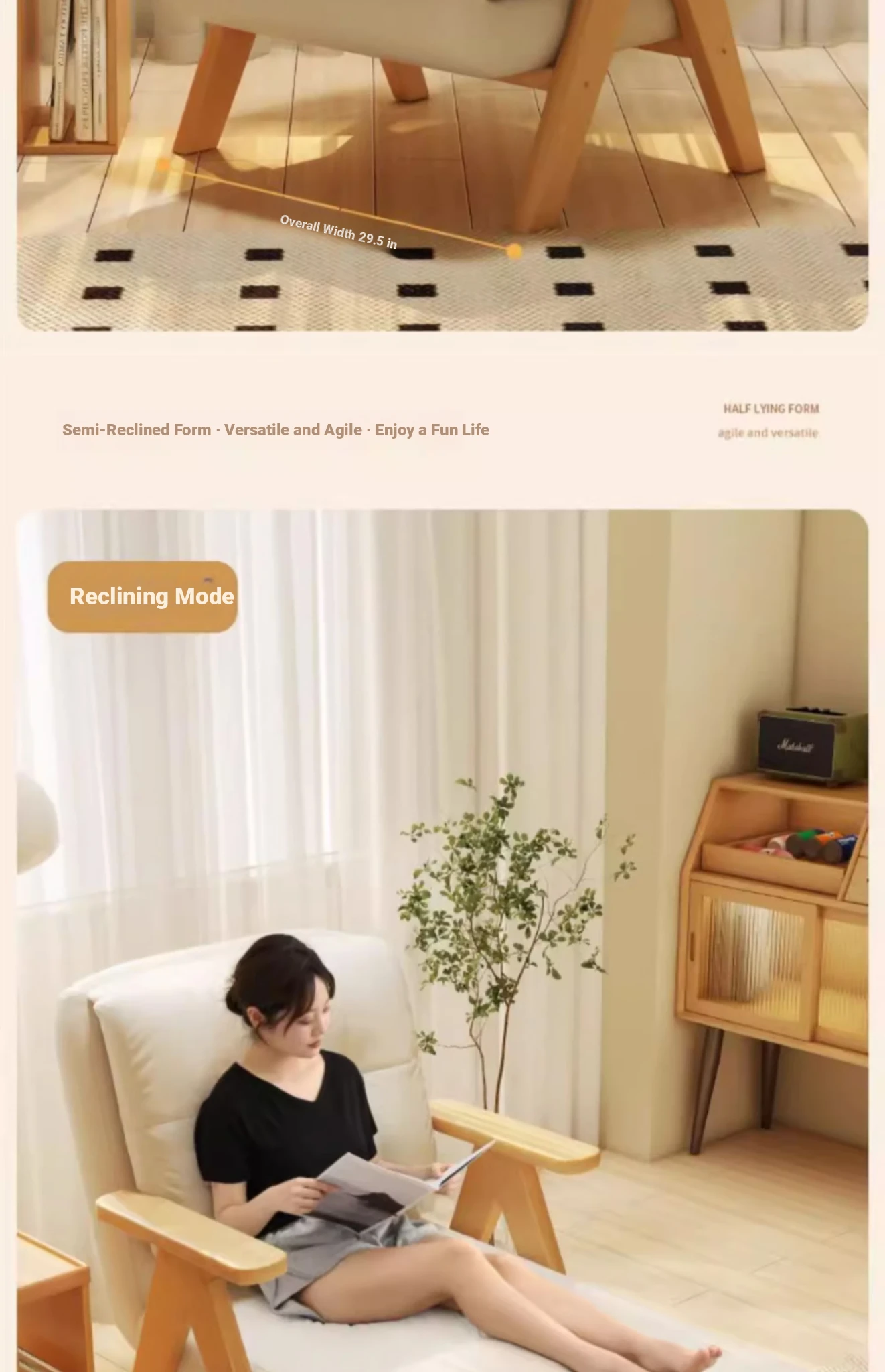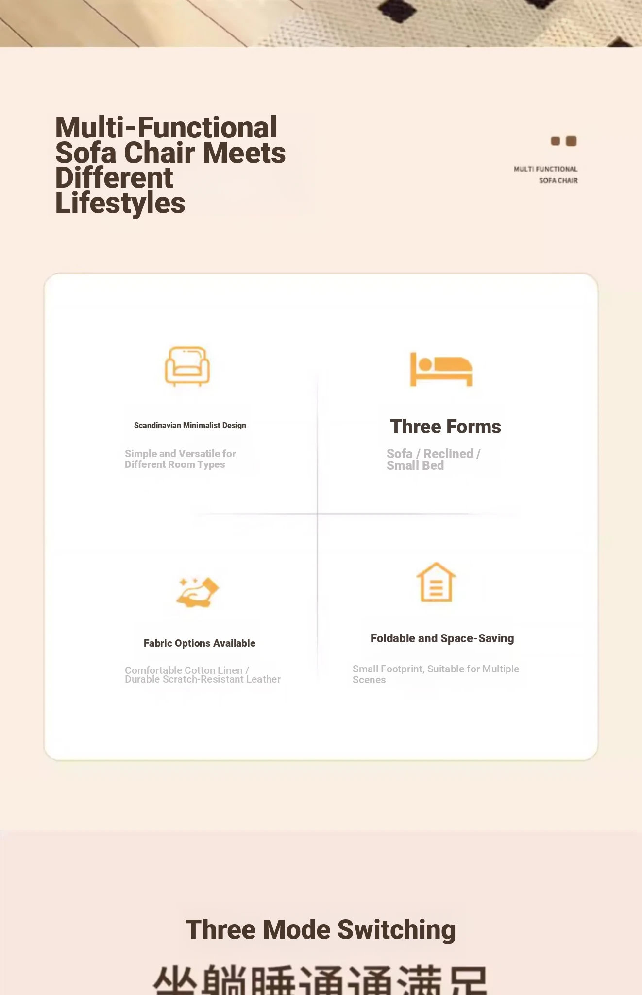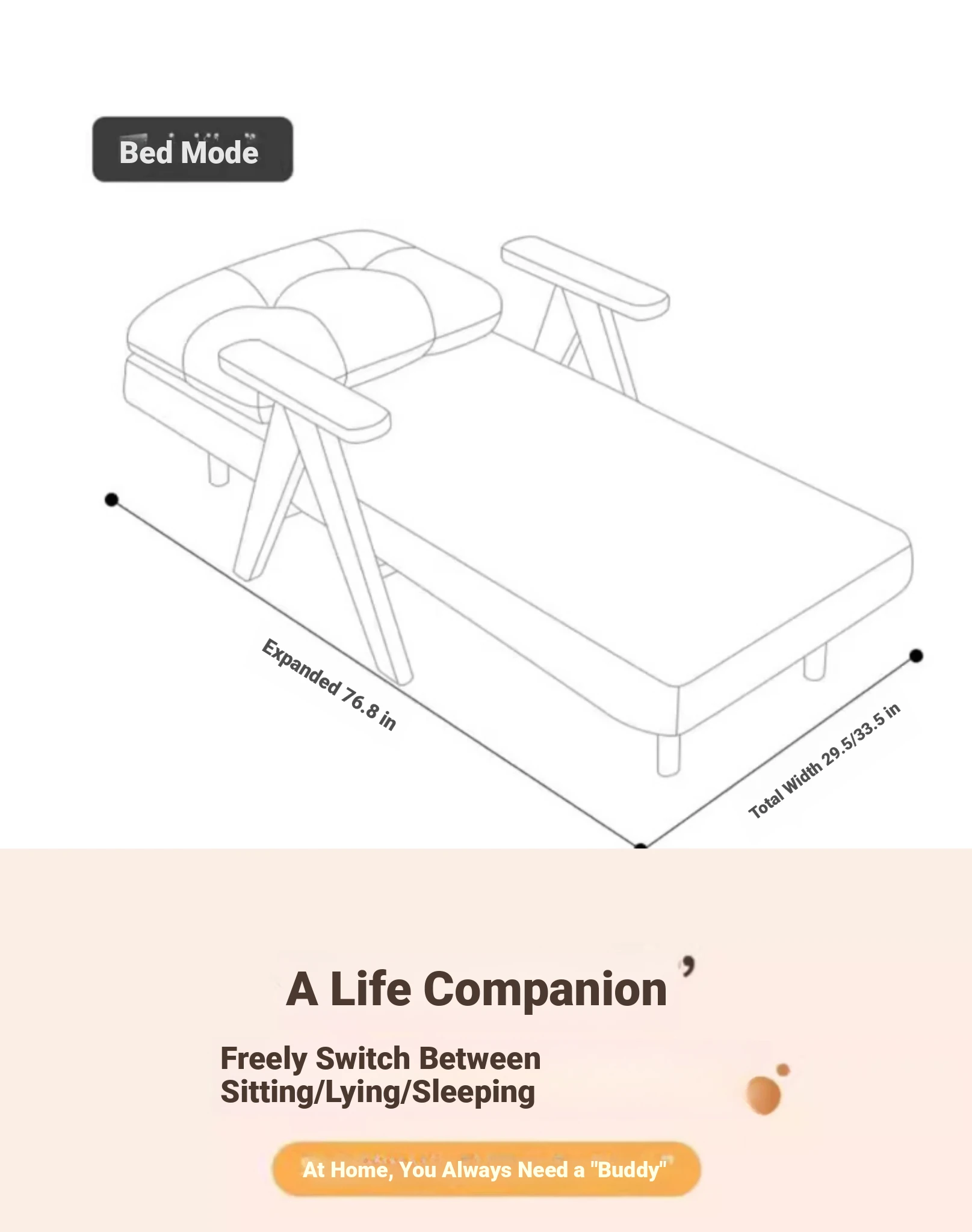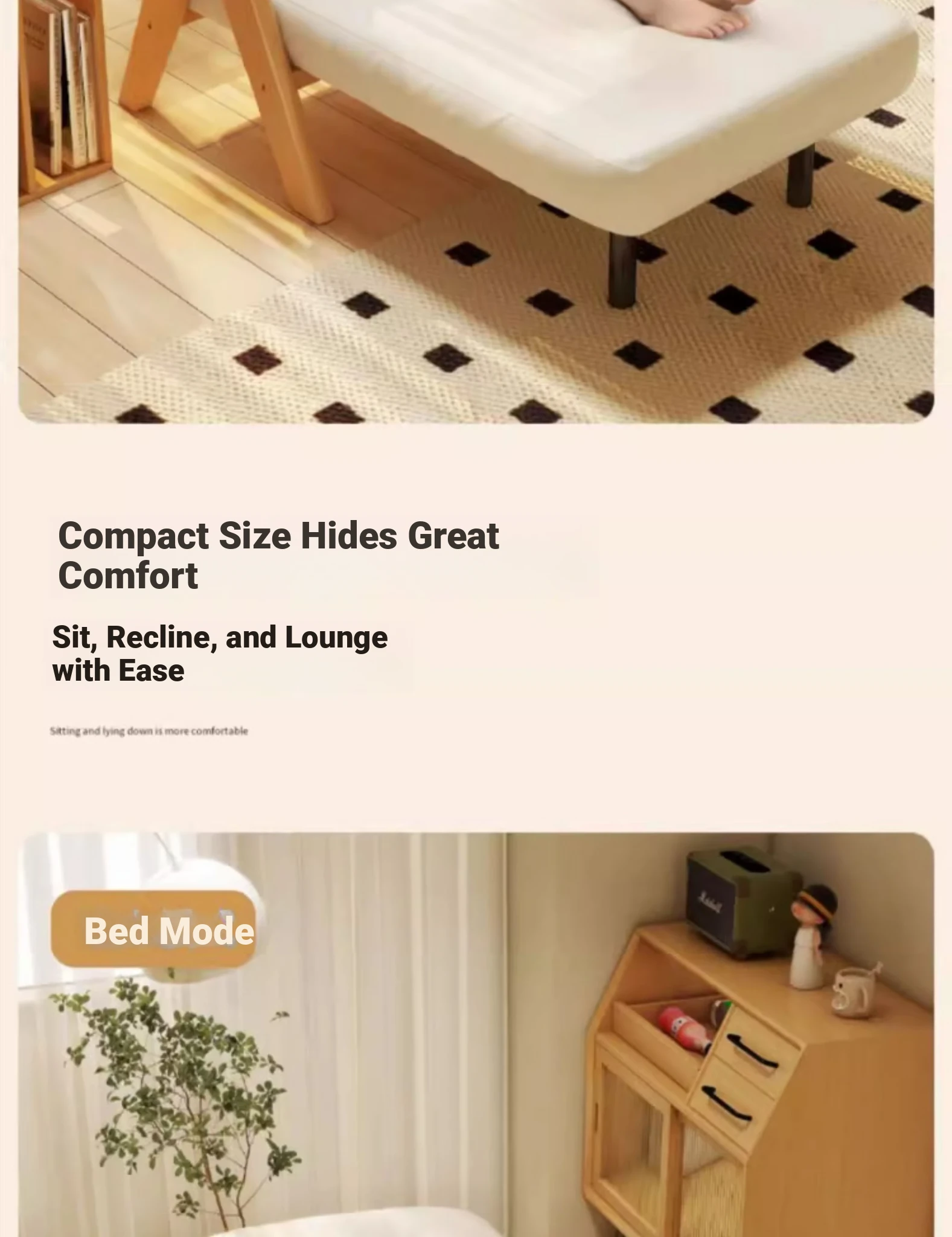 2025 New Multi-Functional Folding Sofa Bed - Stylish Single Sofa for Living Room & Balcony, Space-Saving Design with Solid Wood Frame, Perfect for Small Spaces and Modern Homes
