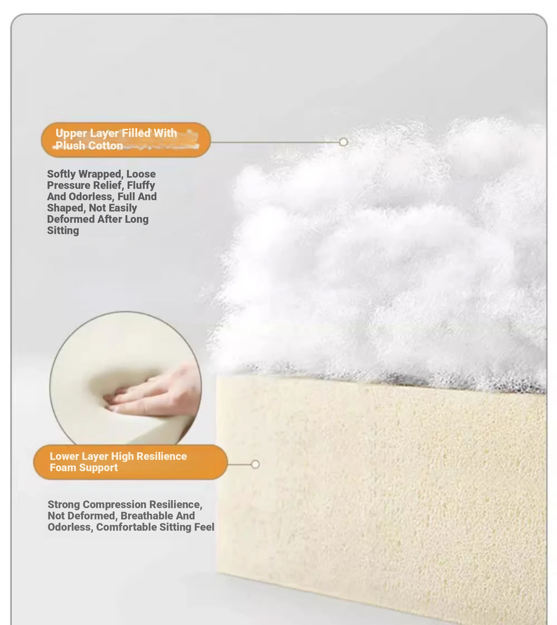 29.53in Comfortable Cotton]⭐Straight-down impulse⭐Creamy-white 【⭐Home Delivery] Black Walnut