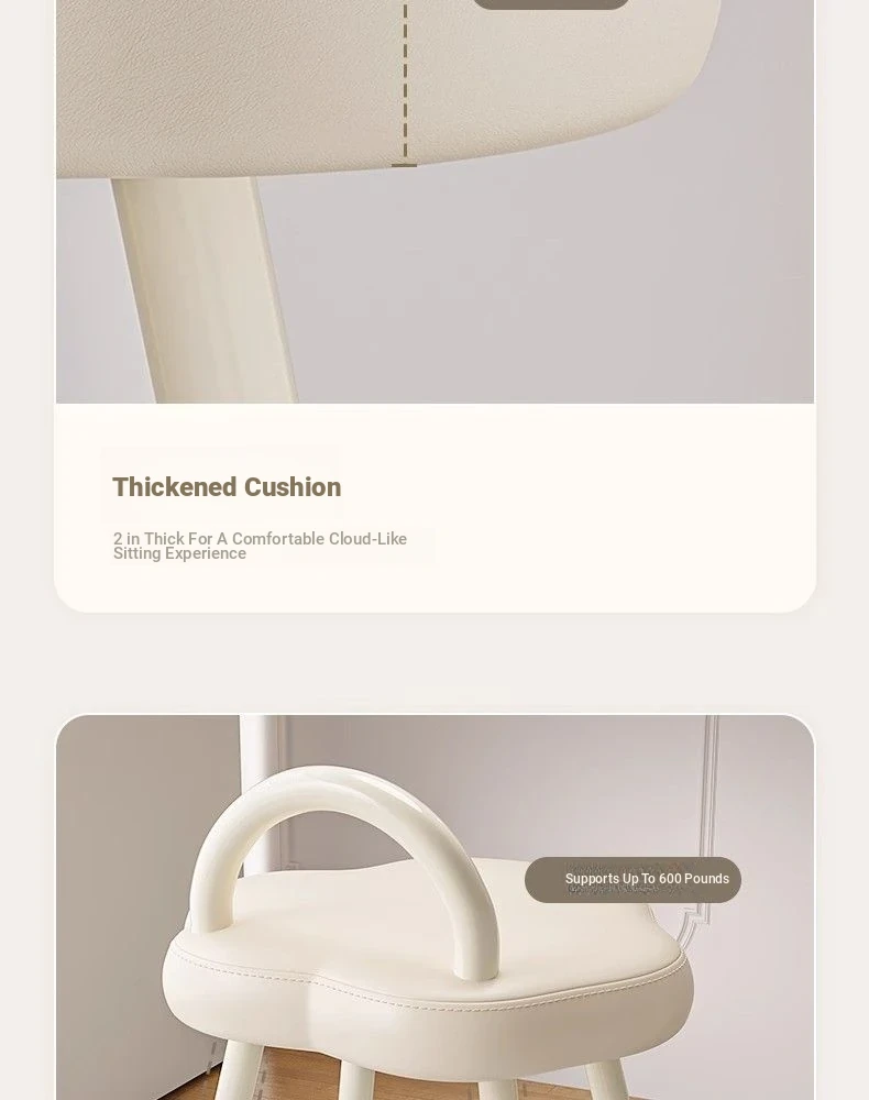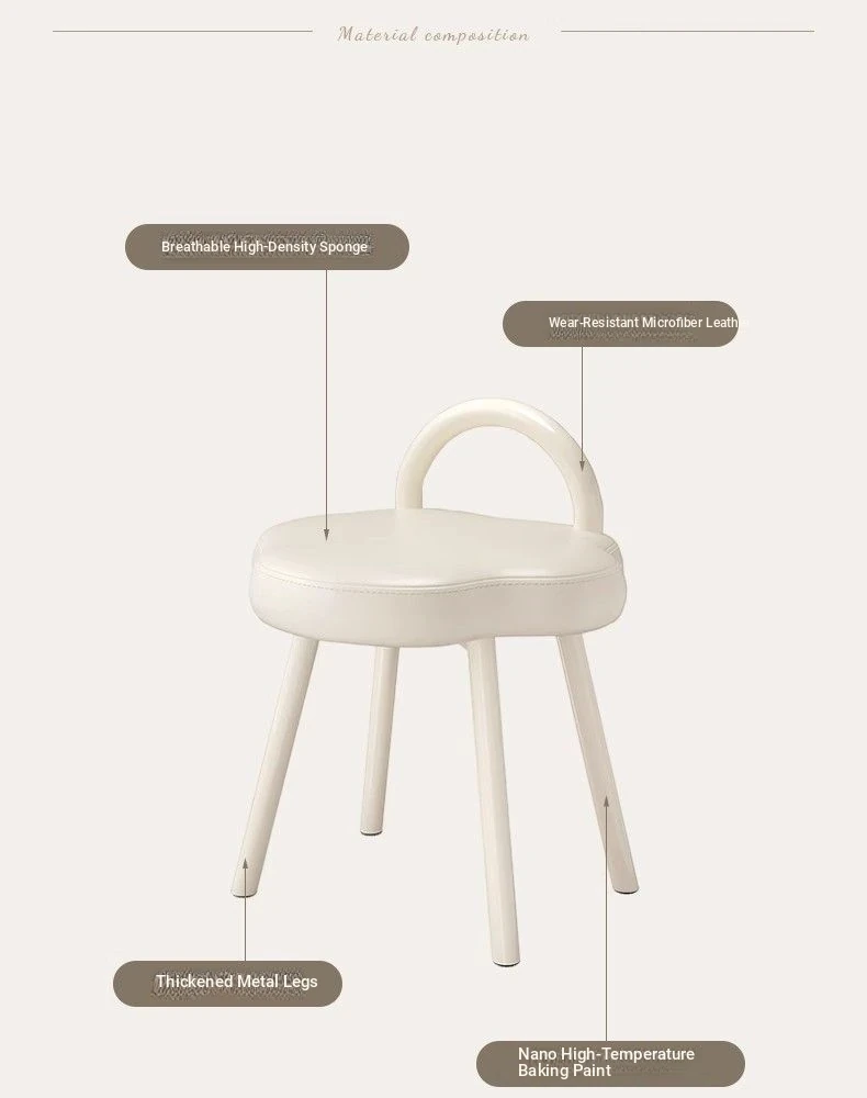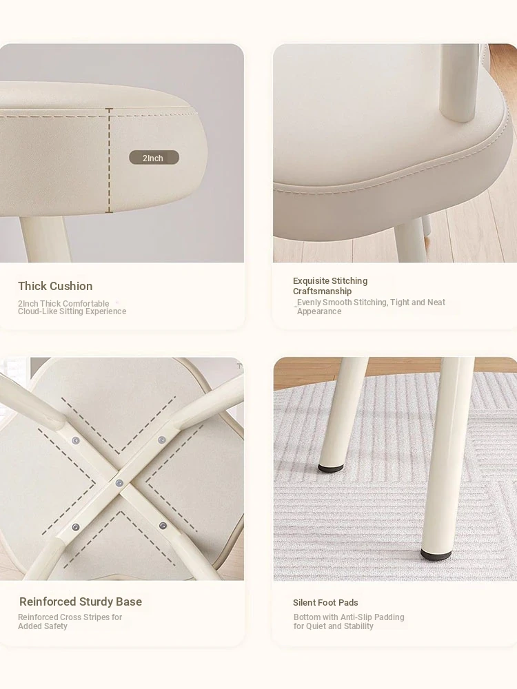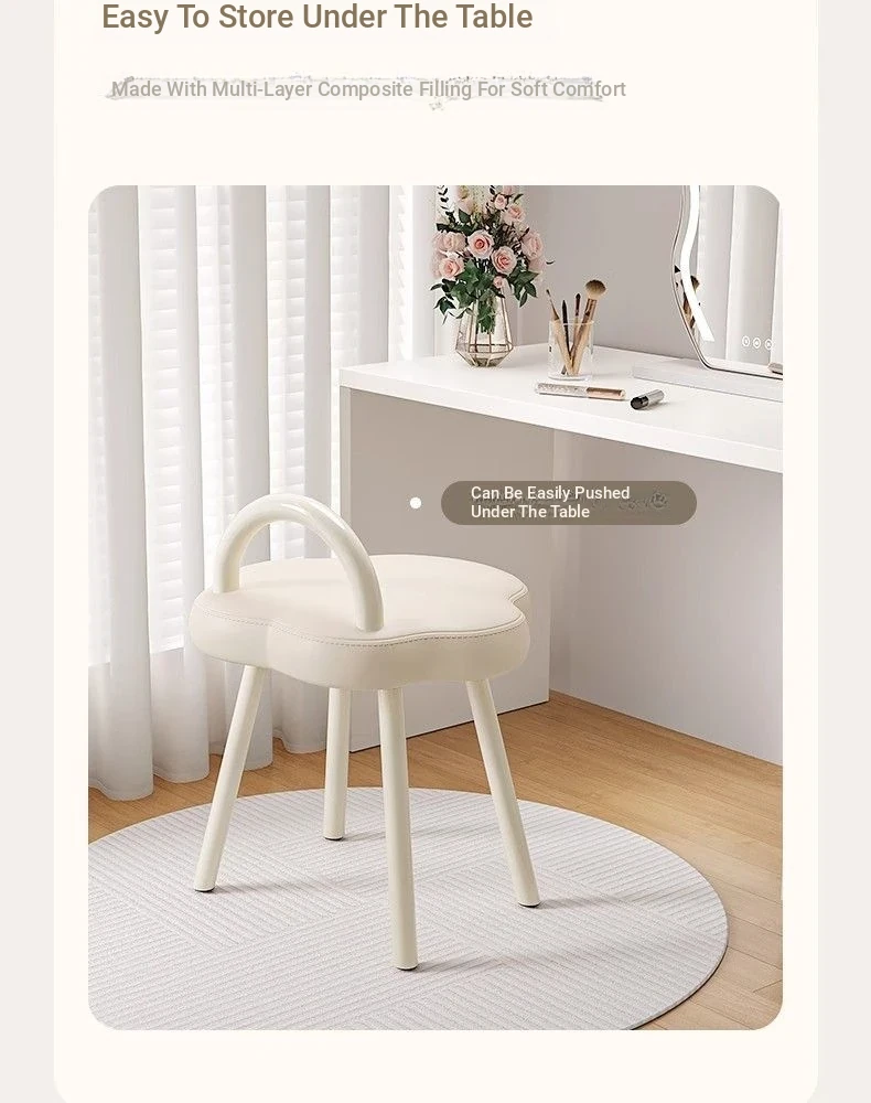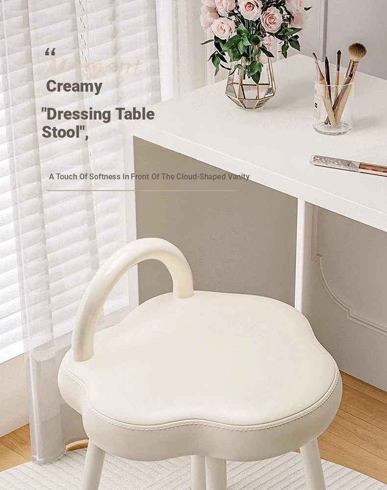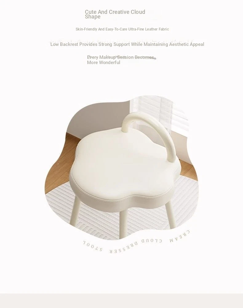 Elegant Makeup Stool for Vanity - Creamy Cloud Design Chair for Girls' Bedrooms and Dressing Rooms - Chic Nail Art Seat with a Touch of Luxury