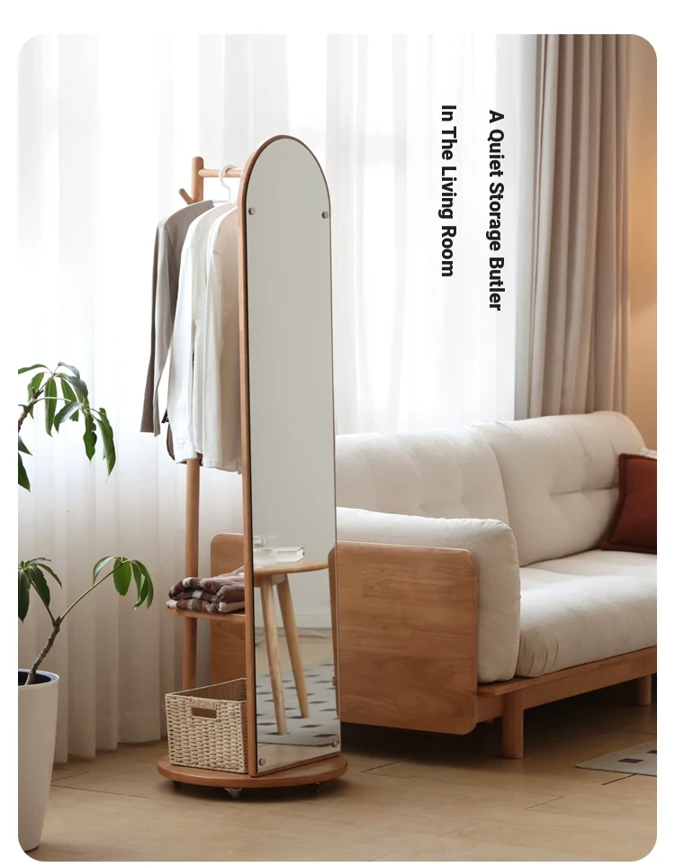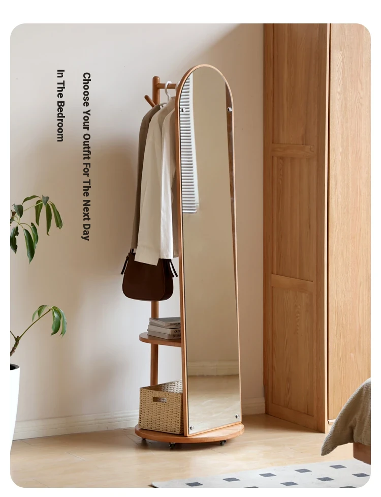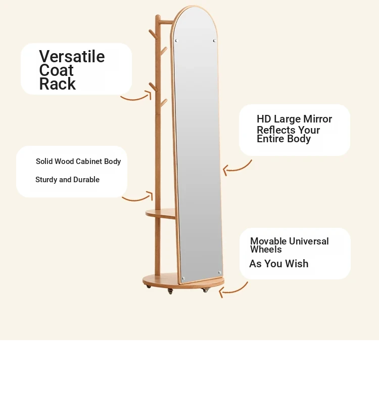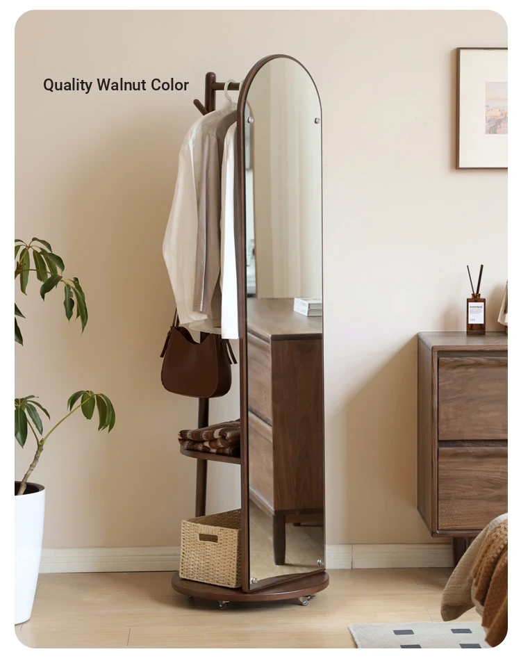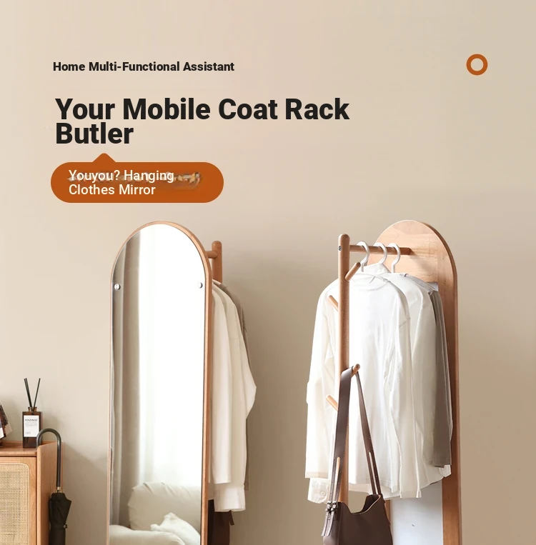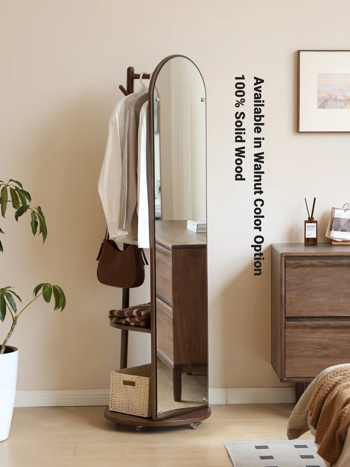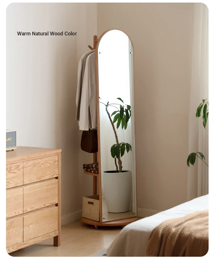 Genji Mu Yu x Visha Solid Wood Full-Length Mirror & Coat Rack Combo - Stylish, Movable Dressing Mirror for Your Bedroom, Perfect for Trying on Outfits!