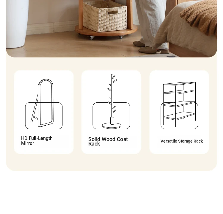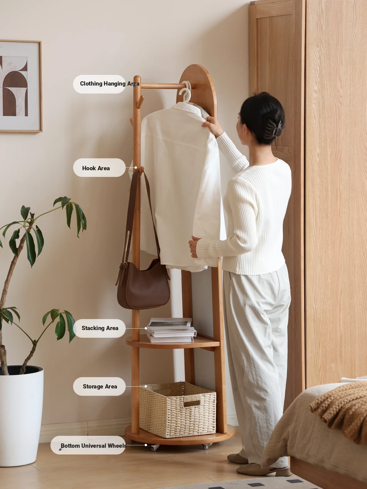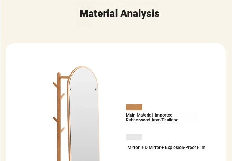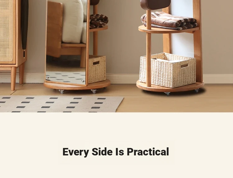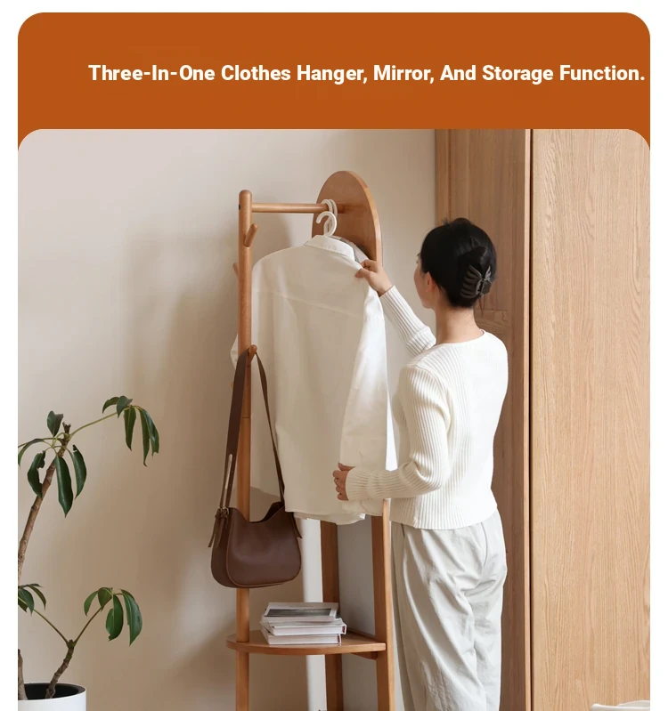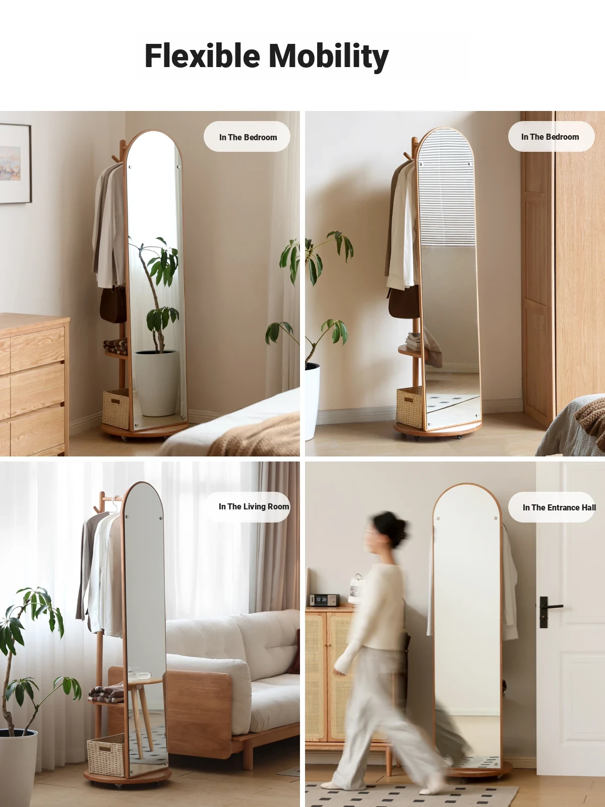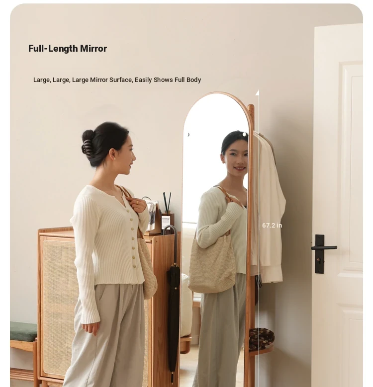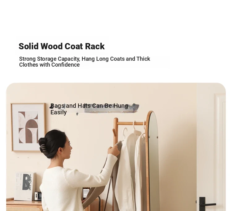 Genji Mu Yu x Visha Solid Wood Full-Length Mirror & Coat Rack Combo - Stylish, Movable Dressing Mirror for Your Bedroom, Perfect for Trying on Outfits!