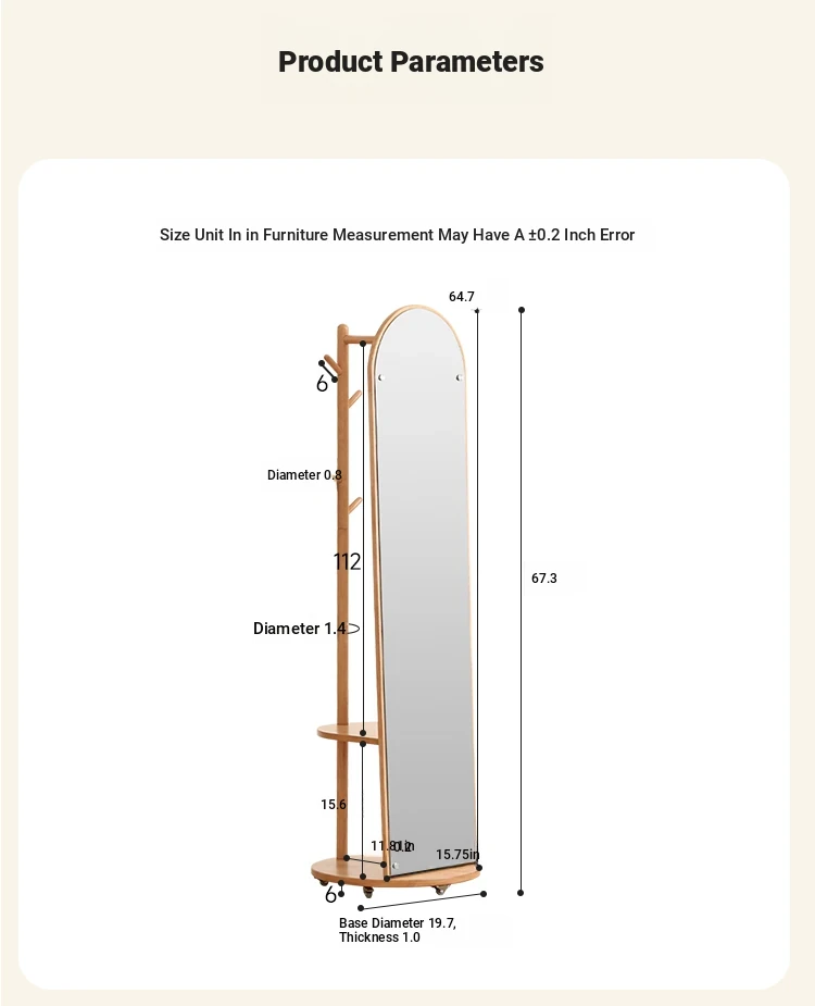 [Log color] dressing mirror -19.69 in (19.69in*19.69in*67.20in)