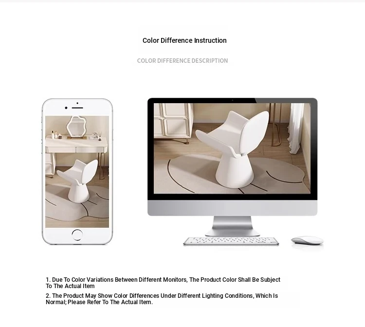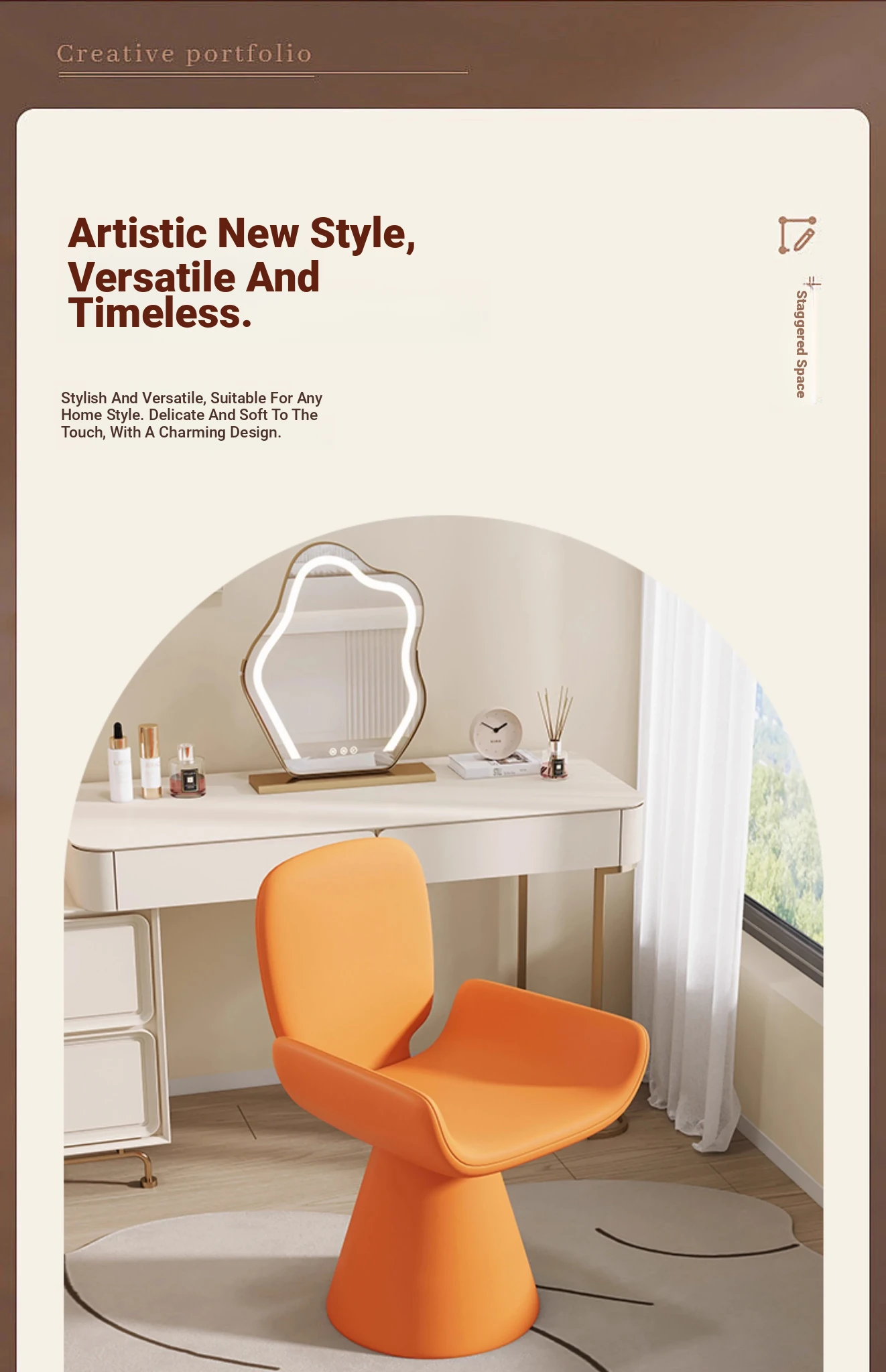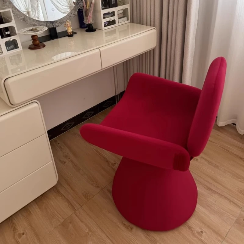 Luxurious Makeup Chair for Master Bedroom - Elegant Vanity Stool with Backrest, Perfect for Girls' Rooms, Creamy Aesthetic, Ideal for Nail Art and Grooming.