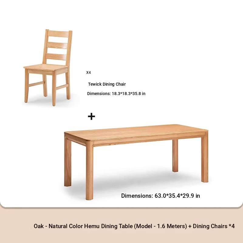 [Oak-Log Color] 1.6-meter Table and 4 Chairs (B1121)