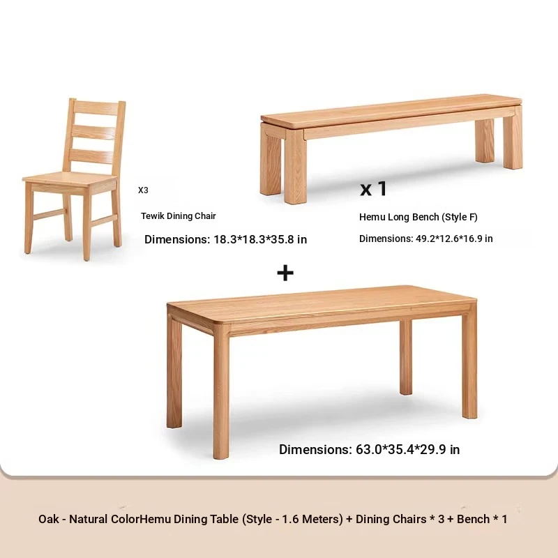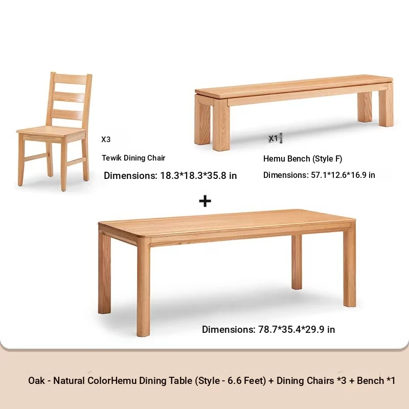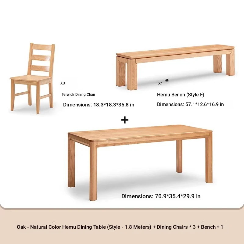 [Oak-log color] 70.87 ins a table, 3 chairs and 1 bench (B1121 + L7135)