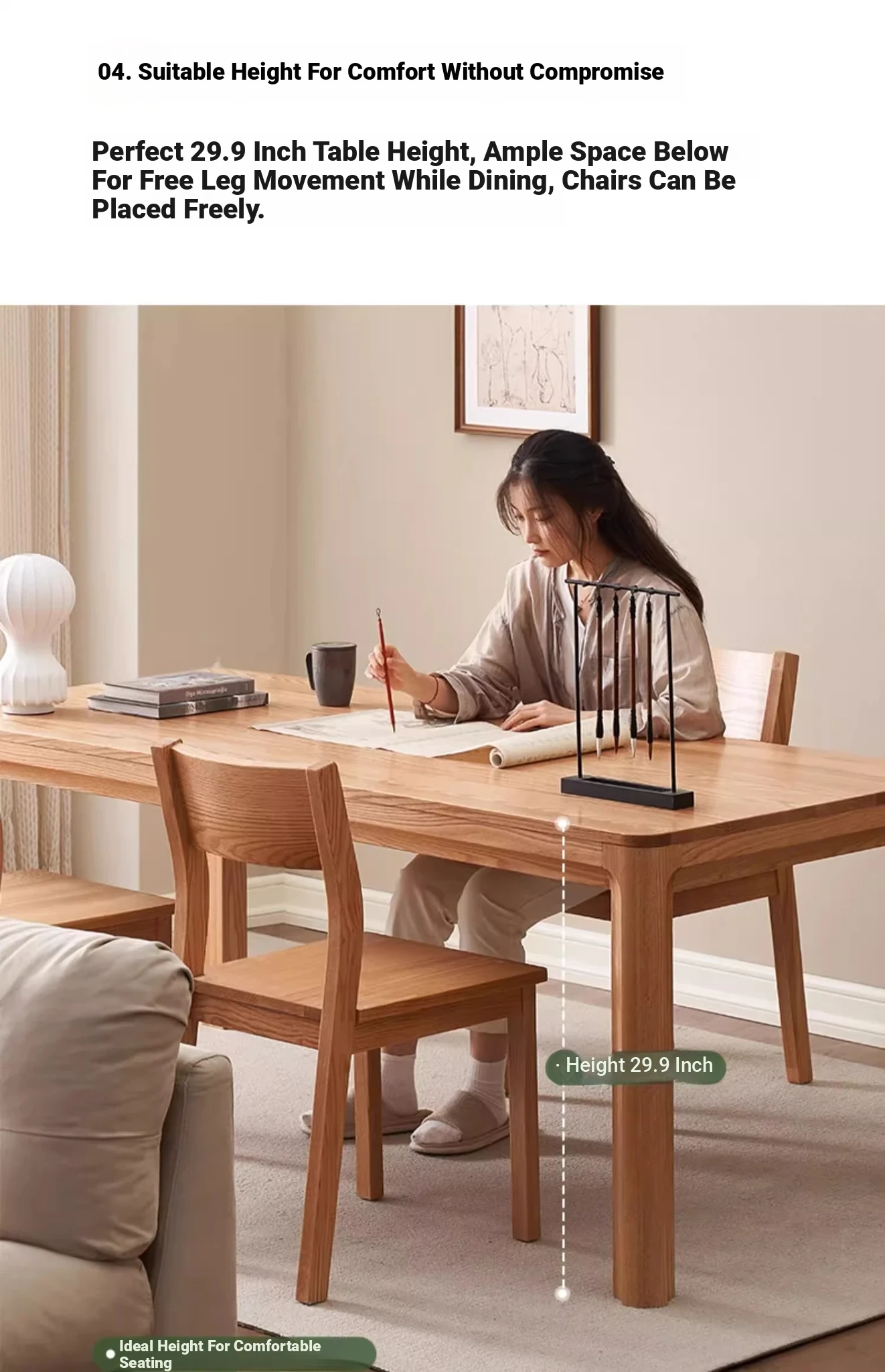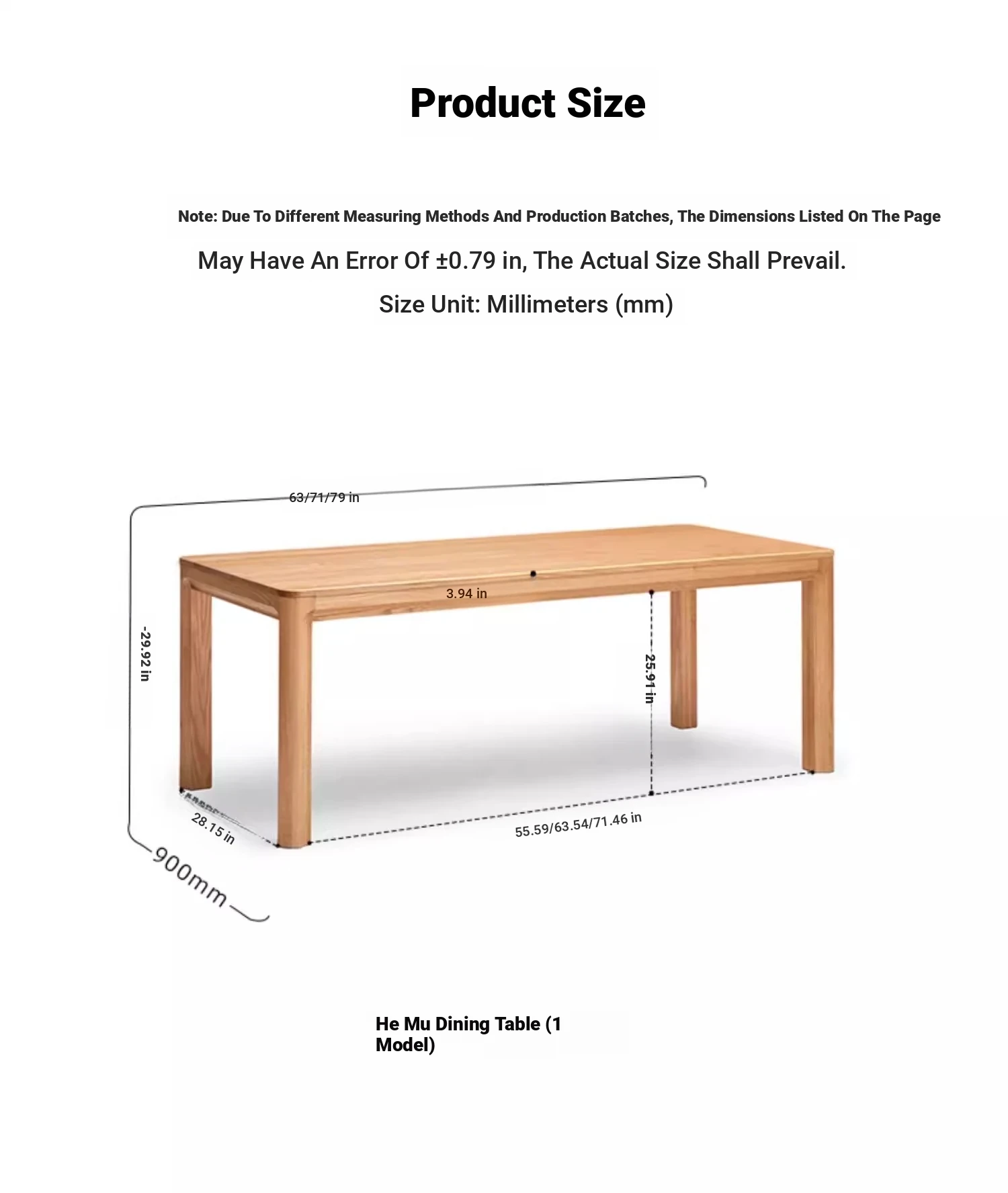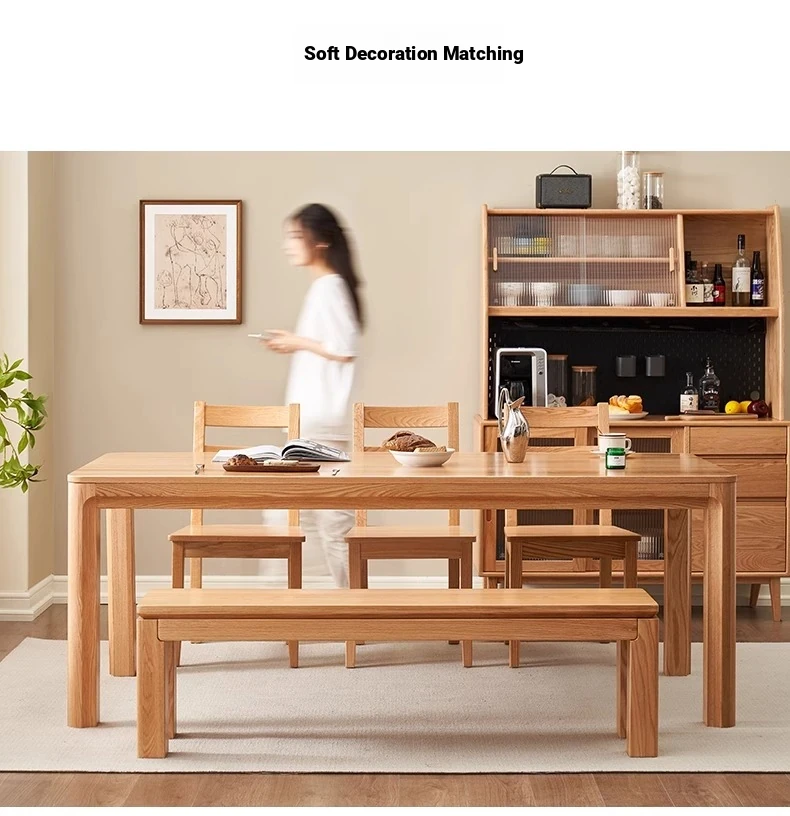 [Oak-log color] 62.99 in dining table (62.99in*35.43in*29.92in)