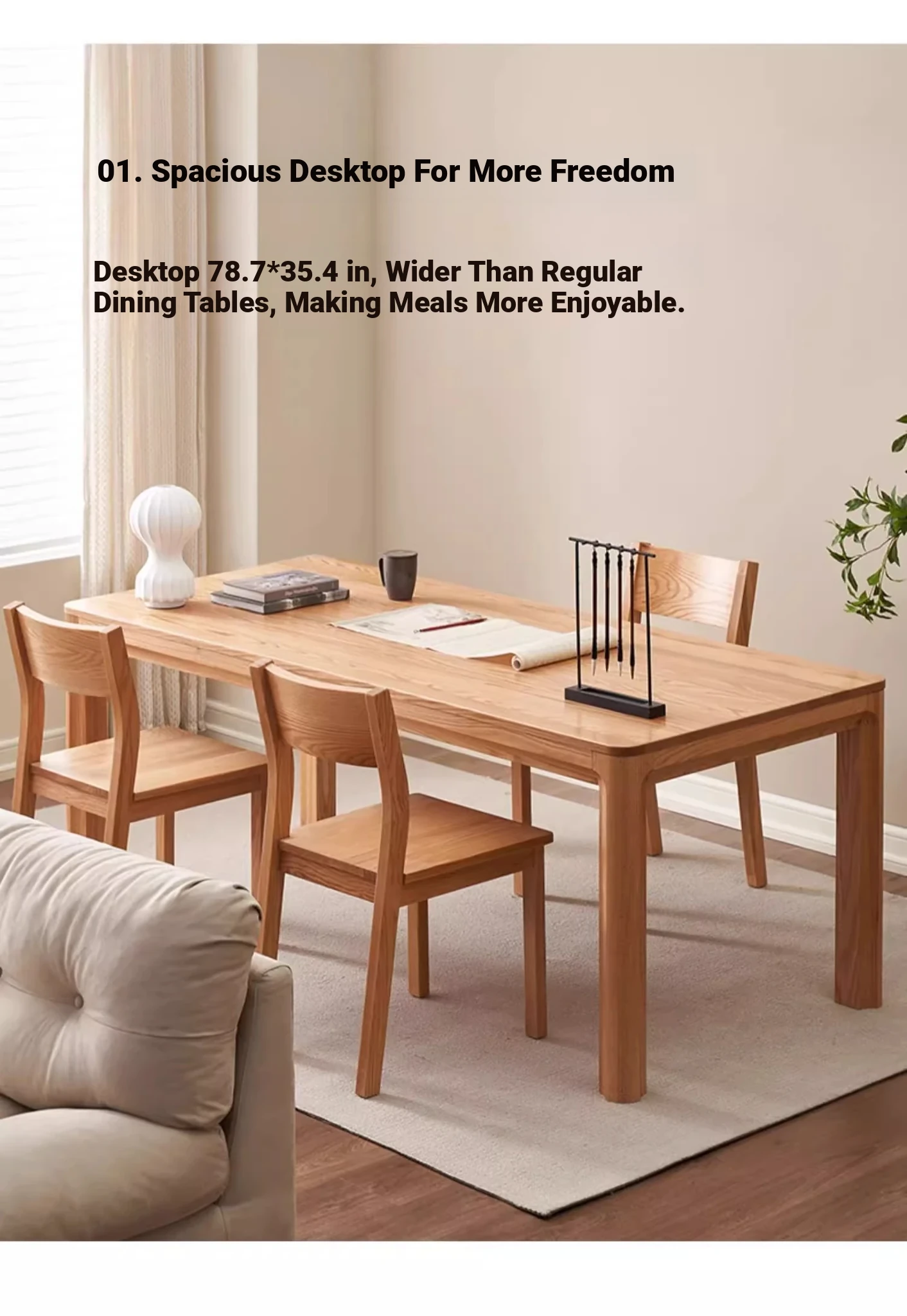 [Oak-log color] 70.87 in dining table (70.87in*35.43in*29.92in)