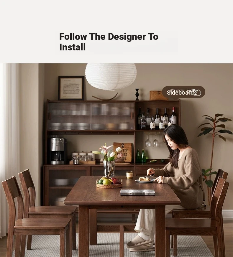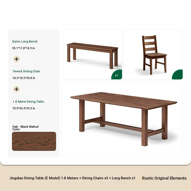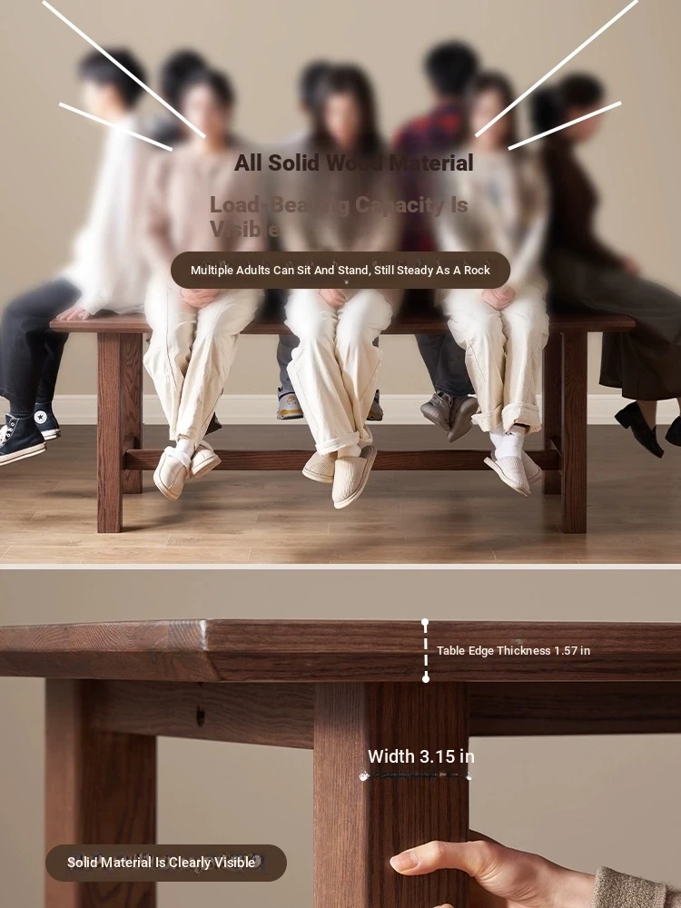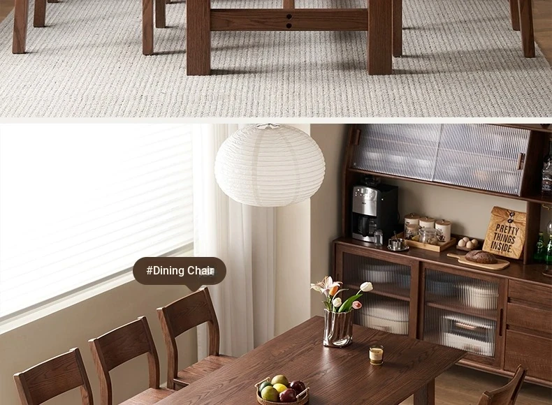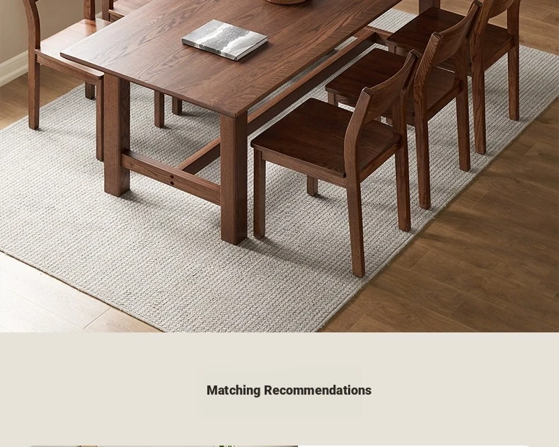 Nordic Solid Wood Dining Table Set - Rustic Oak & Walnut Large Board Table with Chairs - Perfect for Family Meals and Elegant Dining Experiences