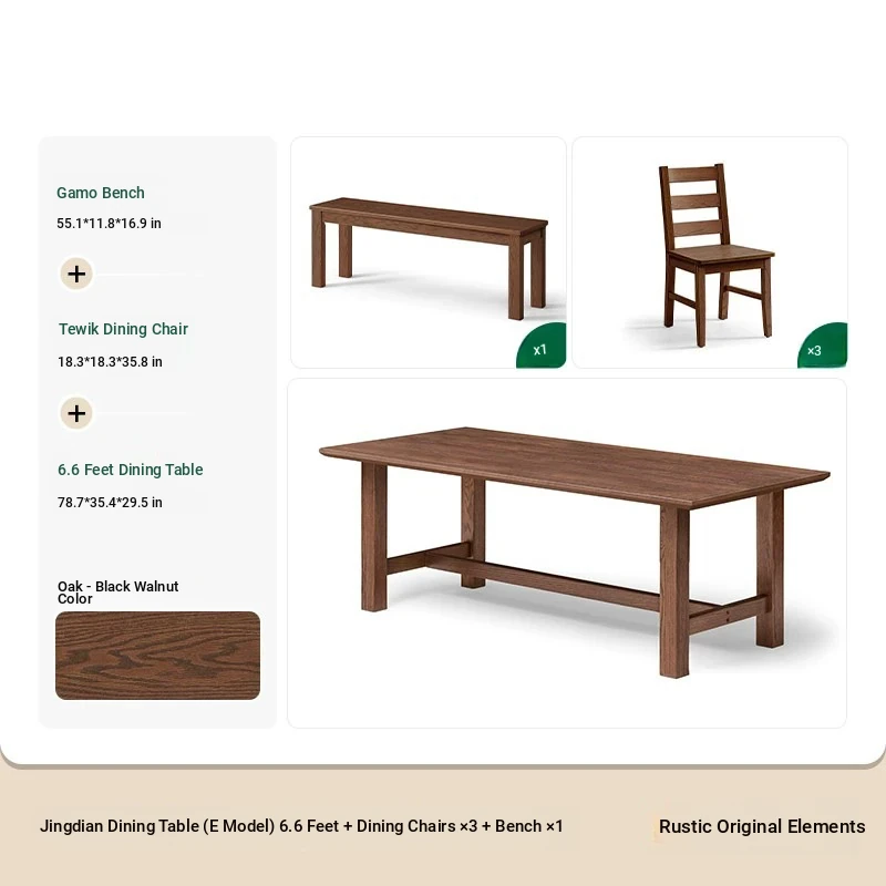 [Oak-Black Walnut] 78.74 in Dining Table + Tevic Dining Chair *(B1121)