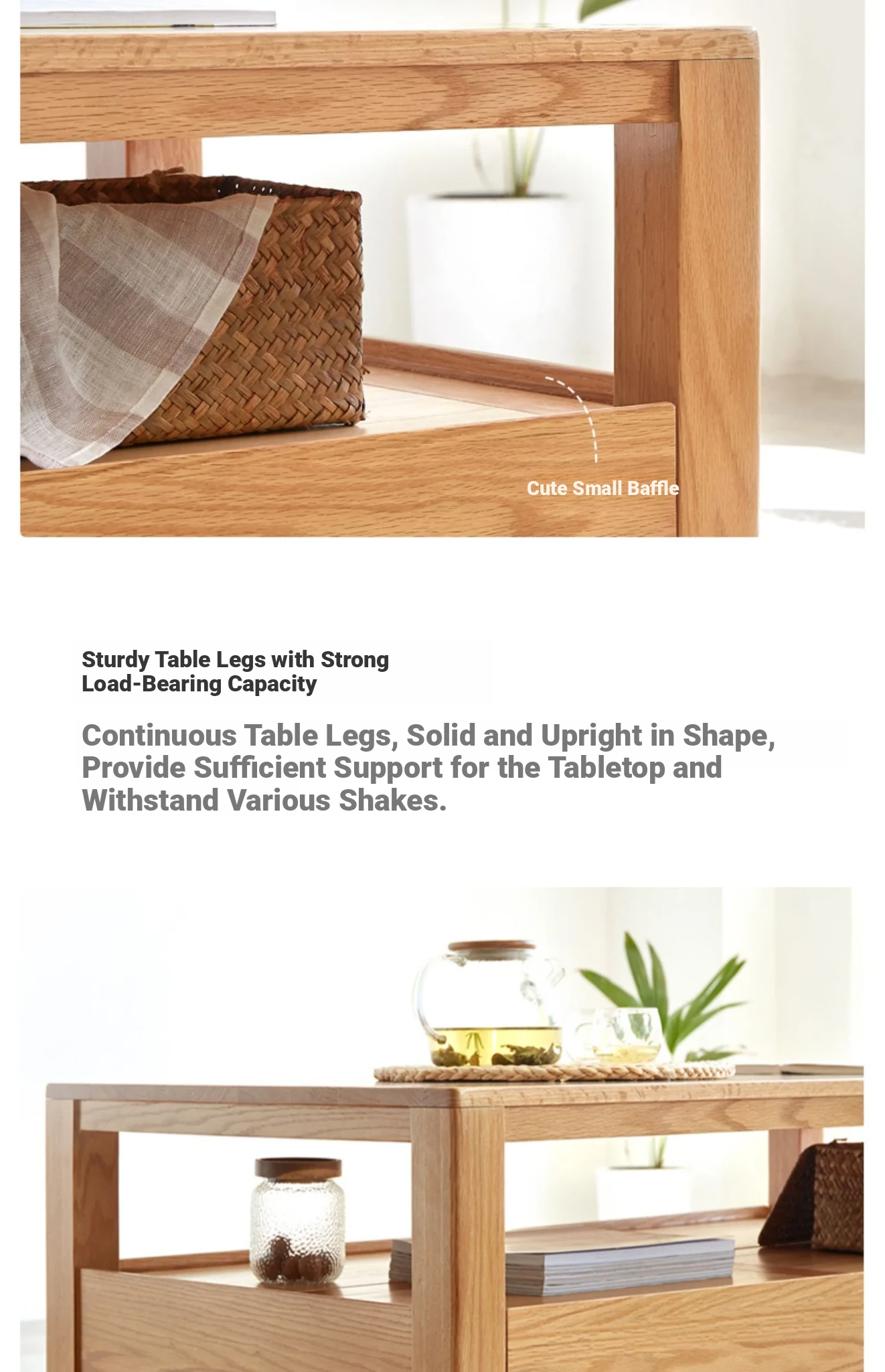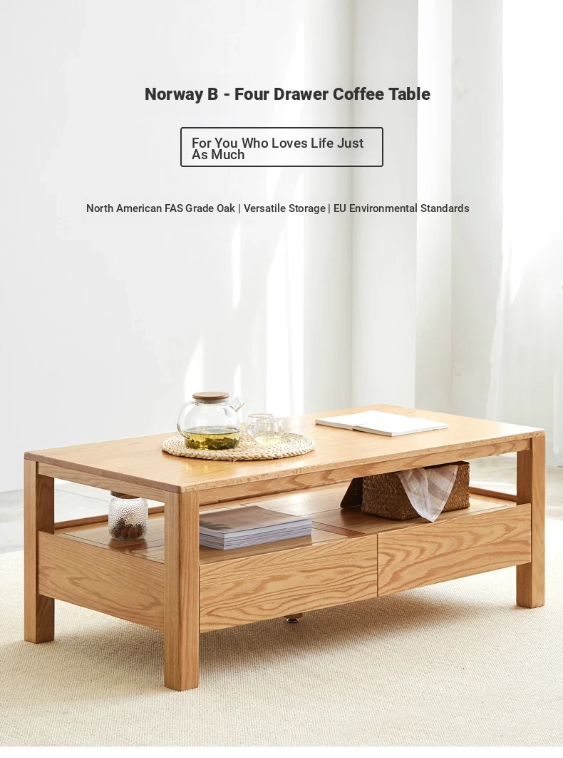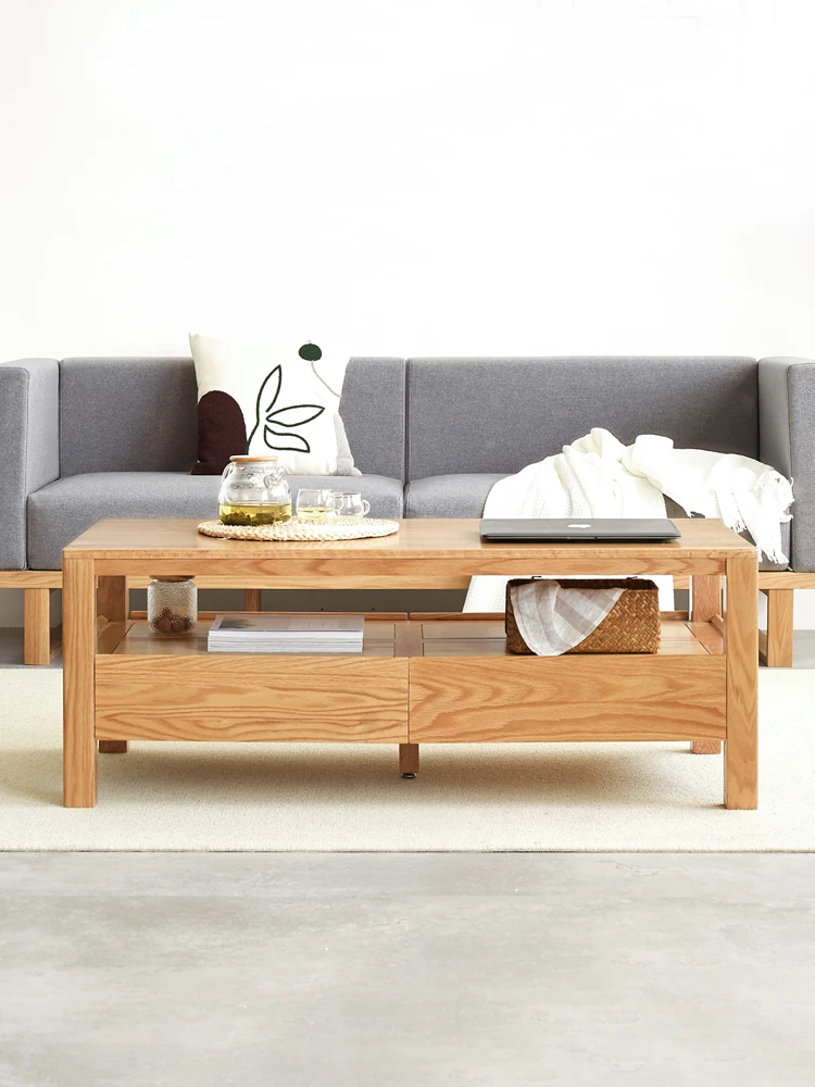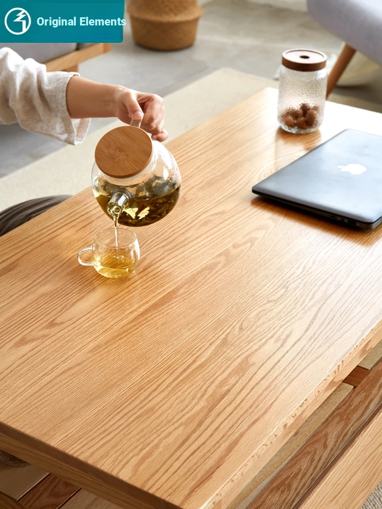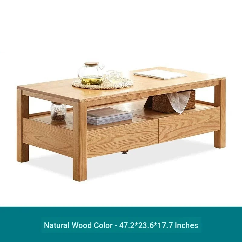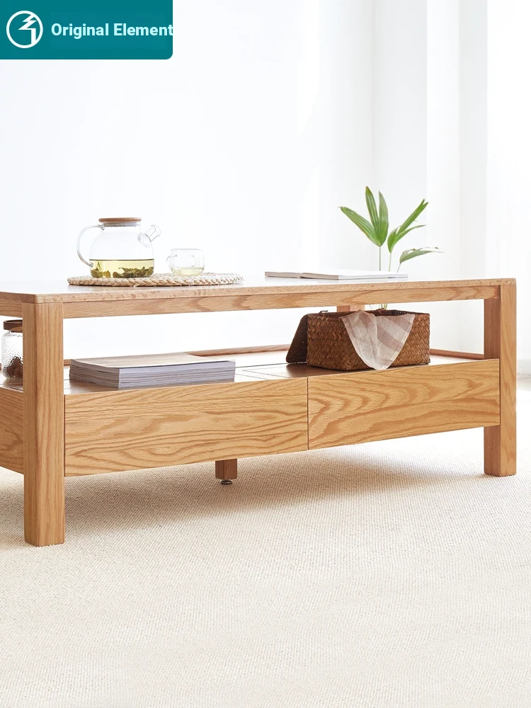 Original Element Solid Wood Coffee Table - Nordic Style for Small Living Rooms, Oak Double-Layer Minimalist Design with Storage for Tea and Drinks