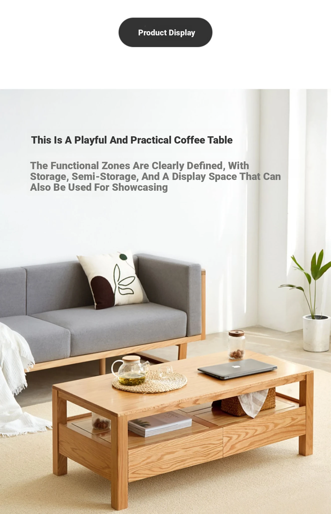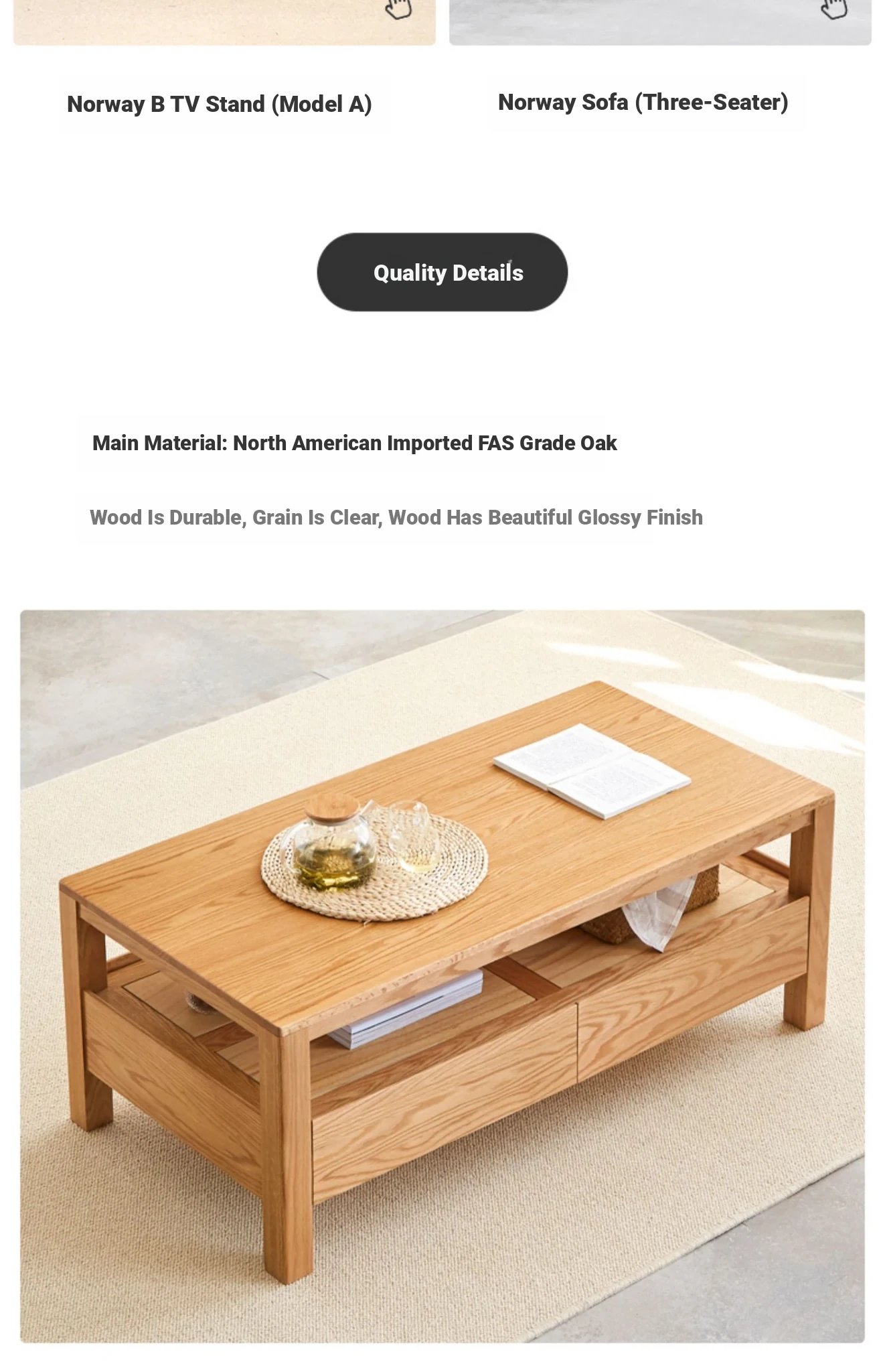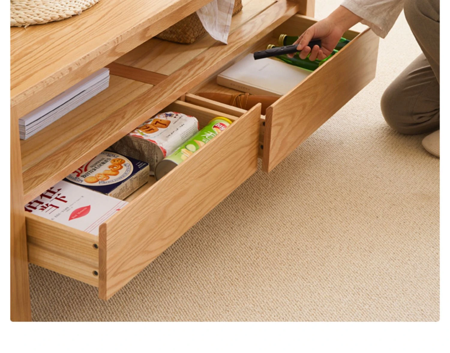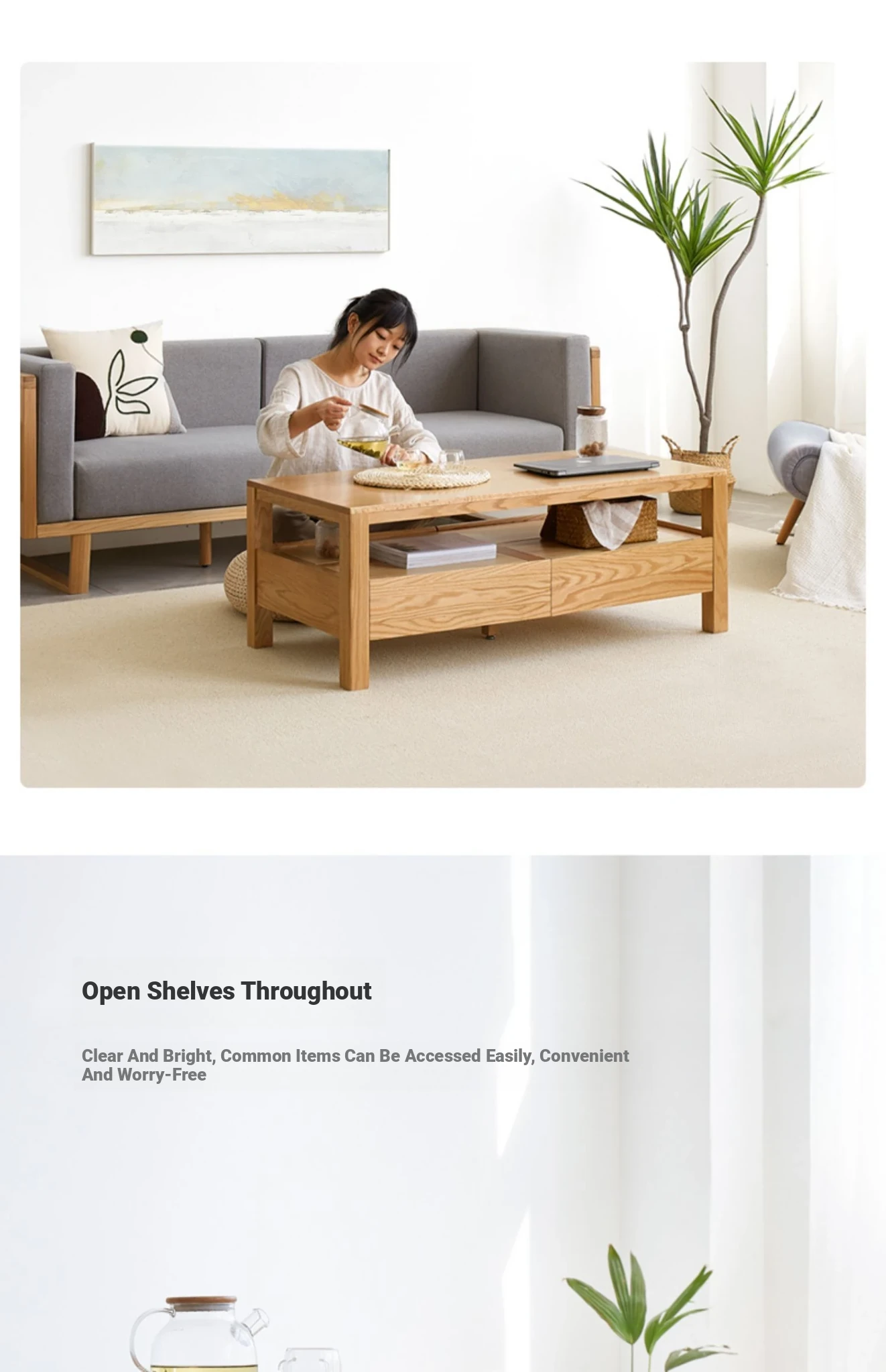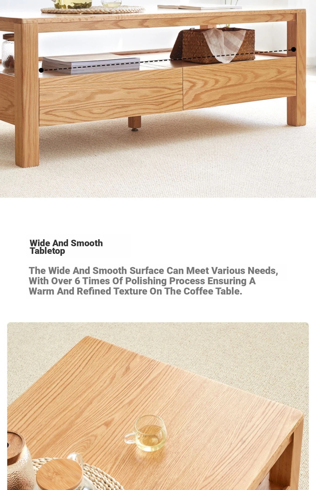 Original Element Solid Wood Coffee Table - Nordic Style for Small Living Rooms, Oak Double-Layer Minimalist Design with Storage for Tea and Drinks