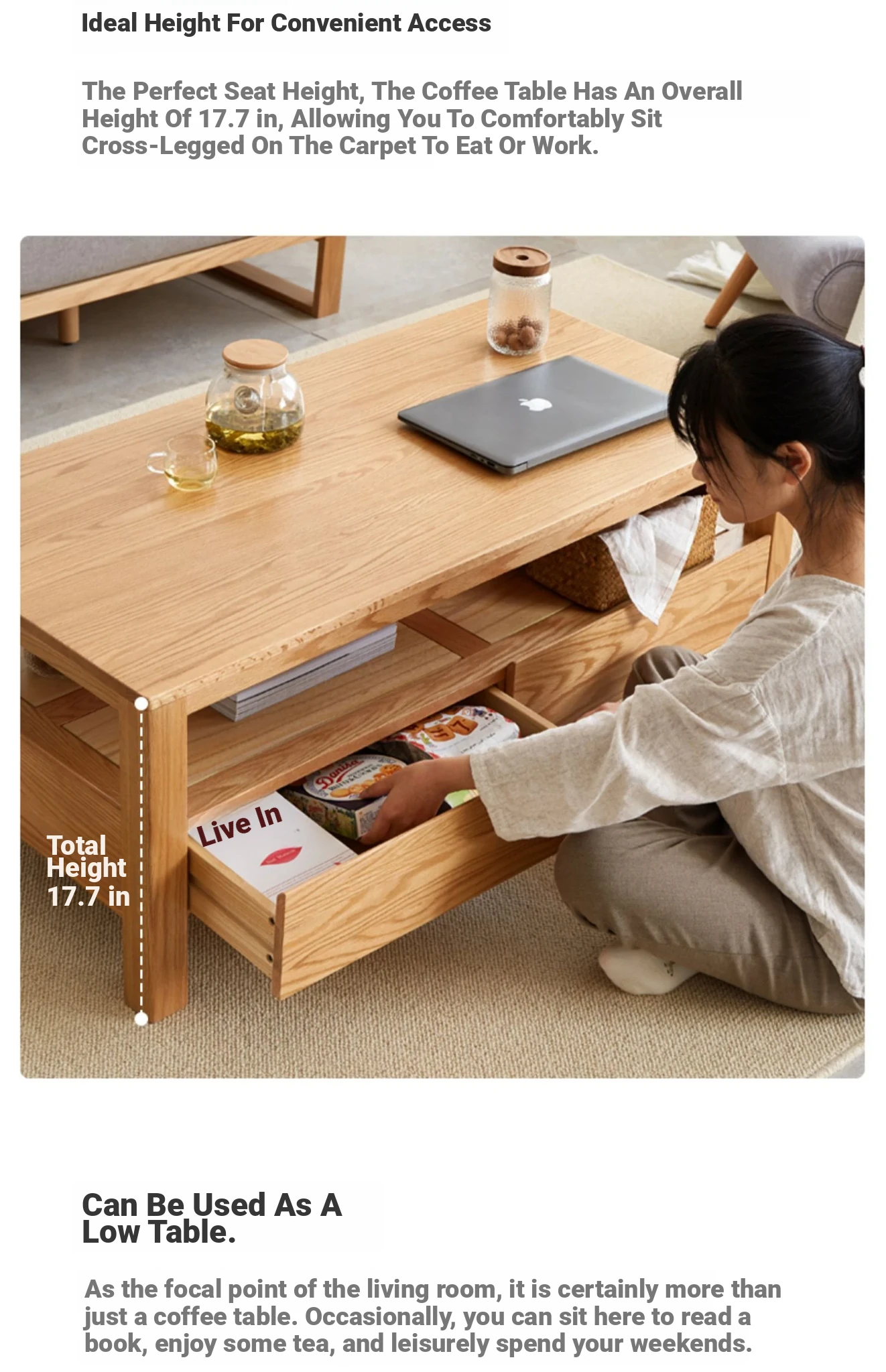 Log Color -1.2 Rice Tea Table [Upgrade A]](47.24in*23.62in*17.72in)