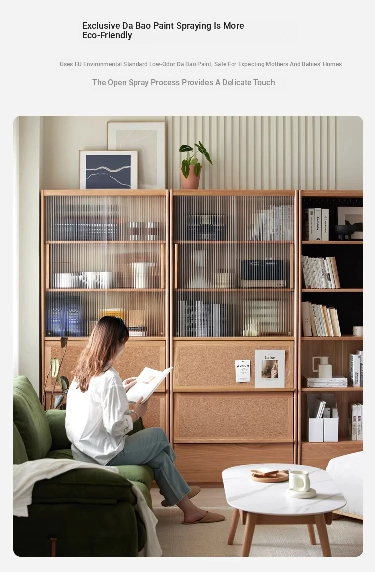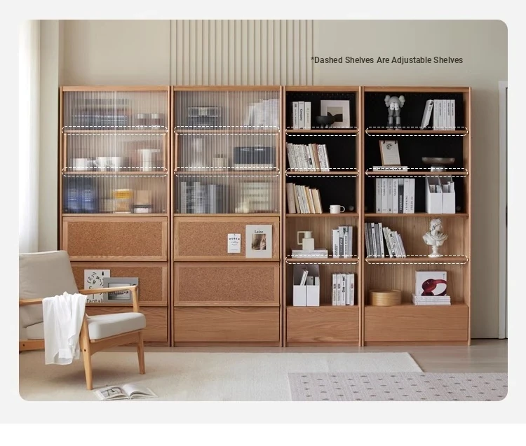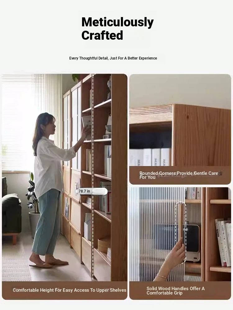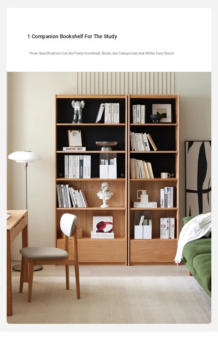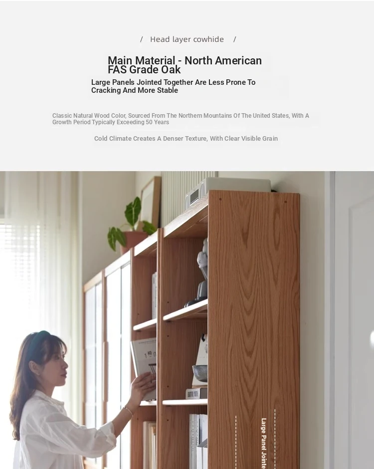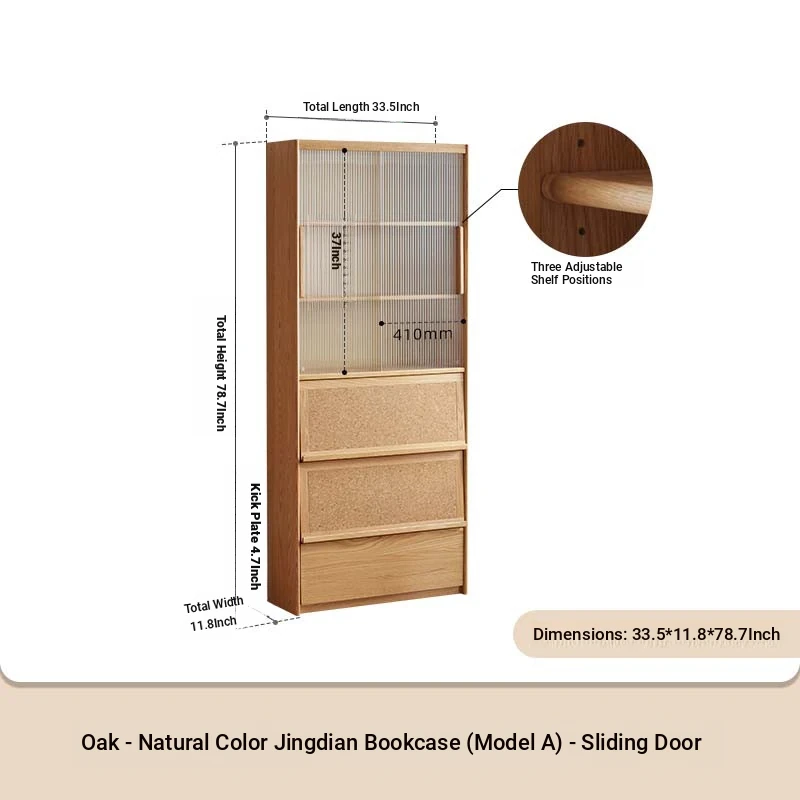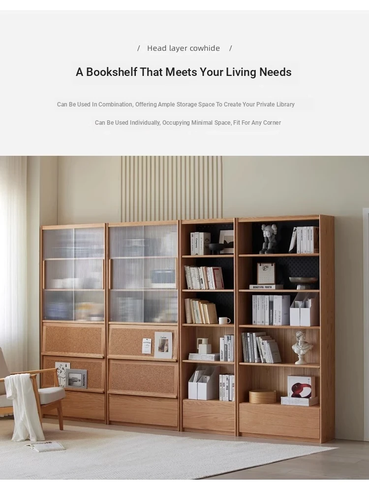 Original Element Solid Wood Modular Bookshelf with Sliding Doors - Oak Storage Cabinet for Living Room and Study, Stylish and Functional Floor Standing Bookcase