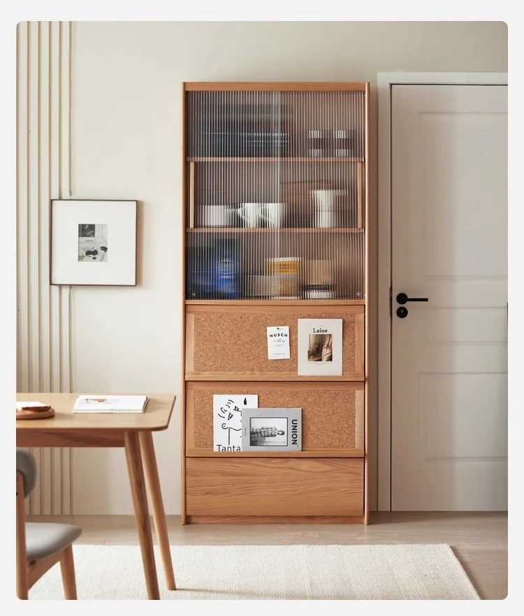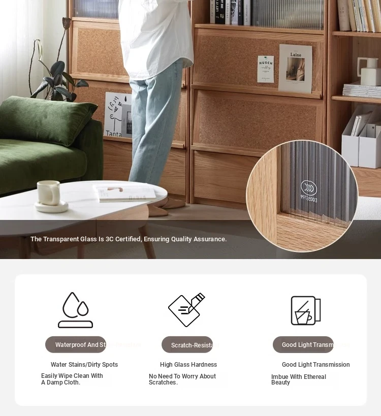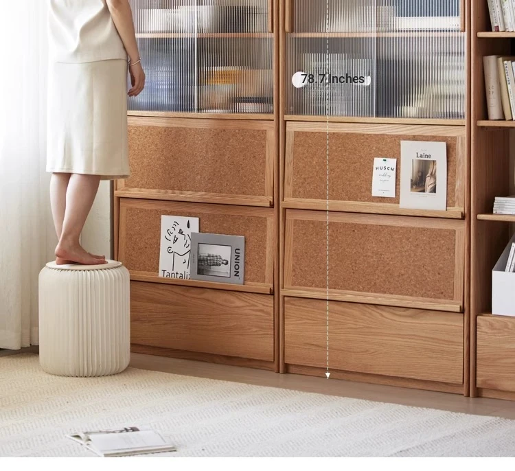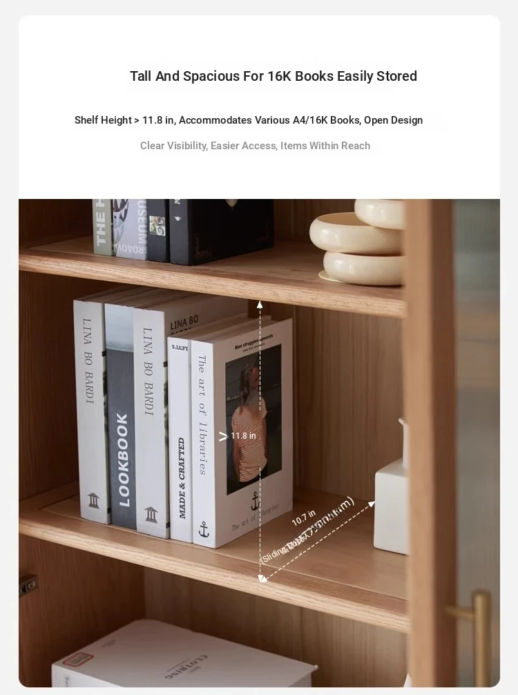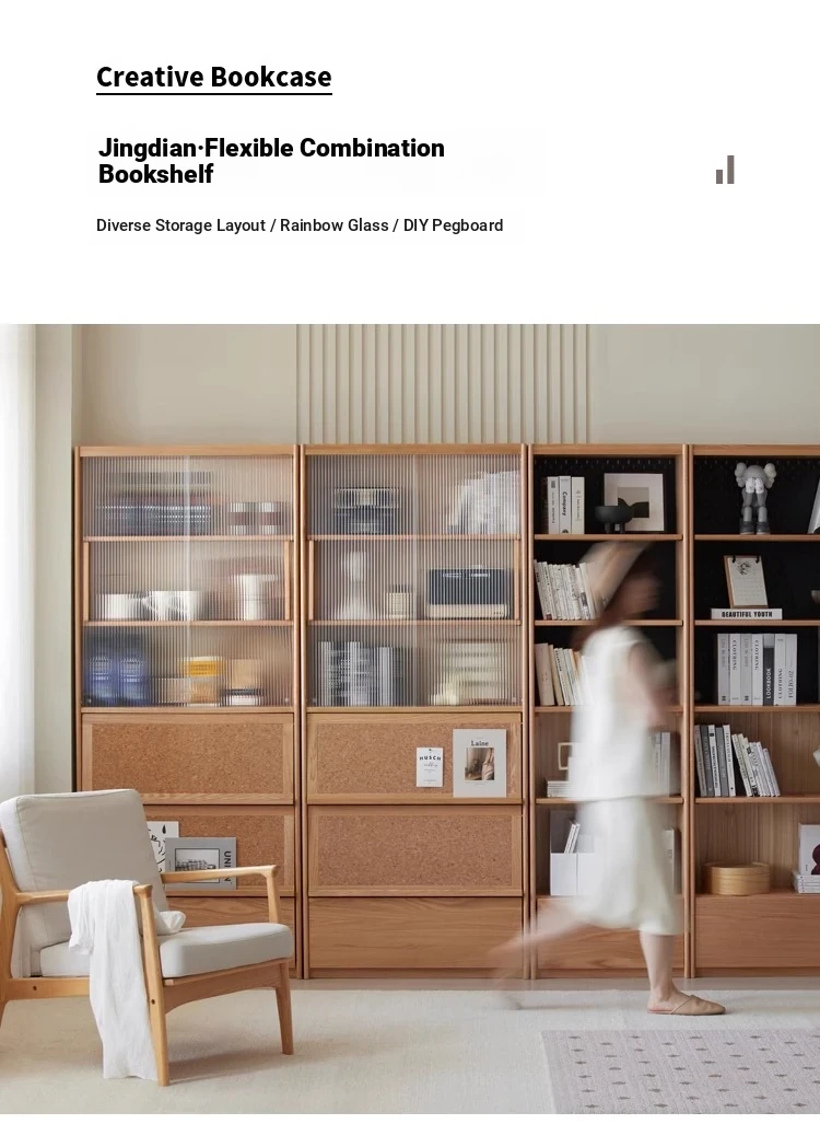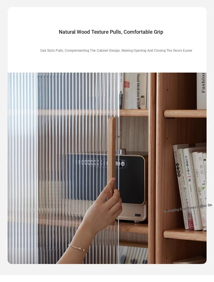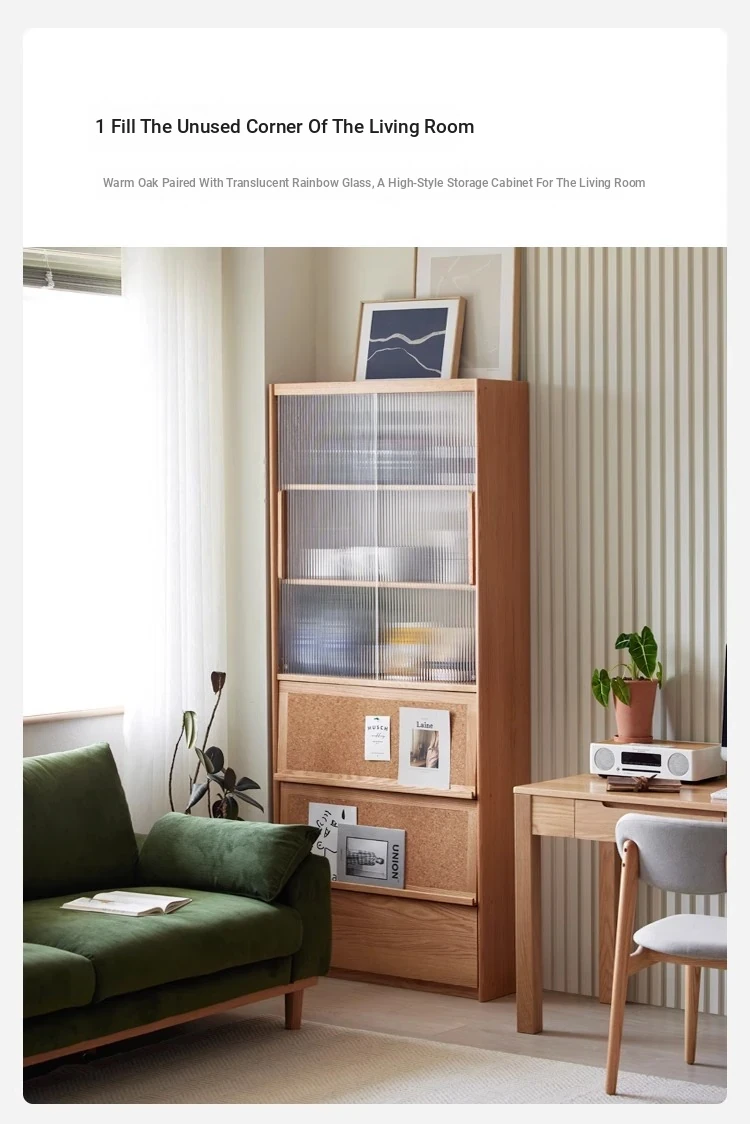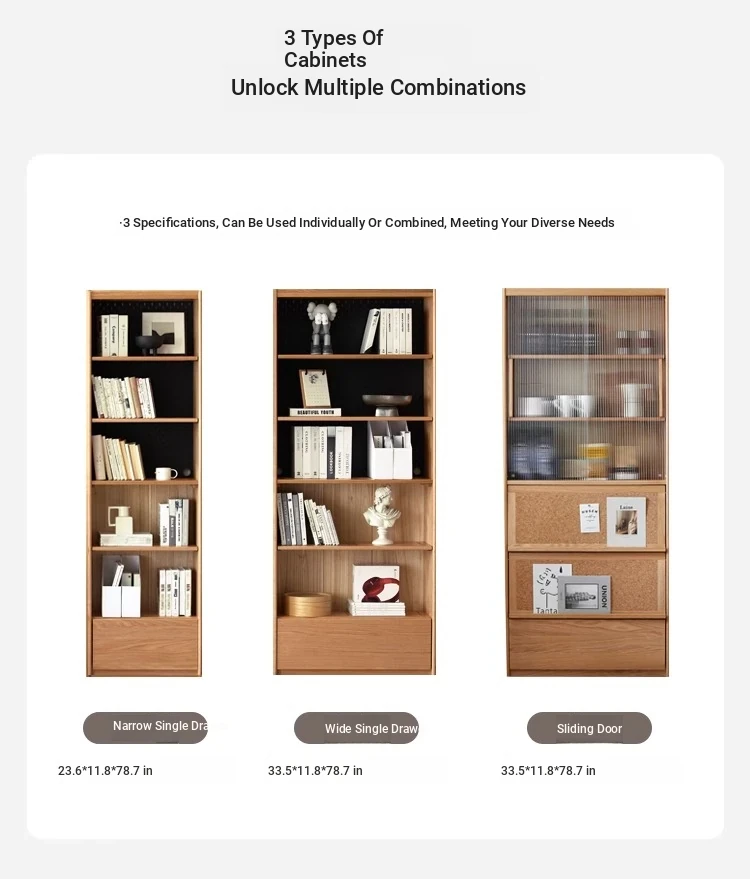 Original Element Solid Wood Modular Bookshelf with Sliding Doors - Oak Storage Cabinet for Living Room and Study, Stylish and Functional Floor Standing Bookcase
