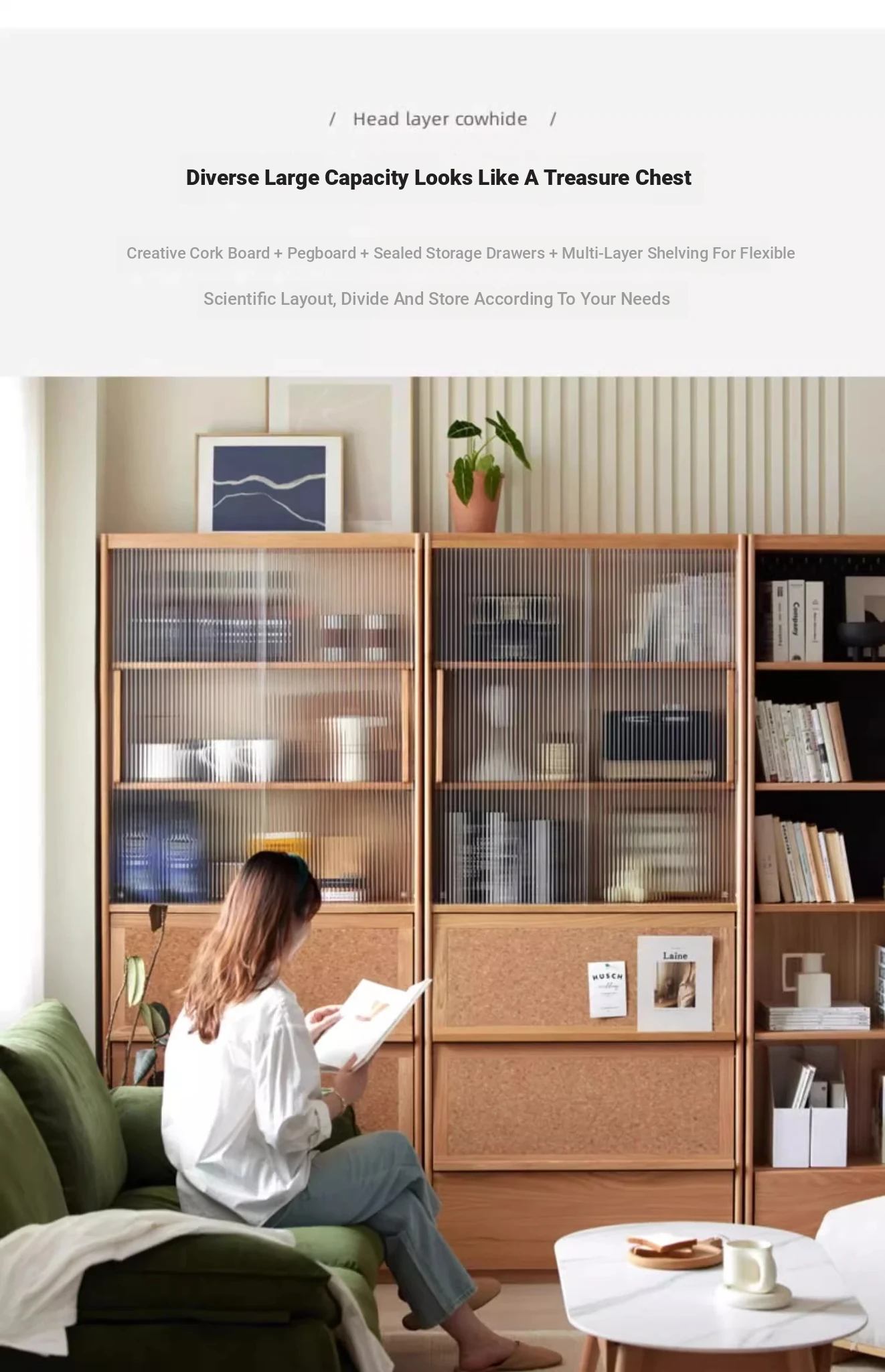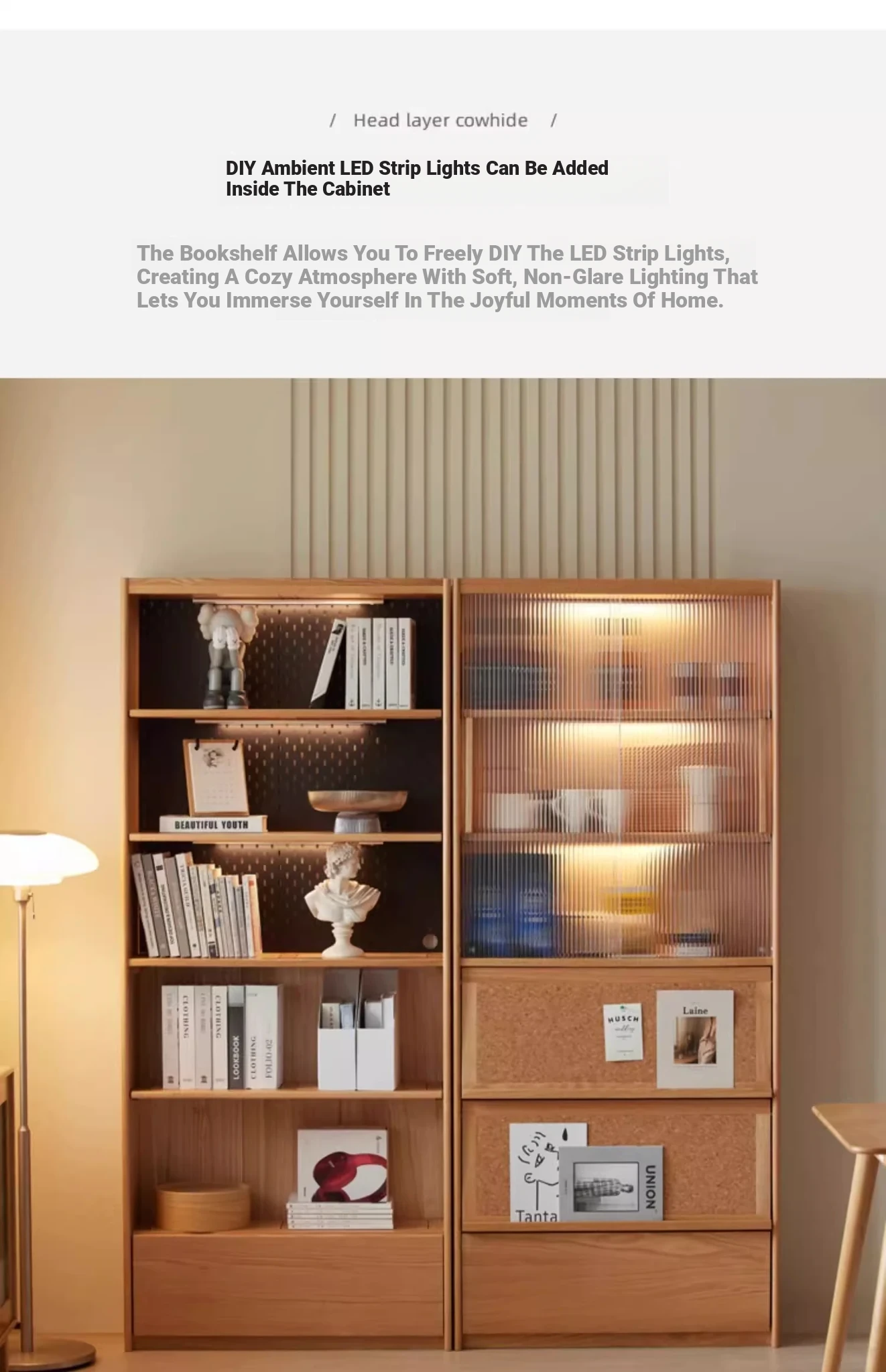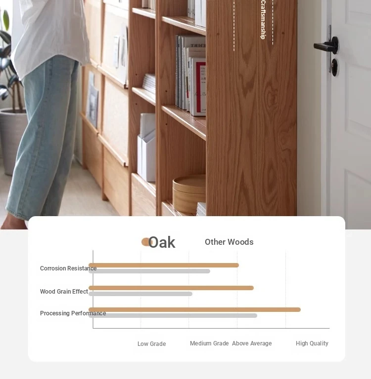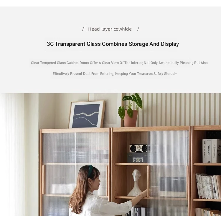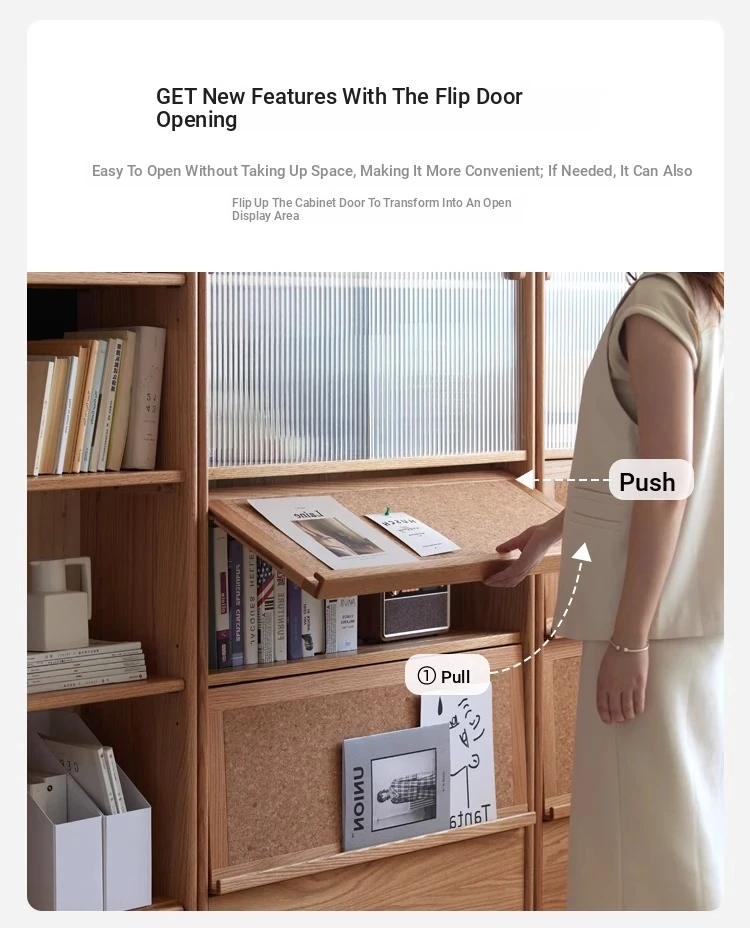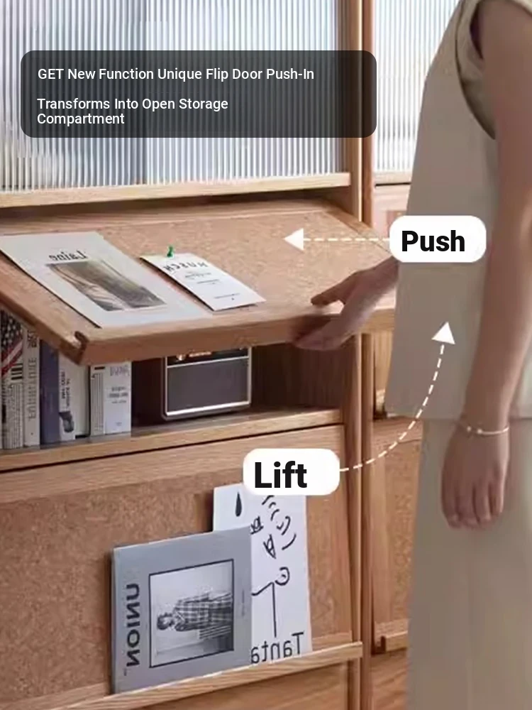 Original Element Solid Wood Modular Bookshelf with Sliding Doors - Oak Storage Cabinet for Living Room and Study, Stylish and Functional Floor Standing Bookcase