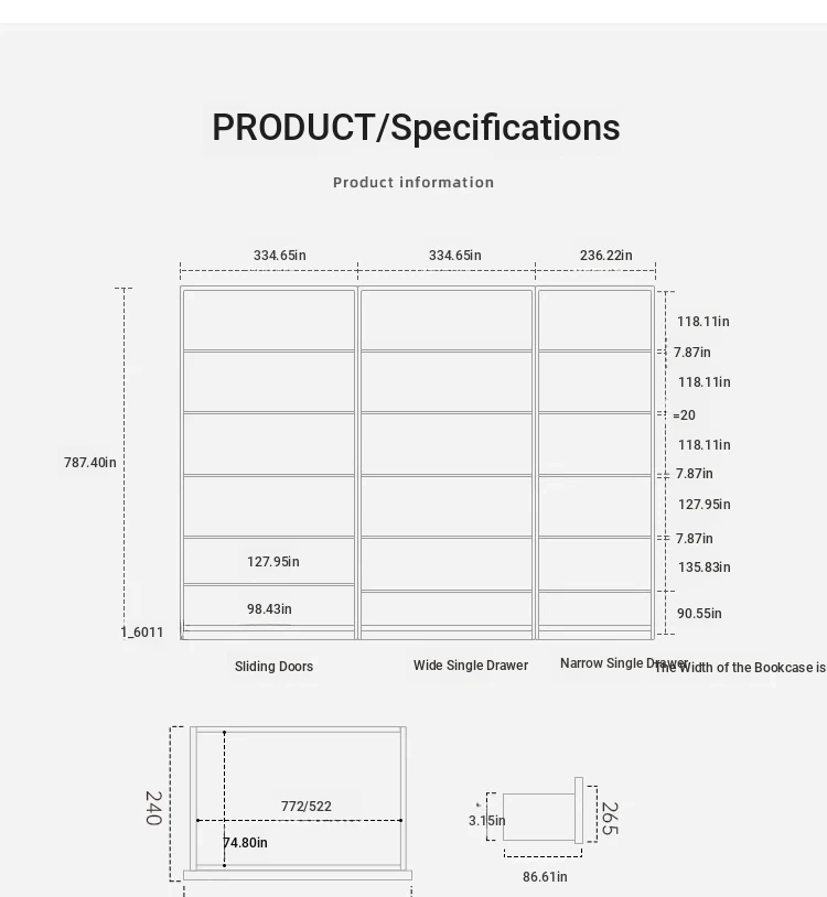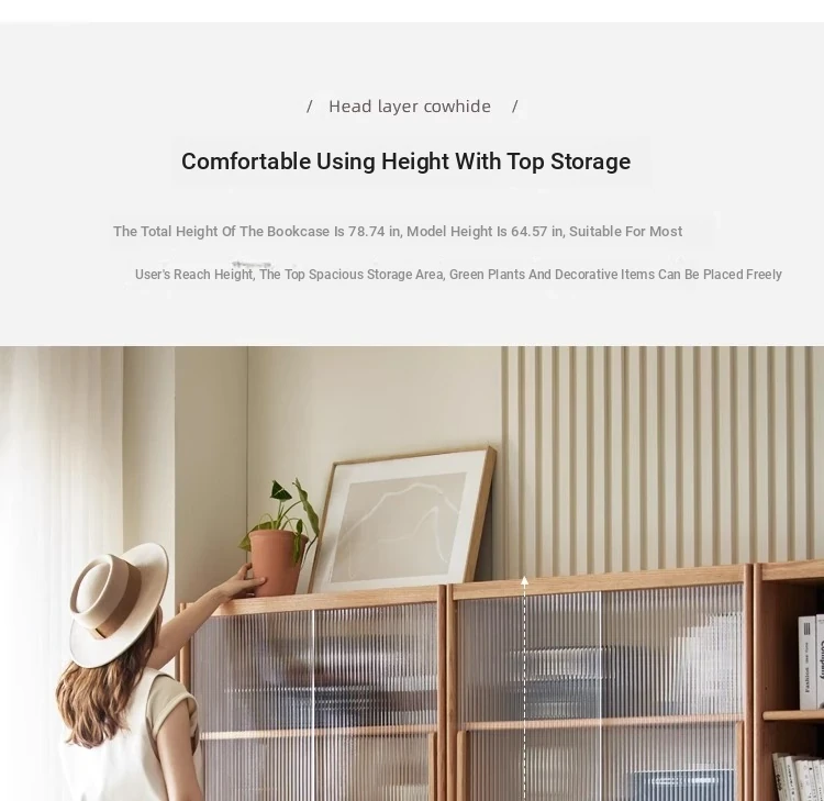 [Oak-log color] 33.46 in bookcase (including sliding door)(33.46in*11.81in*78.74in)