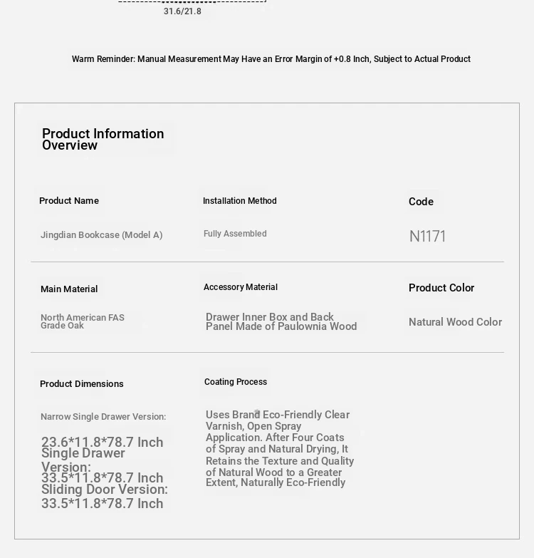 [Oak-log color] 33.46 in wide single bookcase (33.46in*11.81in*78.74in)