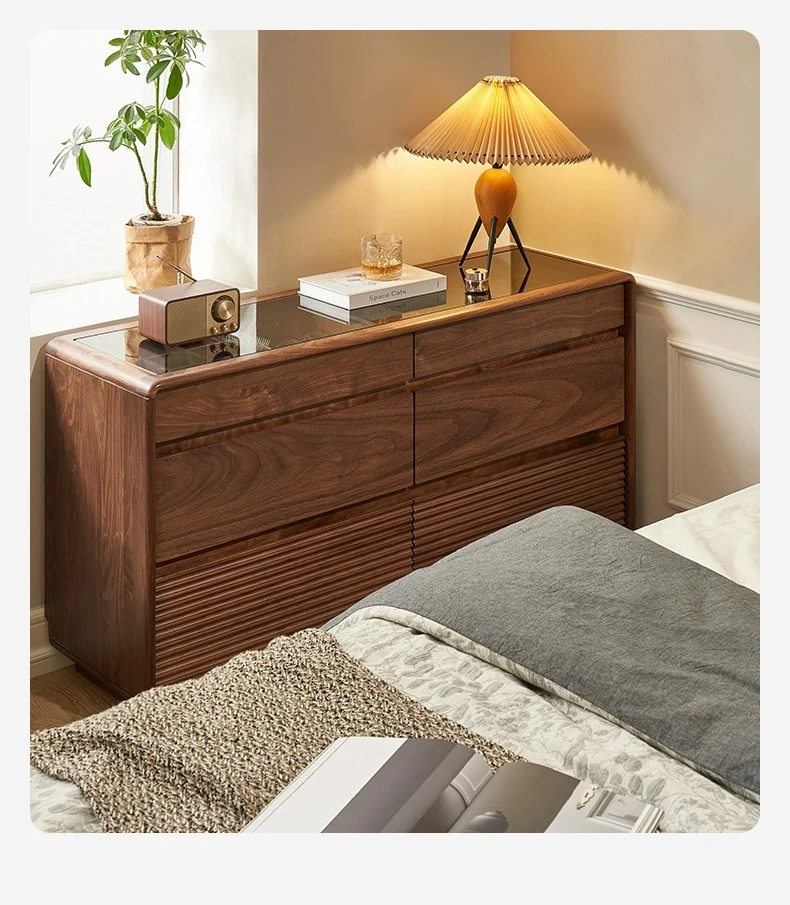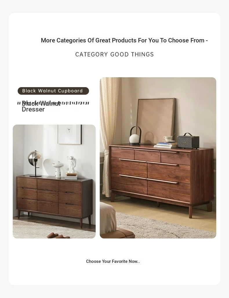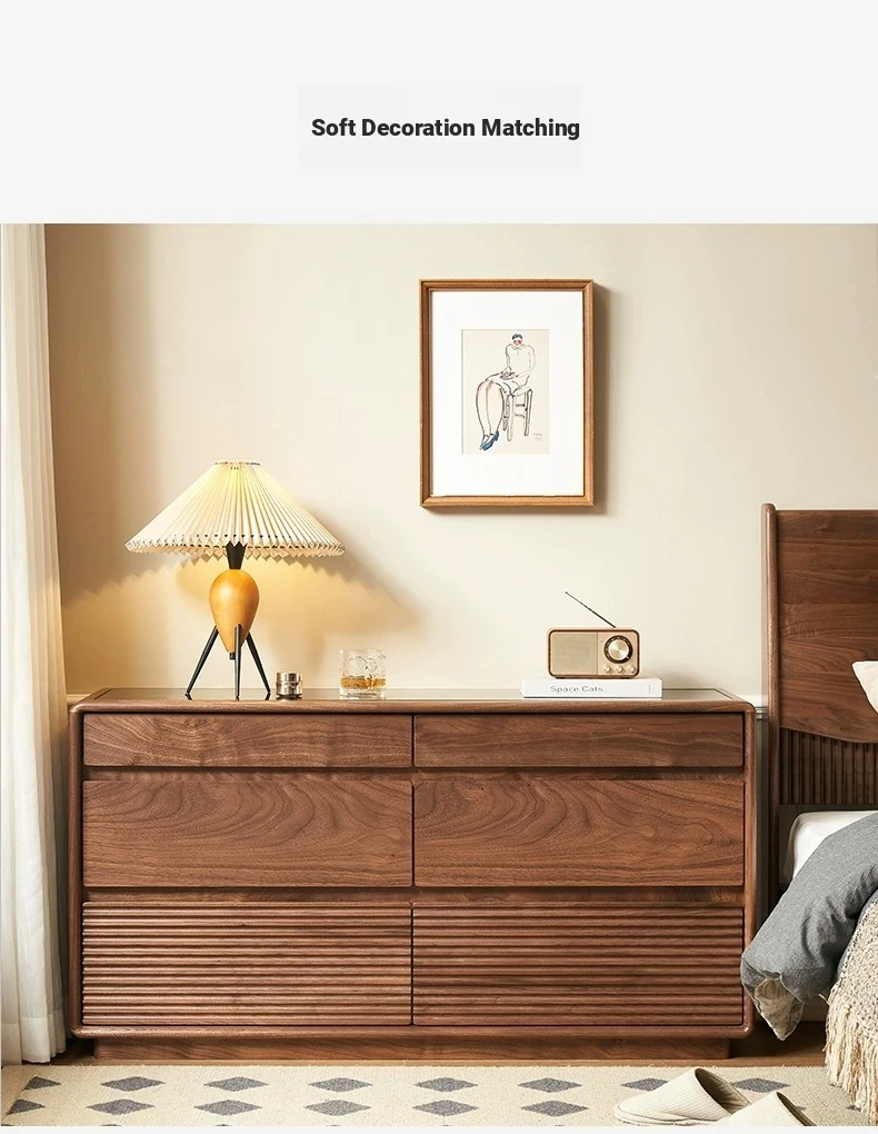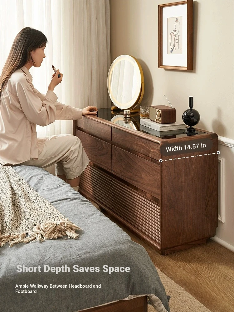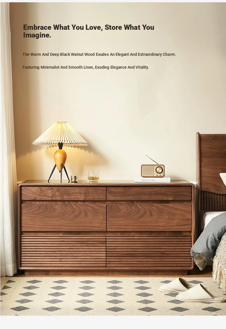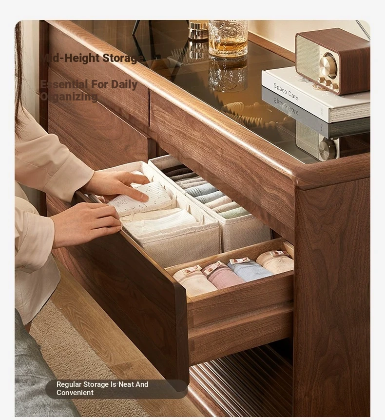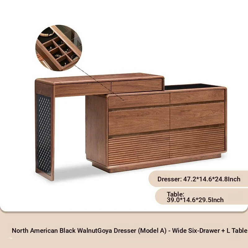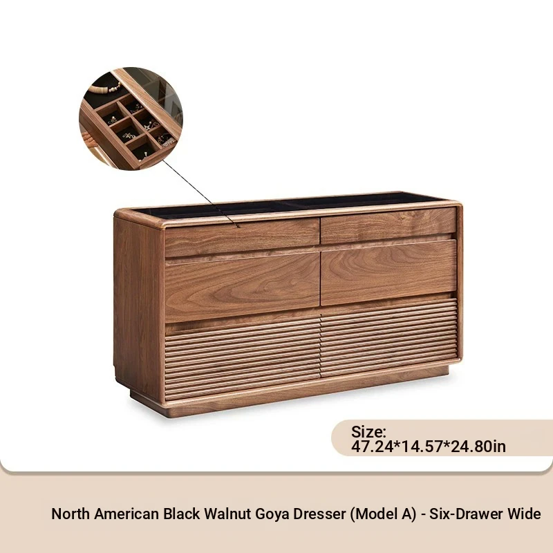 Original Element Solid Wood Six-Drawer Makeup Cabinet - Integrated Design in Black Walnut for a Luxurious Touch, Perfect for Bedroom Storage and Organization