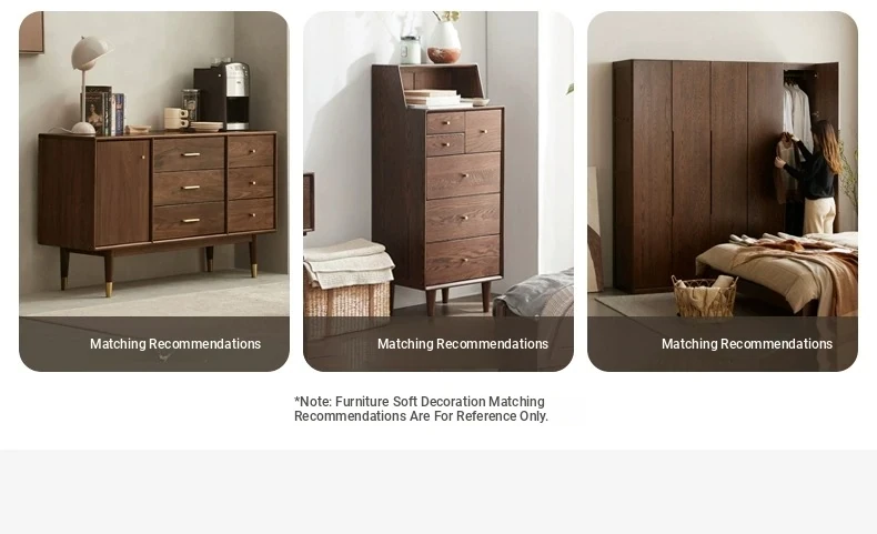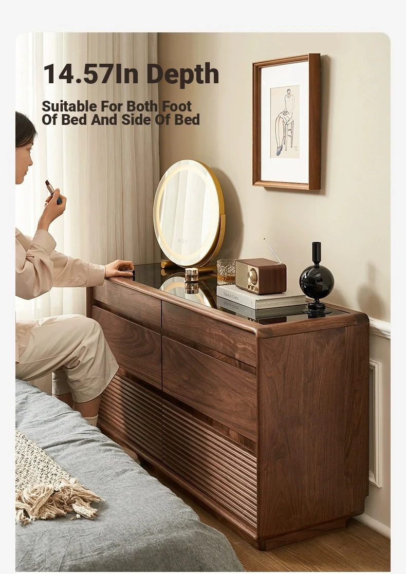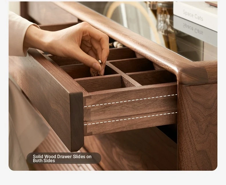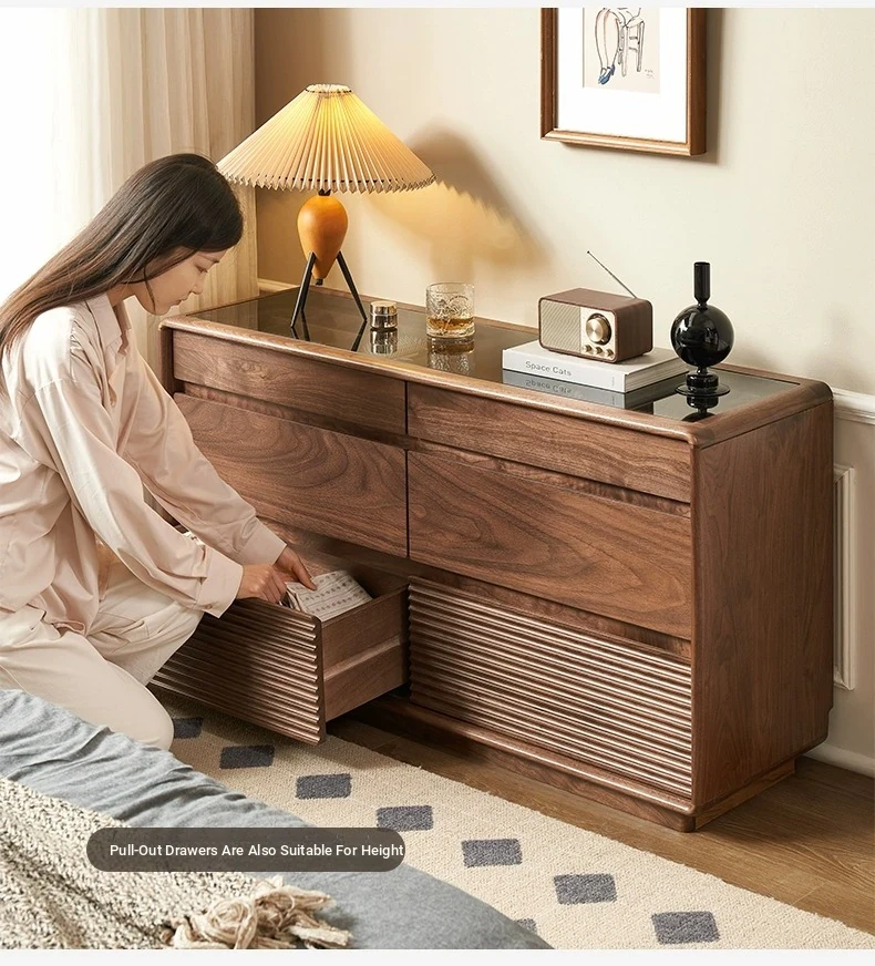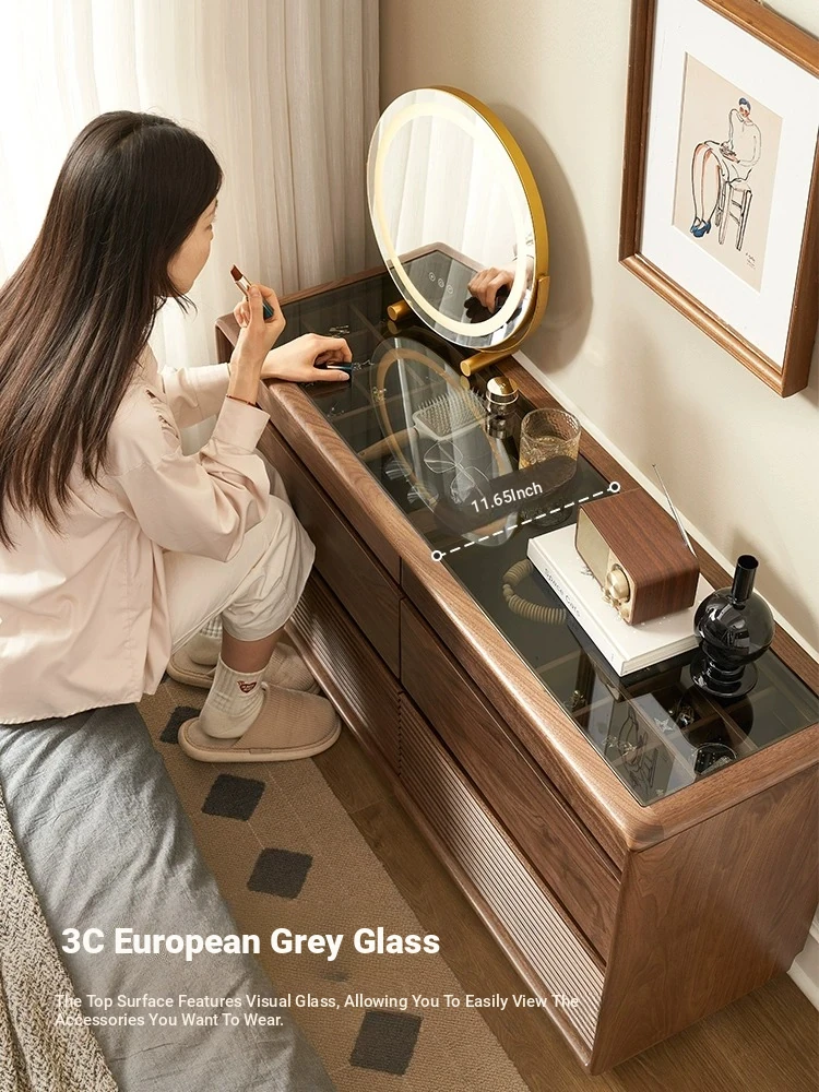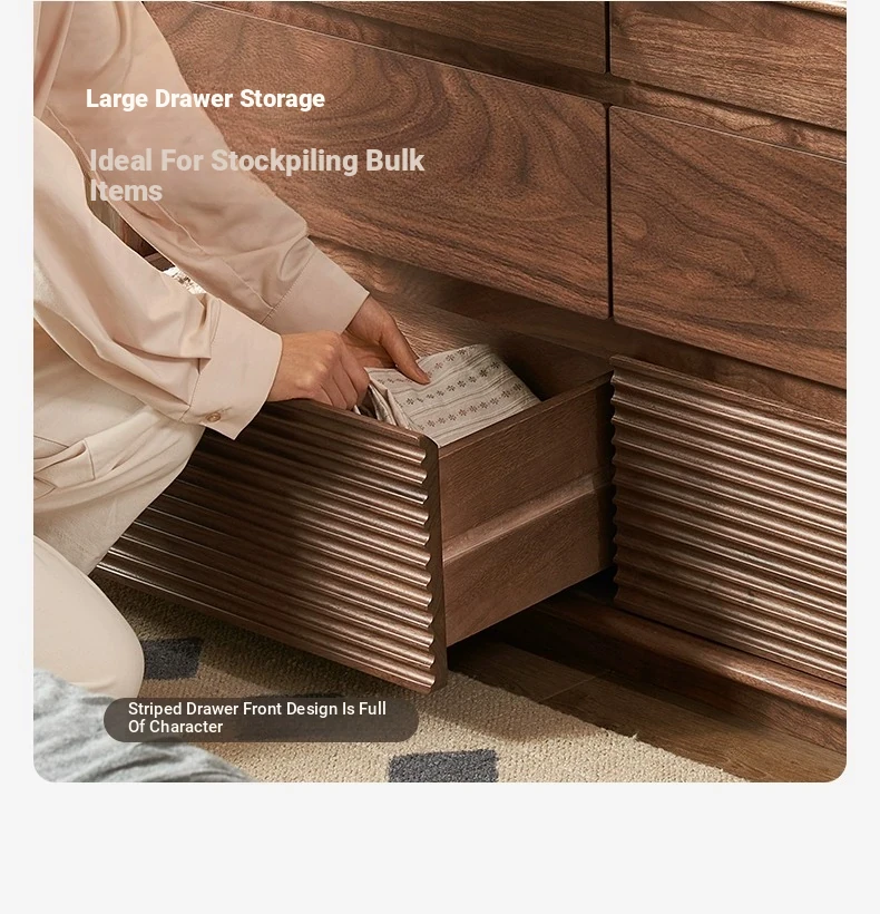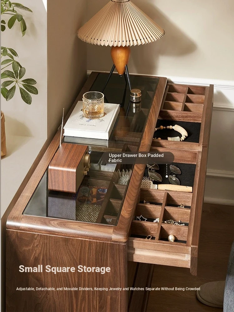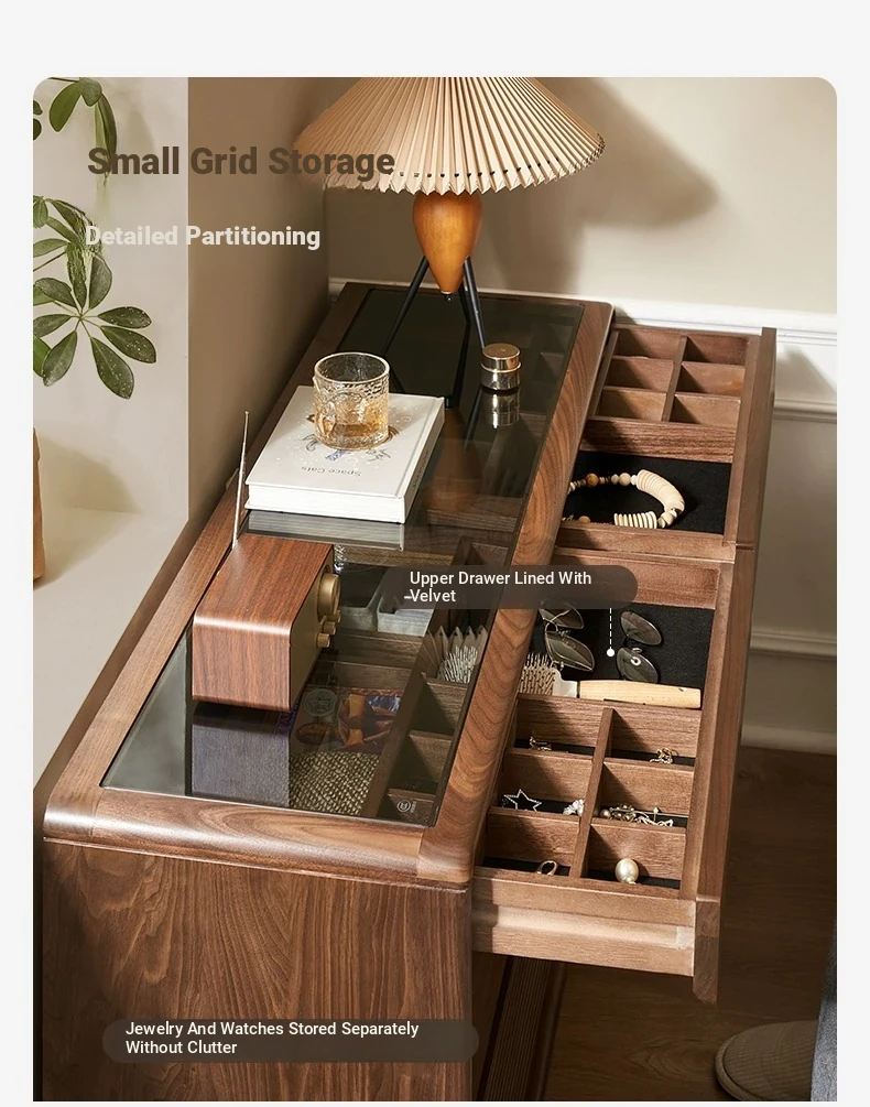 Original Element Solid Wood Six-Drawer Makeup Cabinet - Integrated Design in Black Walnut for a Luxurious Touch, Perfect for Bedroom Storage and Organization