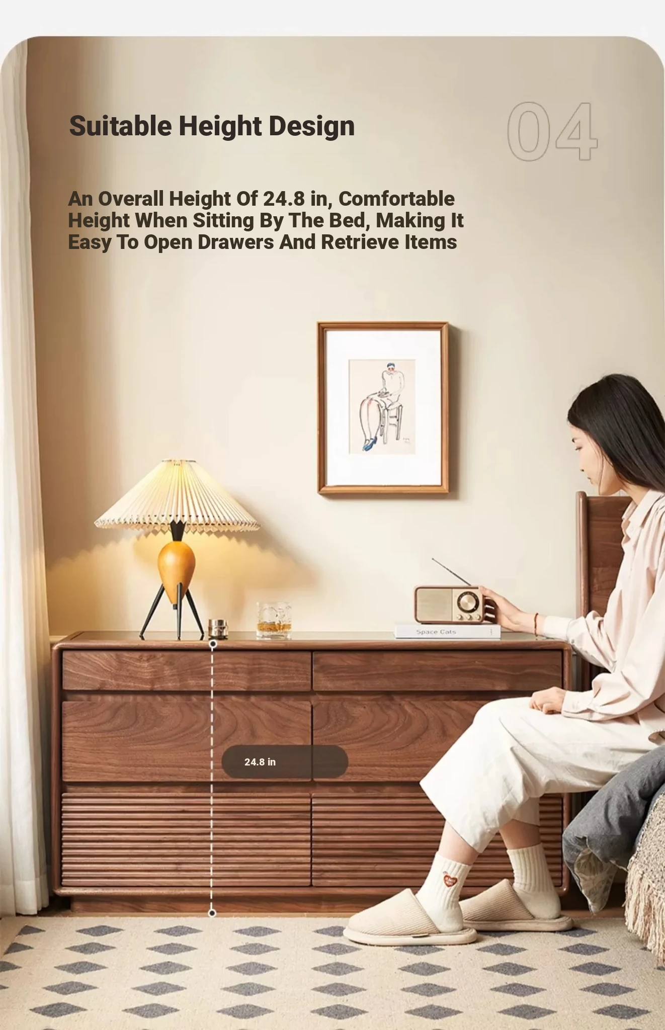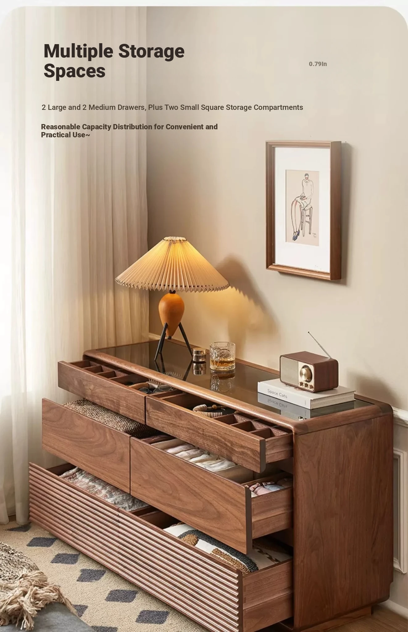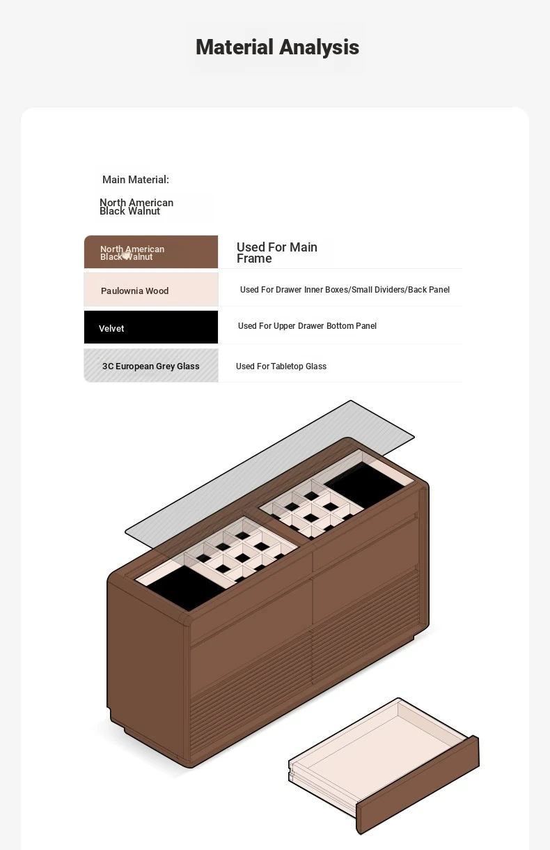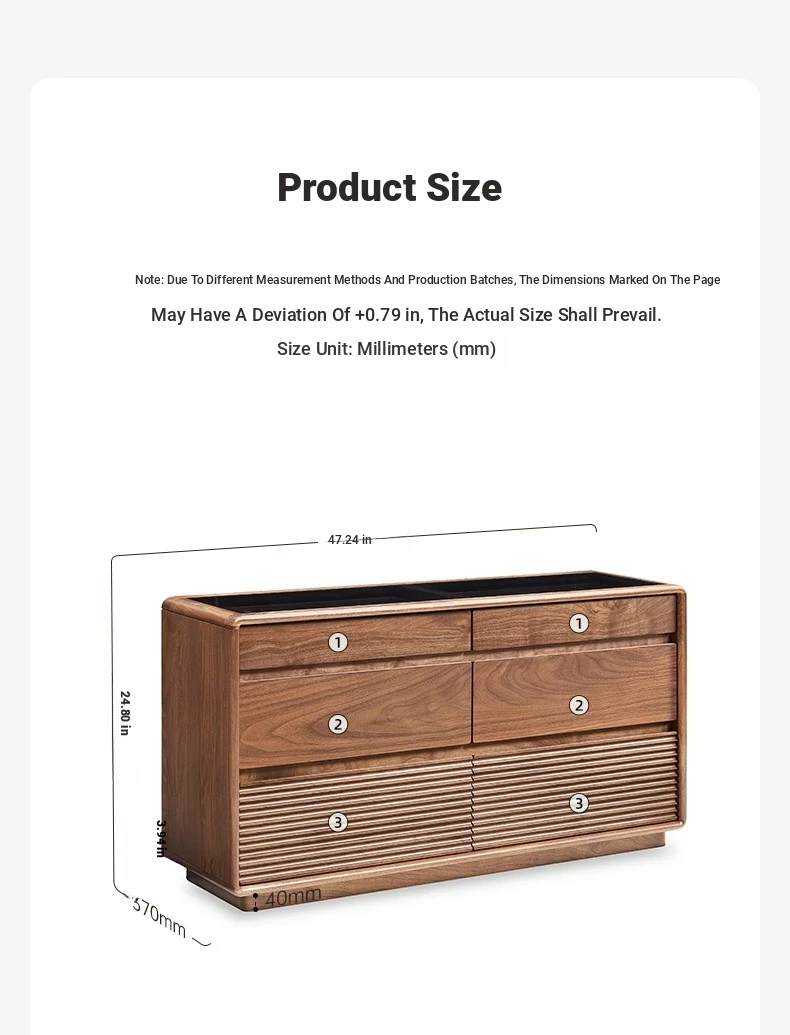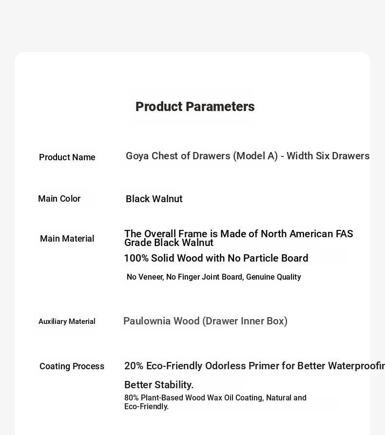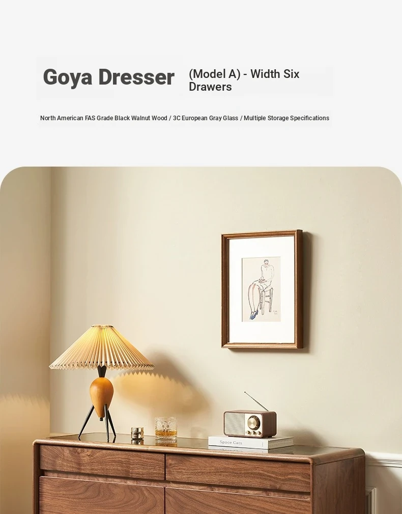Original Element Solid Wood Six-Drawer Makeup Cabinet - Integrated Design in Black Walnut for a Luxurious Touch, Perfect for Bedroom Storage and Organization
