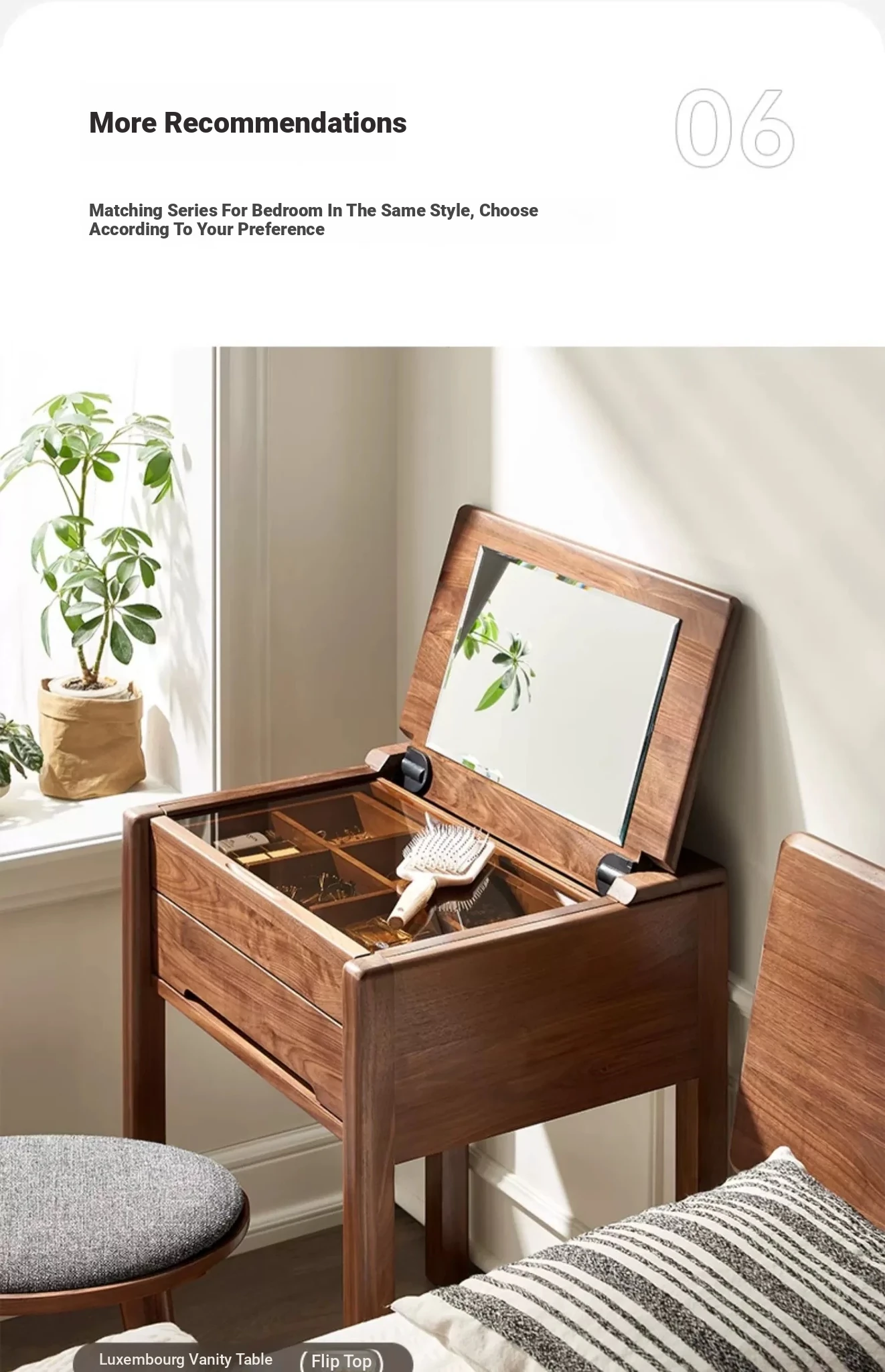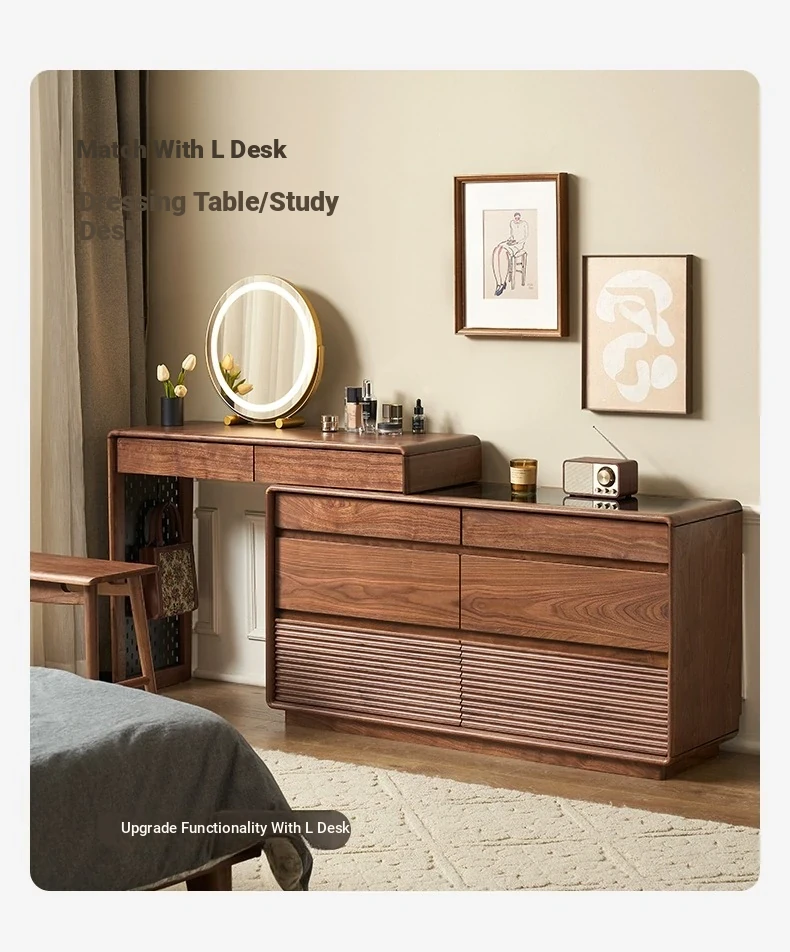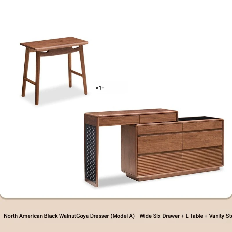[North American Black Walnut] 47.24 in Wide Six Bucket Cabinet +38.98 in L Table + Dressing Stool (M1133)