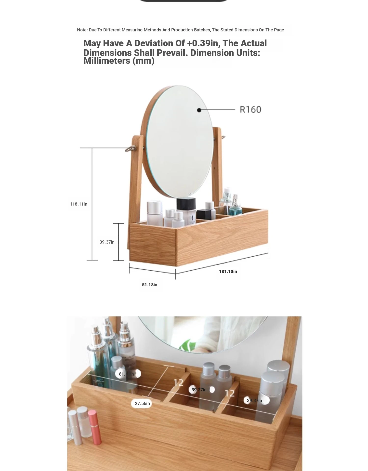 Original Element Wooden Makeup Mirror - Modern Minimalist Table Mirror for Small Spaces, Perfect for Bedroom Vanity and Makeup Routine