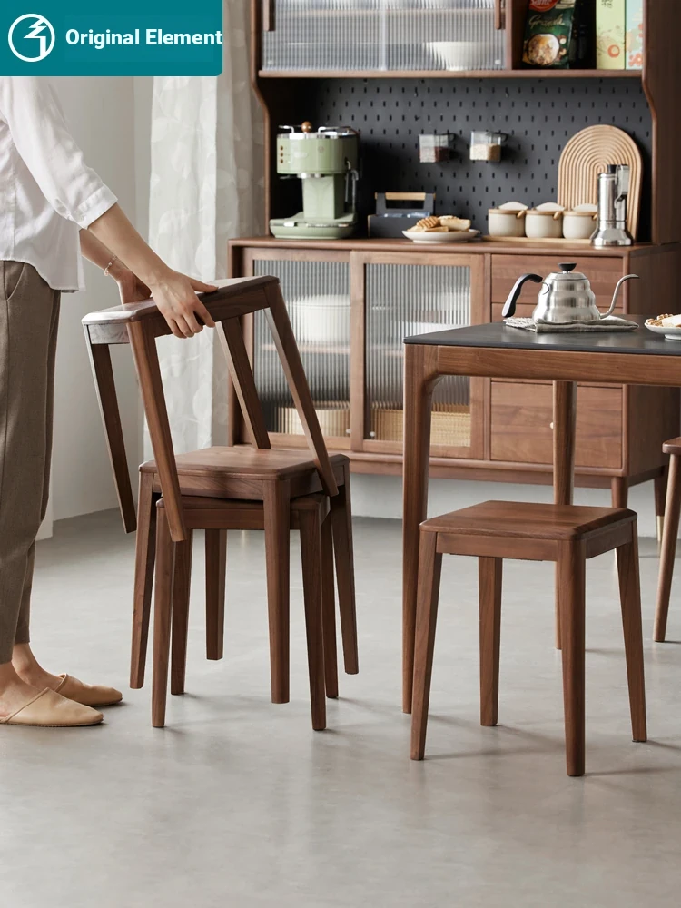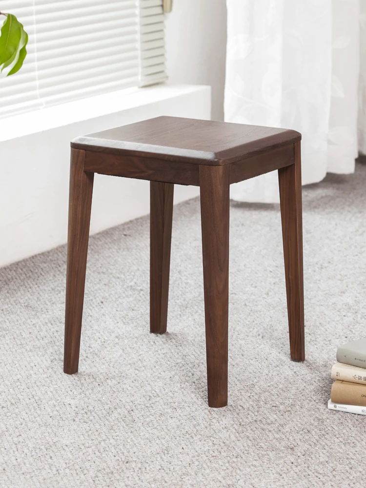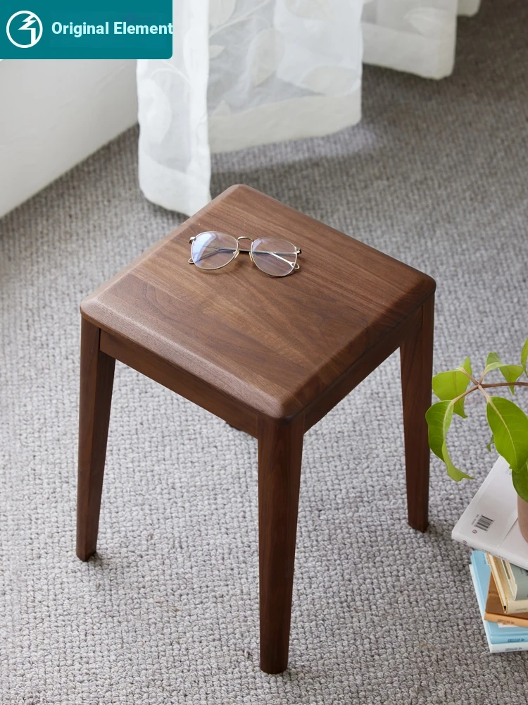 Original Elements Solid Wood Stool - Black Walnut Small Bench, Versatile Makeup and Dining Stool for Home Use, Stackable Square Design, Perfect for Dining Rooms and More!