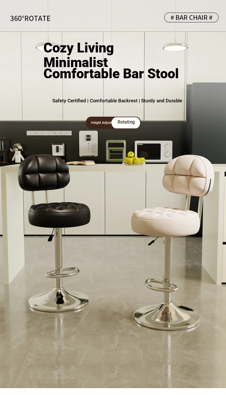 Stylish Adjustable Bar Stool - Chic High Chair for Home Use with Backrest, Rotating Design Perfect for Kitchen Islands and Bars