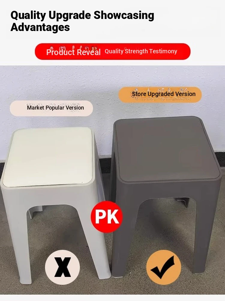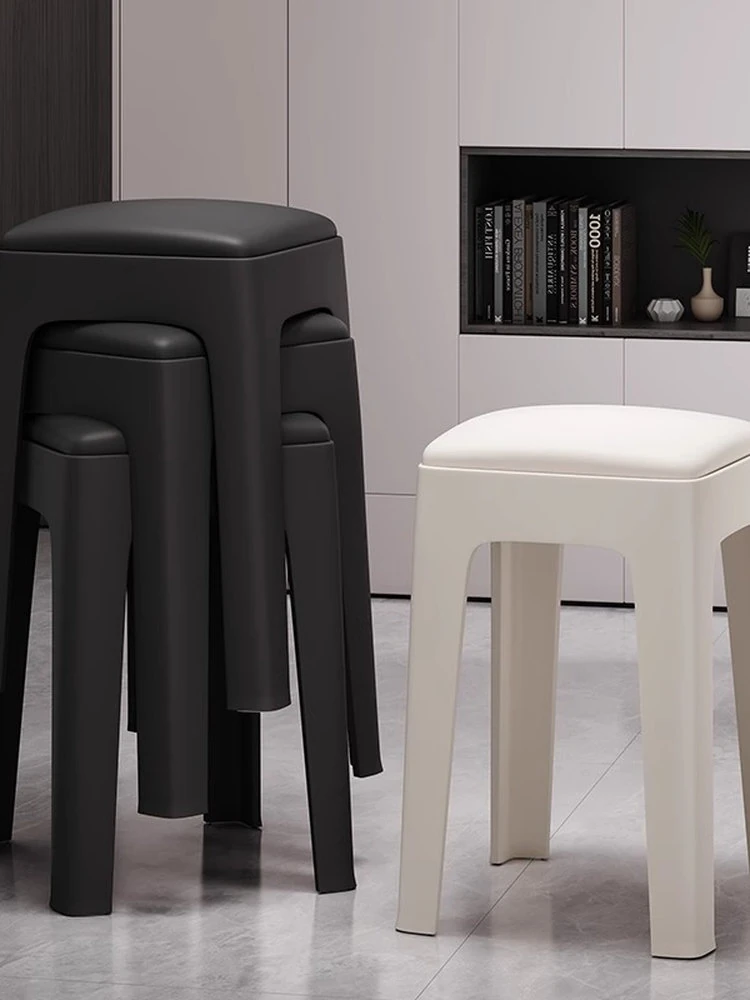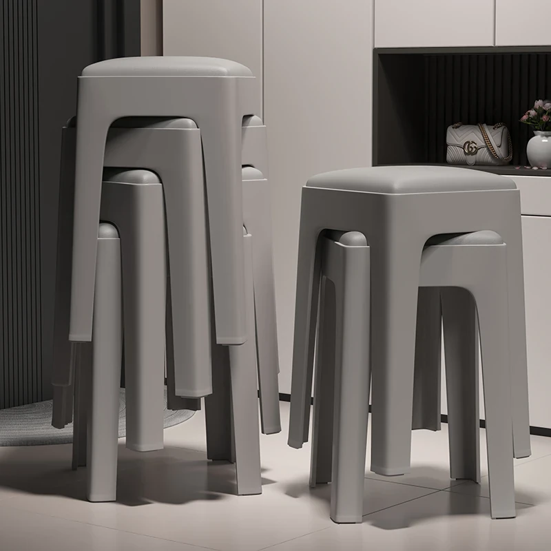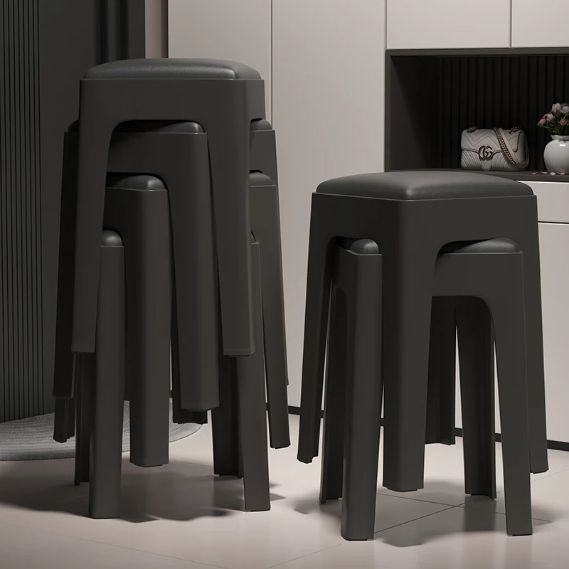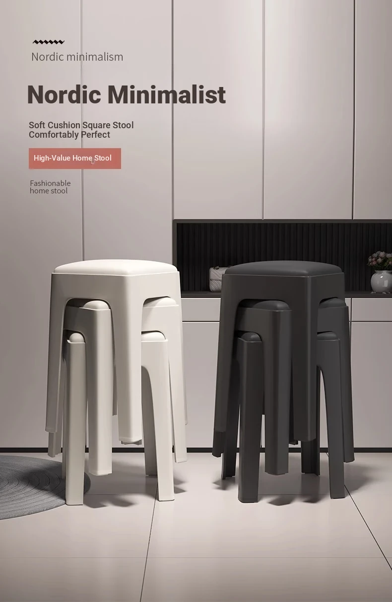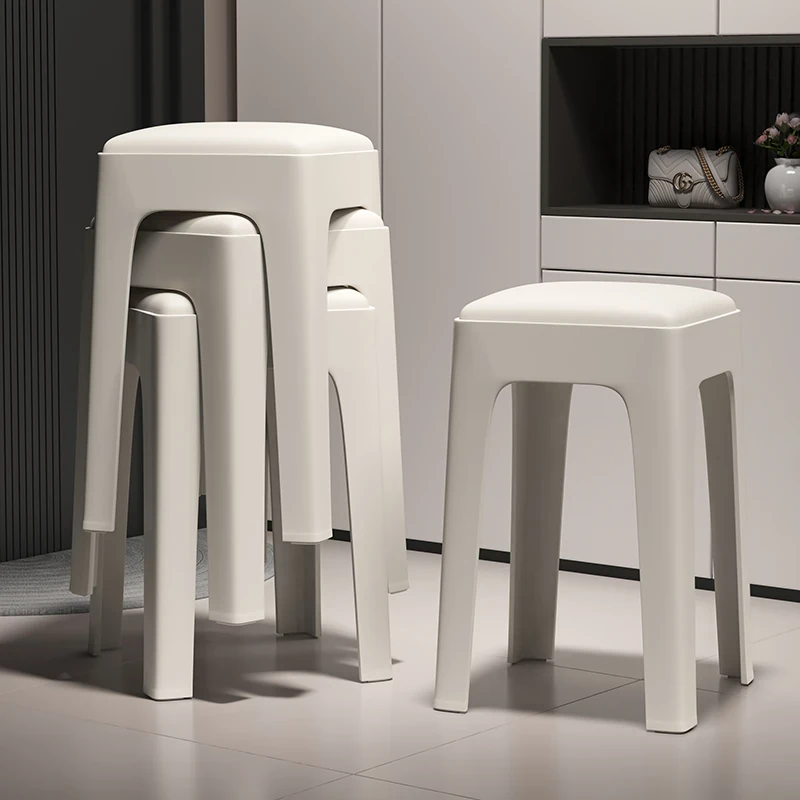 Stylish and Elegant Plastic Stool for Home Use – Versatile Dining Chair, Space-Saving Square Bench, Perfect for Living Room or Study, Stackable and Easy to Store.