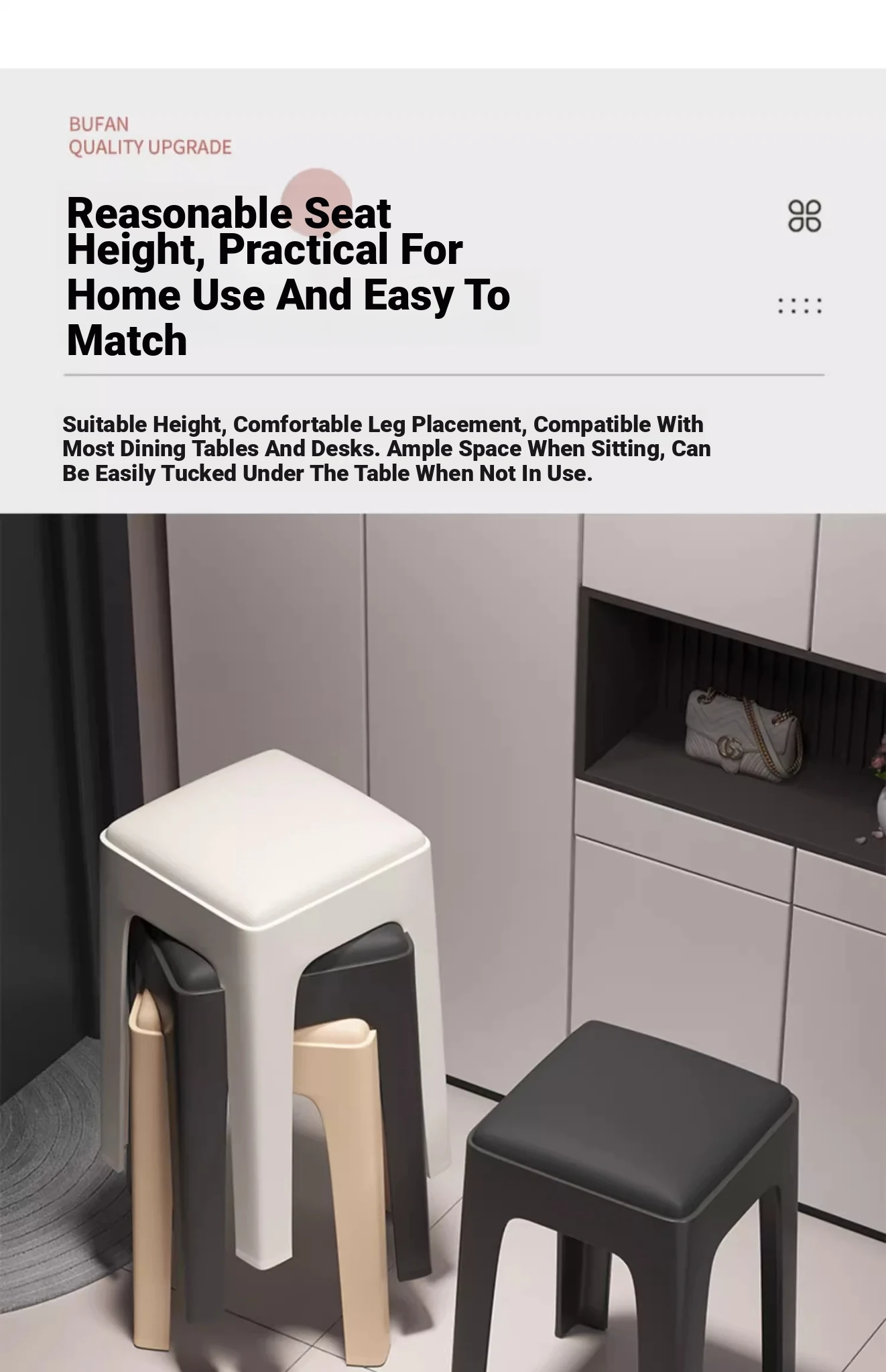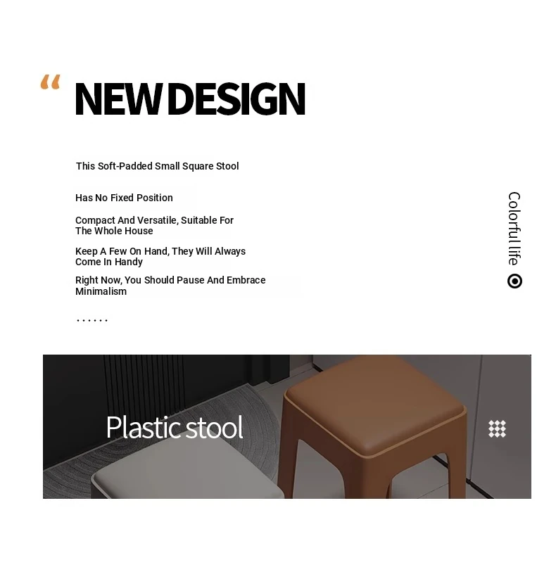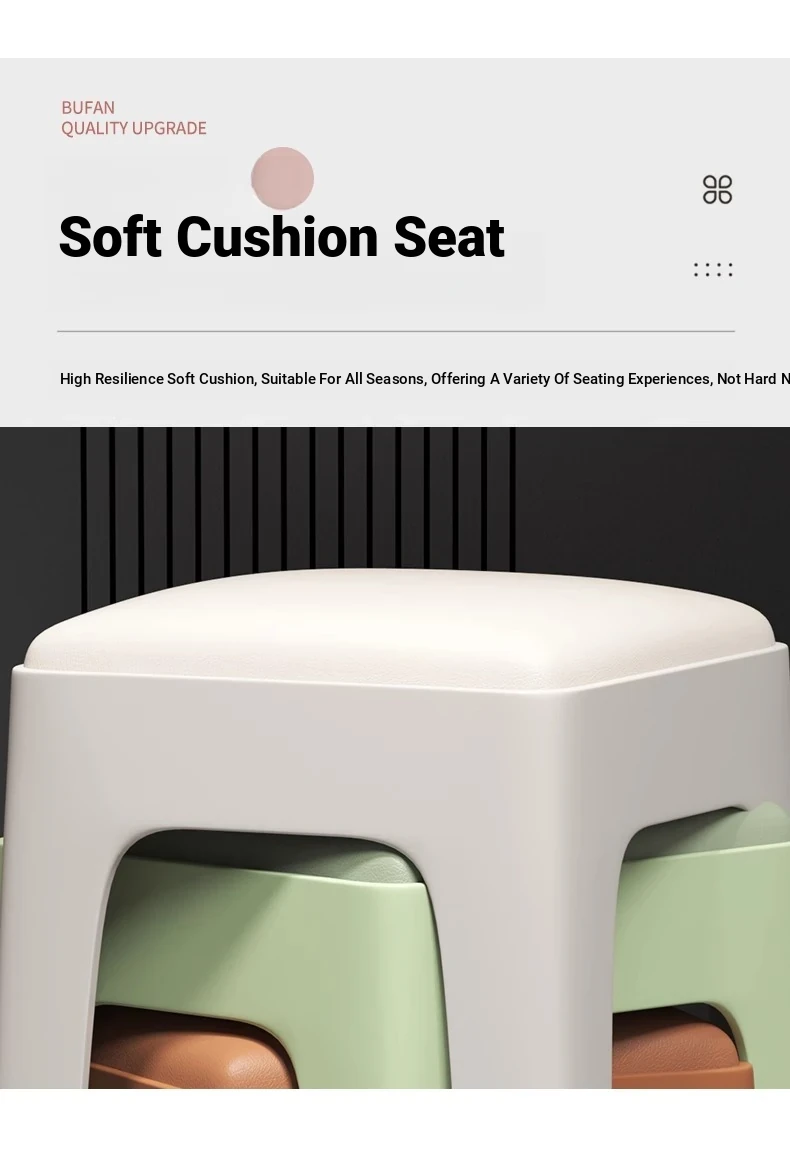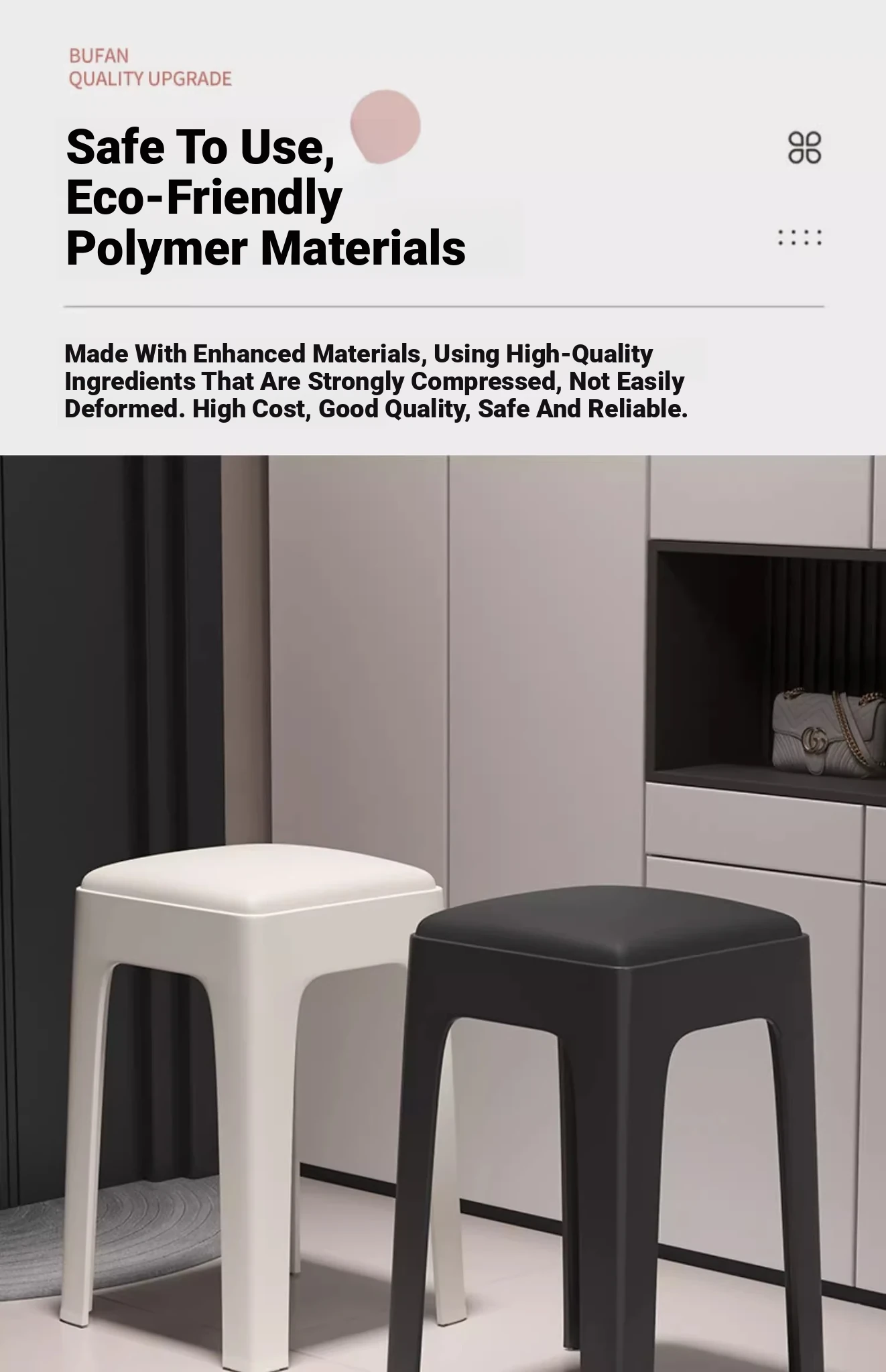 Stylish and Elegant Plastic Stool for Home Use – Versatile Dining Chair, Space-Saving Square Bench, Perfect for Living Room or Study, Stackable and Easy to Store.