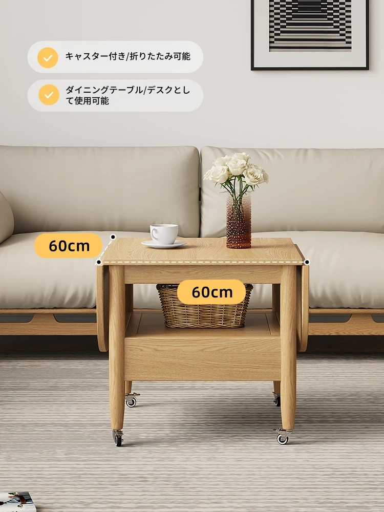 輸出品質【円形カート】⭐60*60天然木色 環境に優しい板材