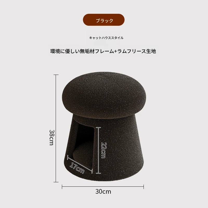 【ブラックの猫ベッド兼靴ベンチ】高密度ラムフリース+無垢材フレーム