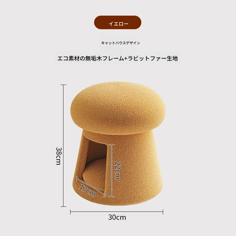 【イエローの猫ベッド兼靴ベンチ】高密度ラムフリース+無垢材フレーム