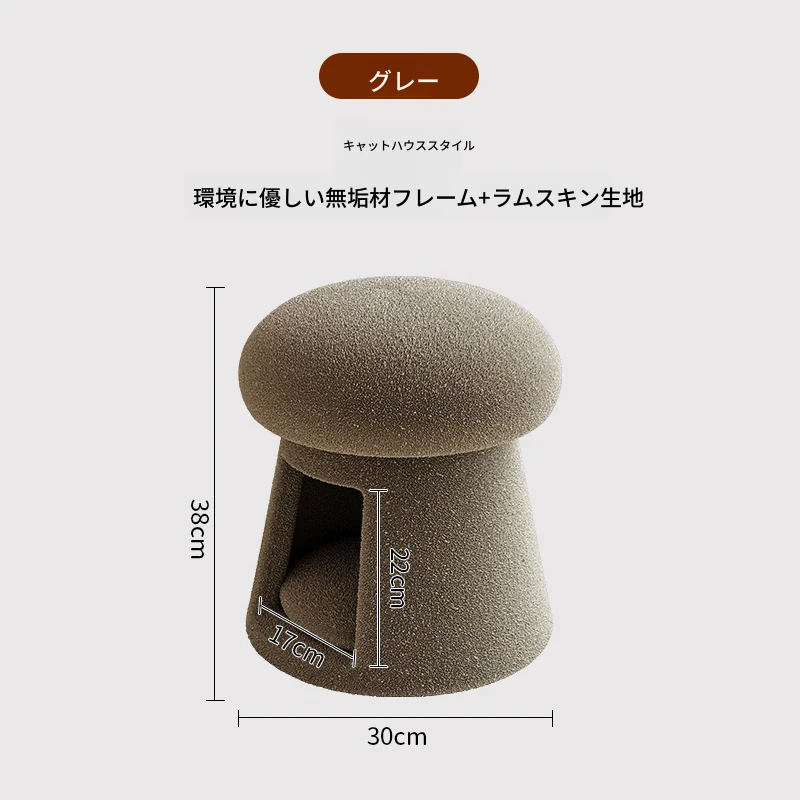 【グレーの猫ベッド兼靴ベンチ】高密度ラムフリース+無垢材フレーム